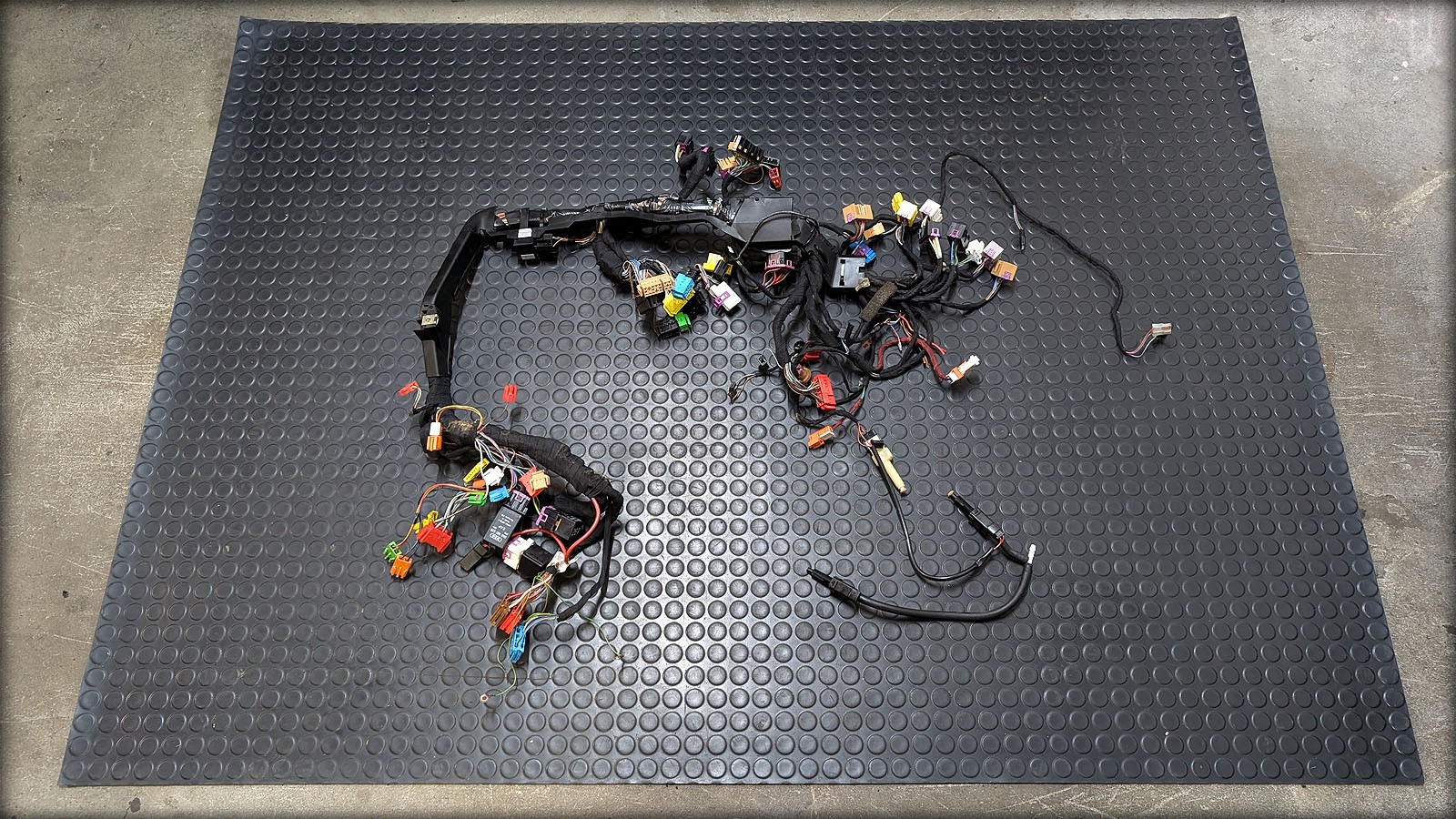 Angebot Audi-Porsche RS2 Kabelbaum Armaturenbrett Modell 1995 in Vollausstattung mit Anschschlüsse für Klima, Sitzheizung, Tempomat, Bordcomputer, Aussentemperaturanzeige, Zusatzinstrumente, Doppelairbag etc. - wie üblich am Stecker Radio verbastelt.