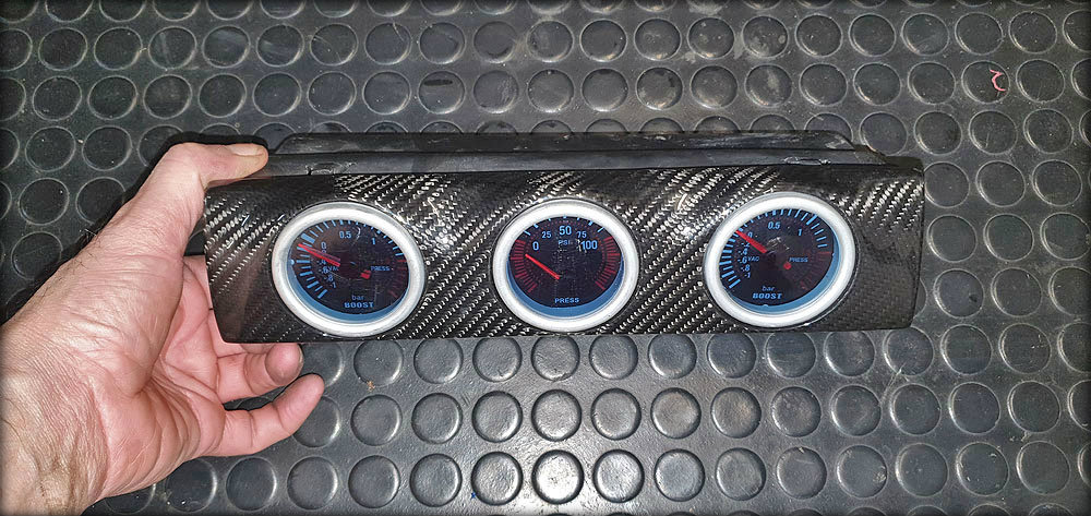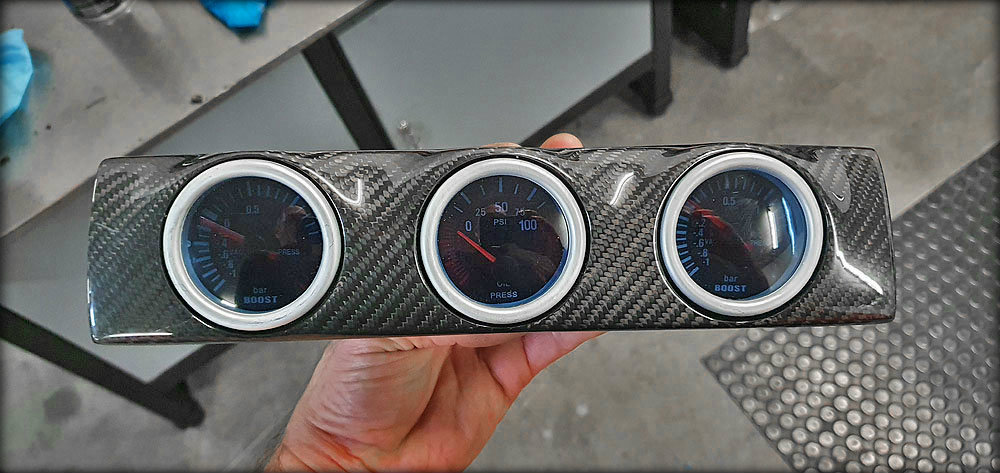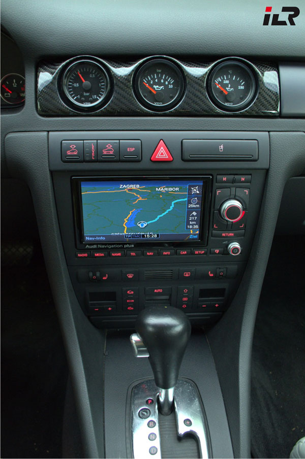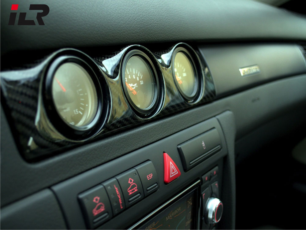 Audi RS6 V8 Zusatzinstrumente von ILR in Echtcarbon. Bilder 3 und 4 zeigen Montage in einem Allroad C5 mit anderen Instrumenten.