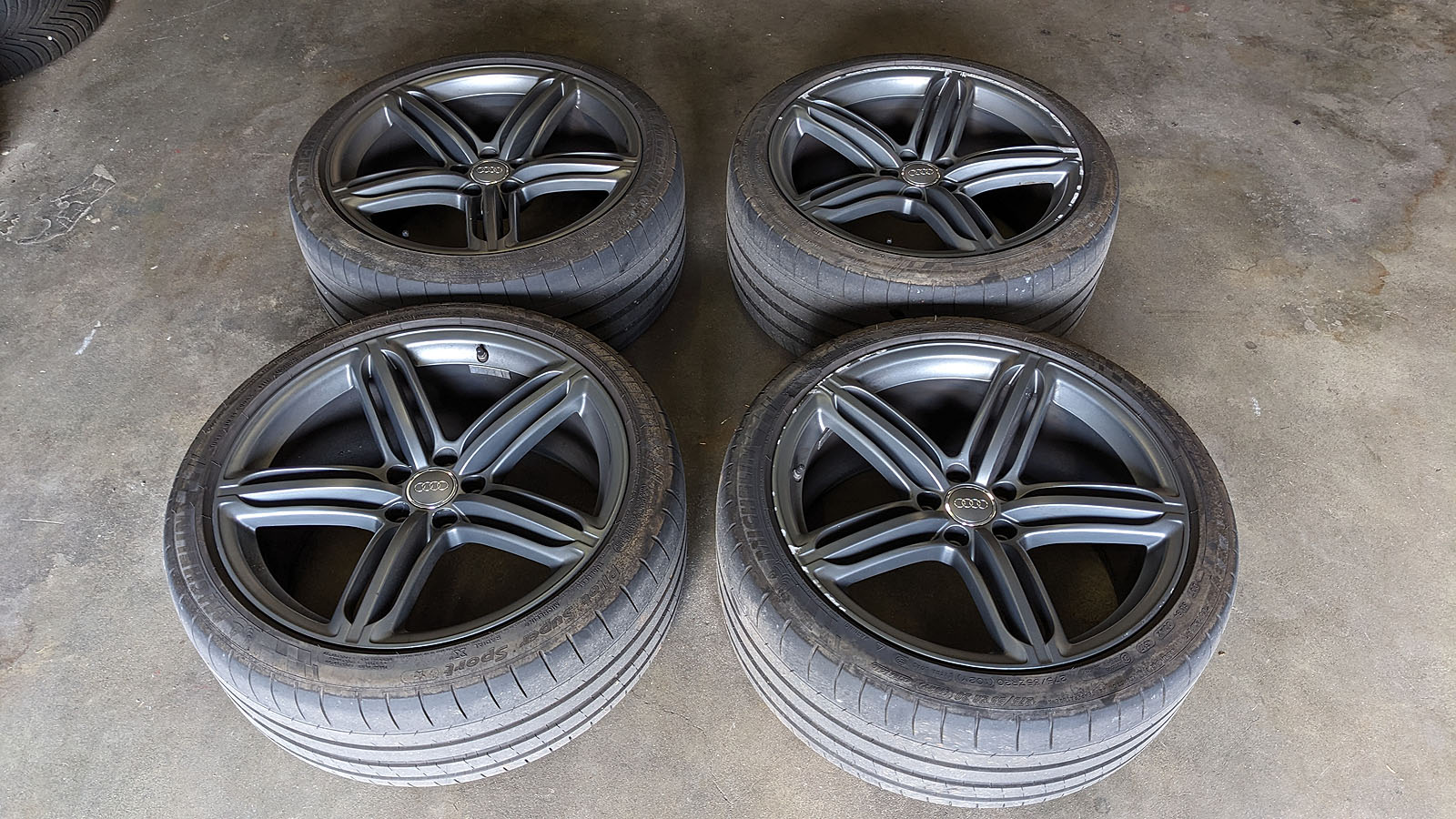 Audi Räder, von einem Audi S8 V10 demontiert. Felgen haben diverese Bordsteinkontakte, keine sehr tiefe Verletzungen, zum optisch aufbereiten.