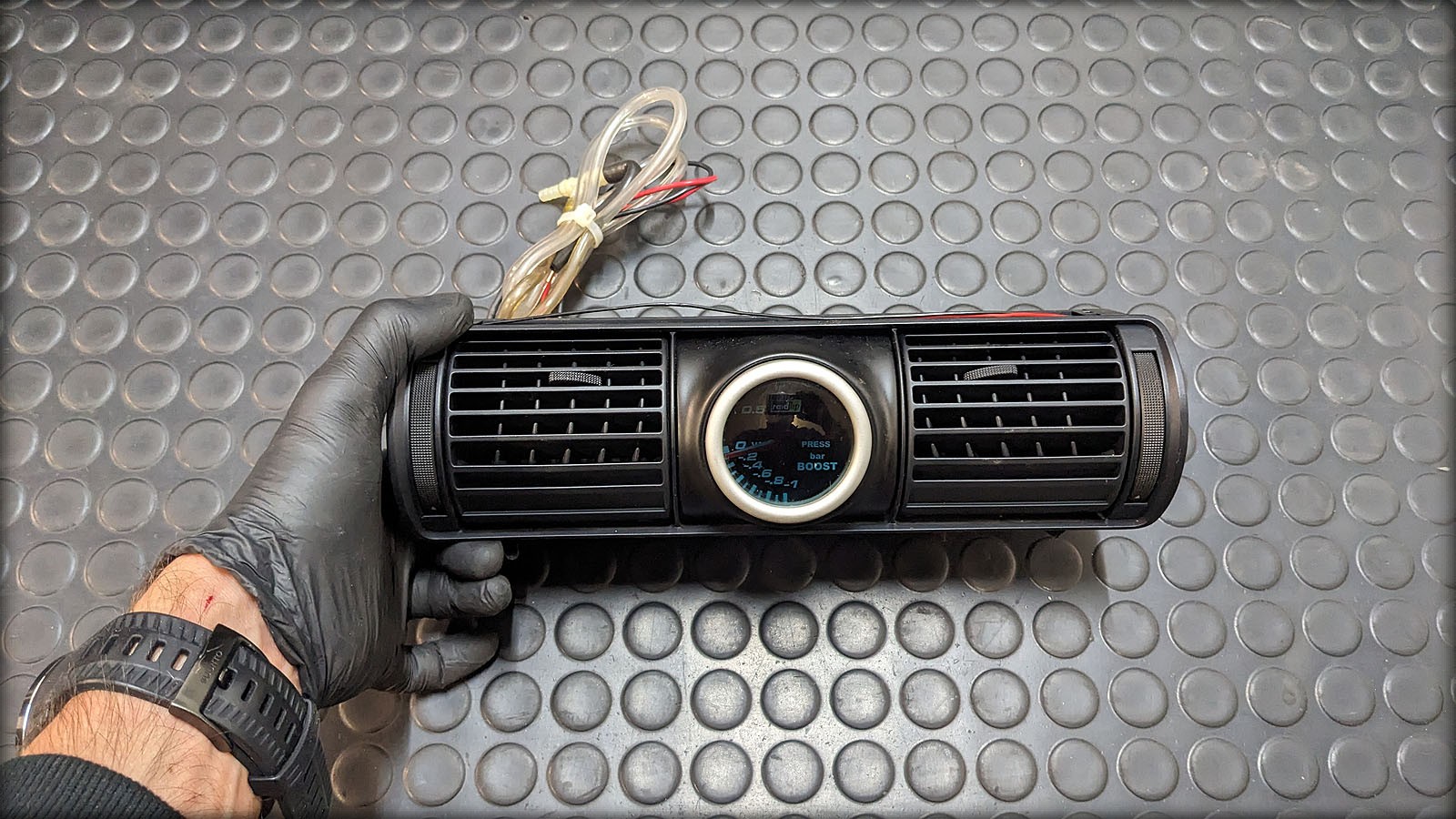 Audi S4 Biturbo Ladedruckanzeige mit Halter (Zubehör), komplett als Set mit Unterdruckschlauch und T-Stück.