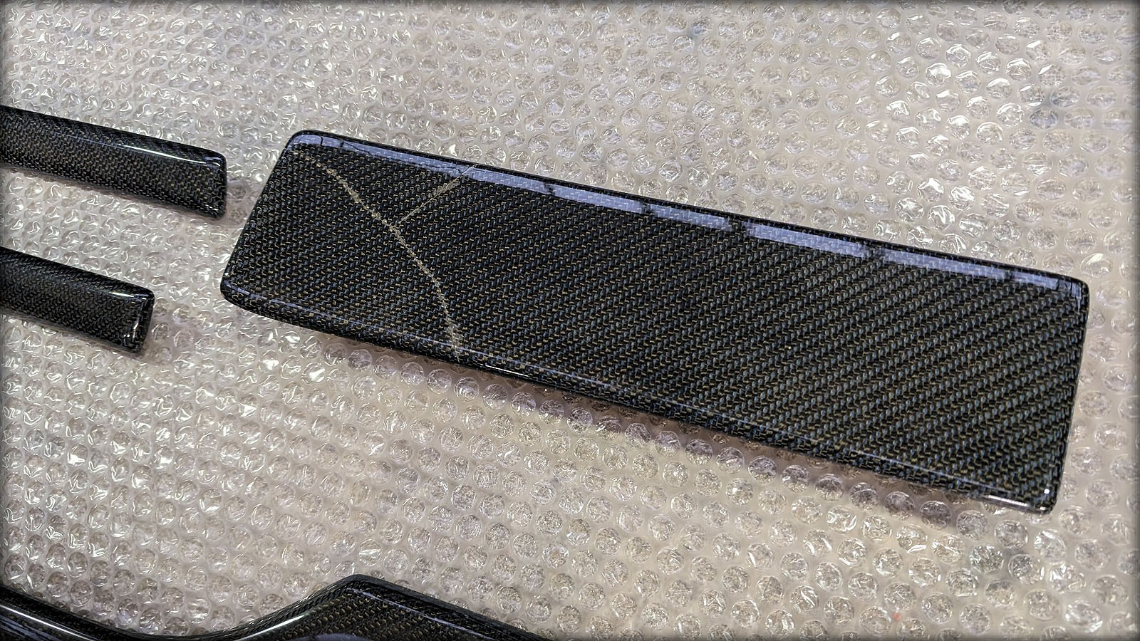 Audi RS2 Carbonleisten für Modelle in der Ausführung ohne Beifahreraibag. Blende Armaturenbrett hat diverse Risse im Klarlack.