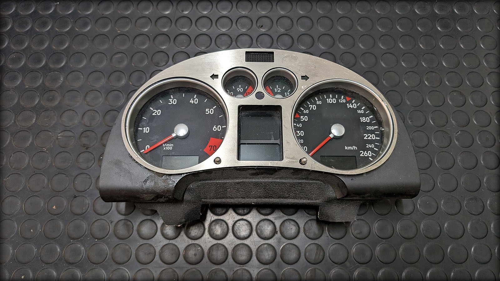 Angebot Audi TT 8N 225 PS Tacho Kombiinstrument 225 PS mit Chromstahlblende. Originalinstrument Verkleidung vorne verklebt.
