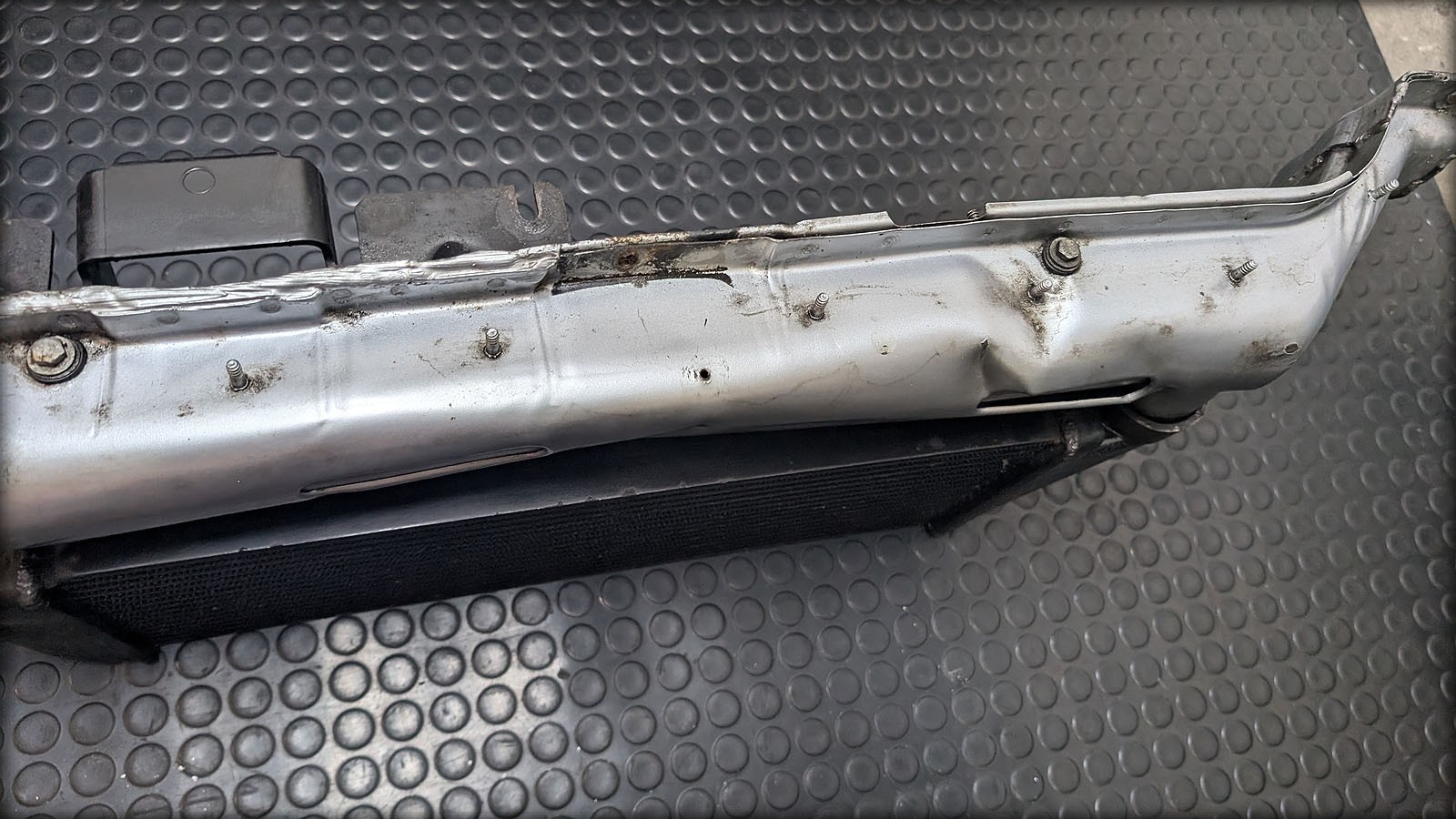 Angebot Audi-Porsche RS2 Ladeluftkühler mit Quertraverse. Technisch i.O., Traverse hat Delle (technisch / optisch ohne Einschränkungen) und Kühler einen kleinen Abdruck des Kurbelwellenrades, auch absolut problemlos und dicht.