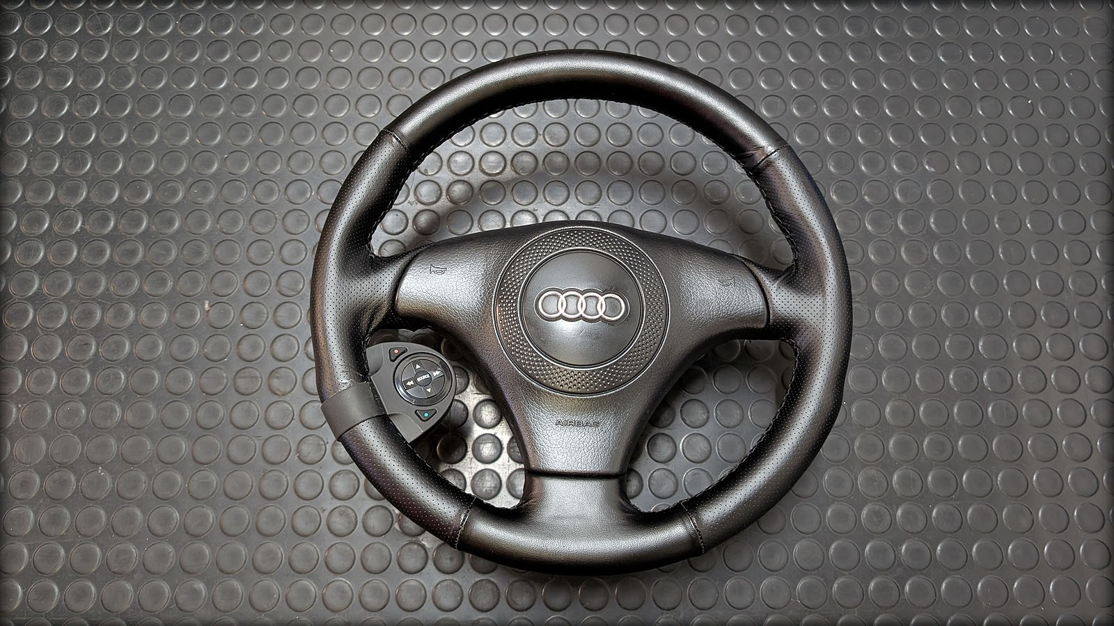 Angebot Audi S4 B5 Lenkrad komplett, Lenkradkranz unprofessionell neu bezogen.