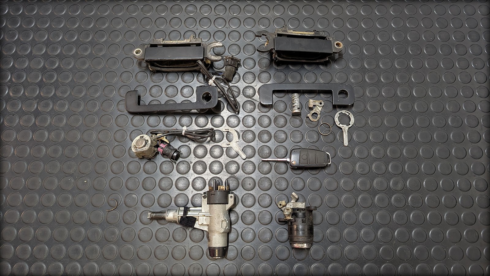 Angebot Audi 200 20V Schlosssatz bestehend aus 1 Schlüssel (Klappschlüssel), Lenkradschloss/Zündschloss, Schloss Fahrertüre (beheizbar), Schloss Beifahrertüre, Schloss Heckklappe