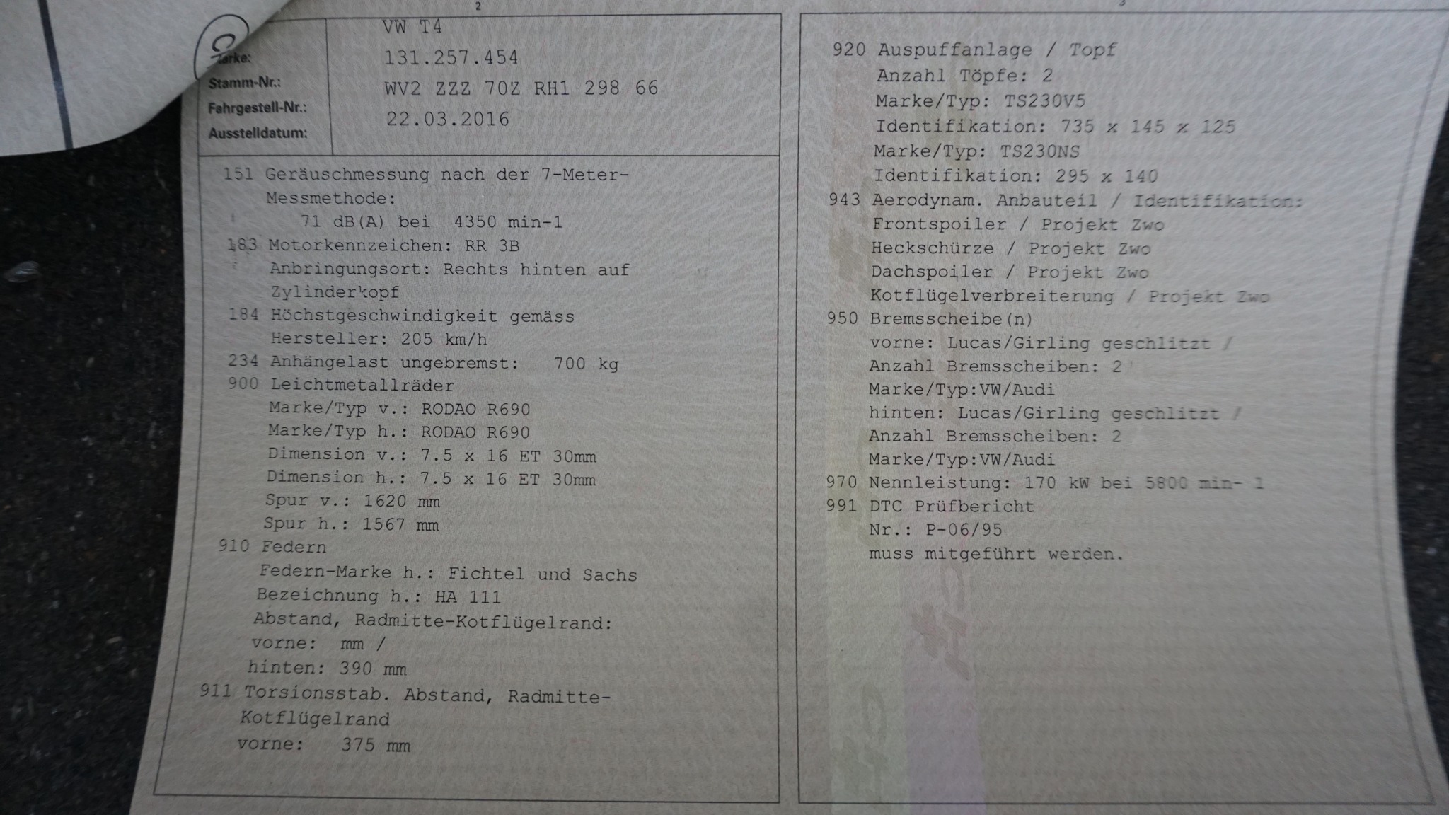 Zum Verkauf steht ein VW T4 – mit amtlich eingetragenem Audi S2 20V Turbo Fünfzylinder.