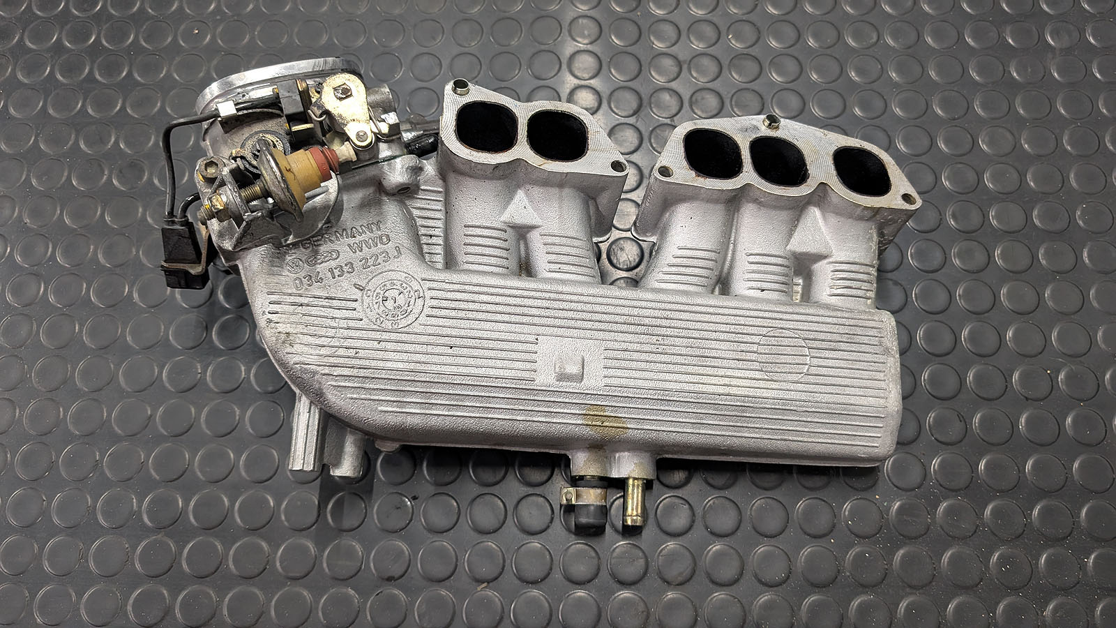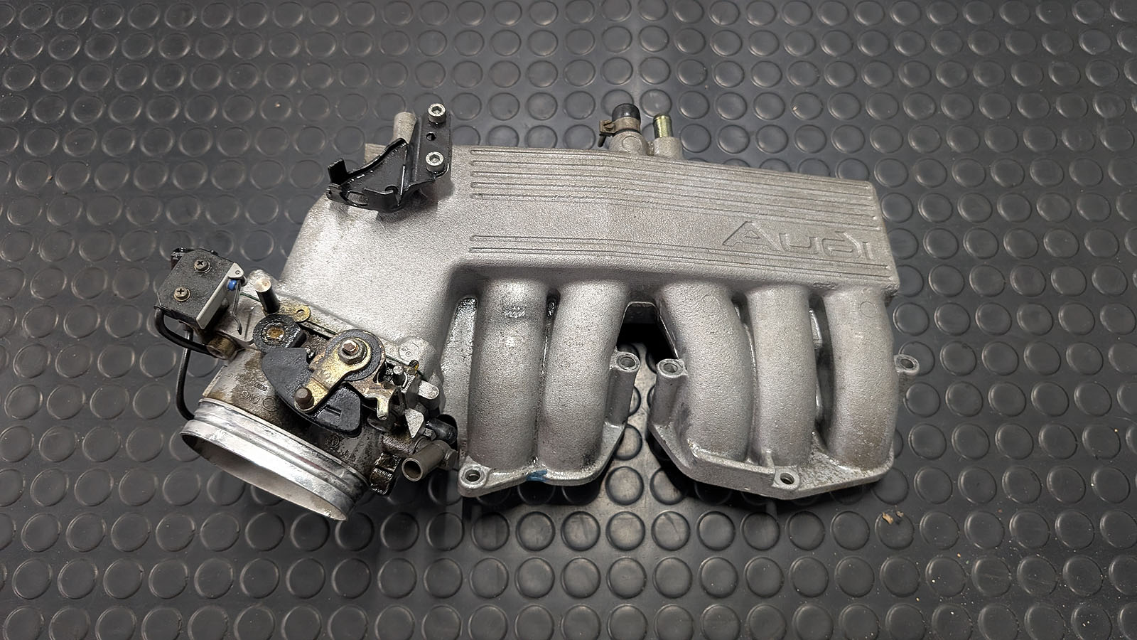 Audi 80 B4 2.3l Saugrohr oberer Teil mit Drosselklappe komplett - Plastikteil zum Einhängen Gasseilzug wie üblich ganz vorne abgebrochen.