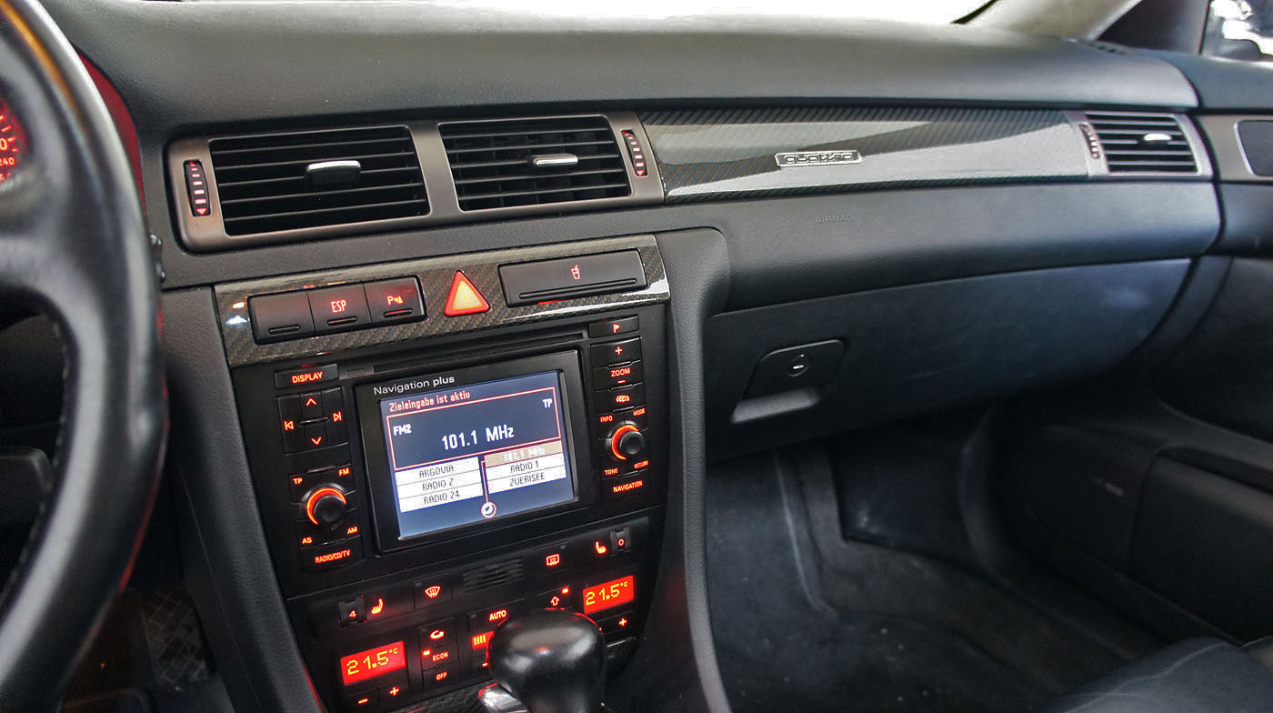 Audi S6 C5 V8 Automat, Recaro Lederausstattung schwarz/schwarz mit Sitzheizung Vordersitze, Mittelarmlehne, Gepäcknetz, Carbon Decorleisten, Dachhimmel Alcantara hell mit Schiebedach, Sonnenrollos hintere Seitenscheiben und Heckscheibe, Innenspiegel automatisch abblendbar, Navi Plus mit Bose und CD Wechsler, Tempomat, Solar Schiebedach, S-Line Aussenspiegel mit normalen Spiegeläsern, Parksensoren vorne und hinten, Tagfahrlicht, 18 Zöller Alufelgen, Tacho Pixelfehler, Automat macht Geräusche (Rückwärtsgang schleift)