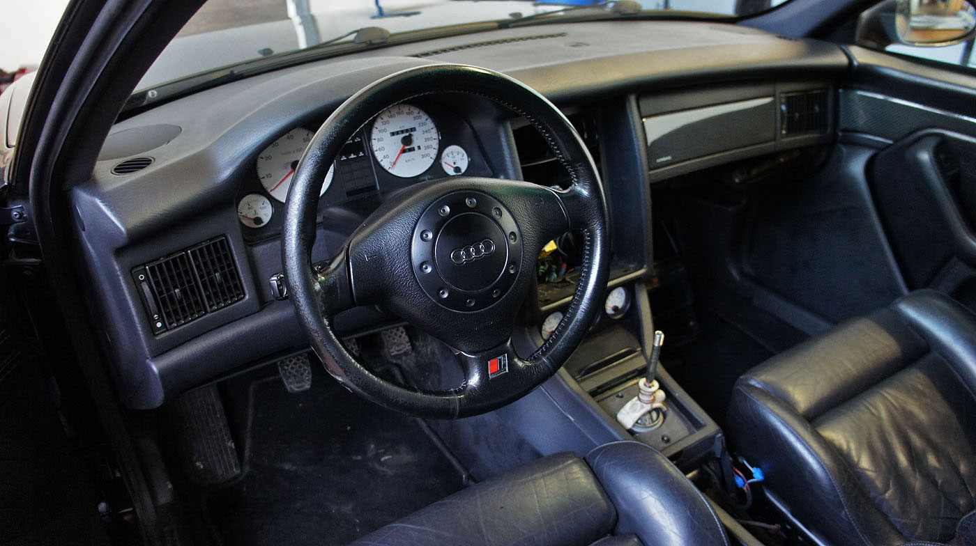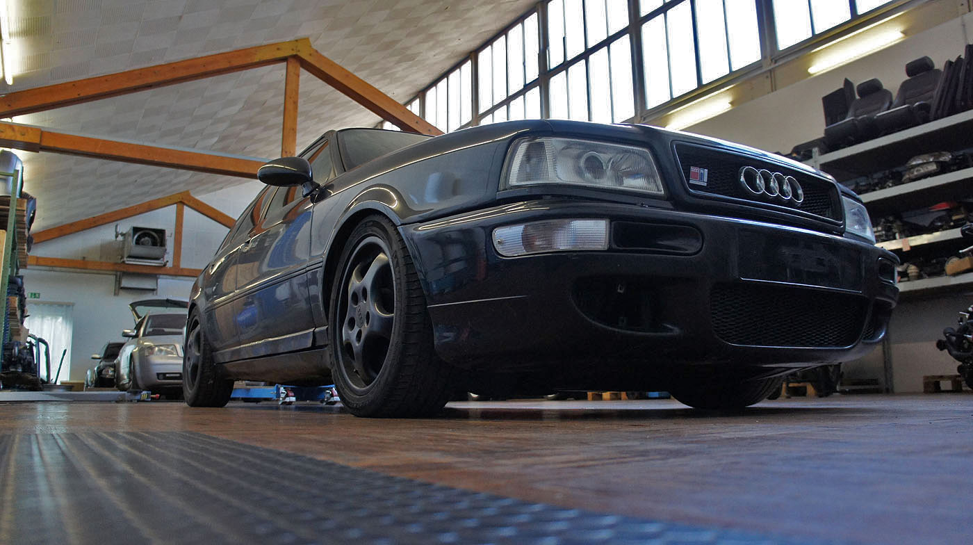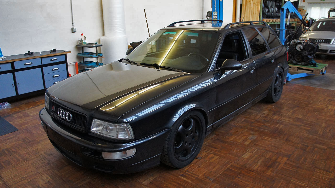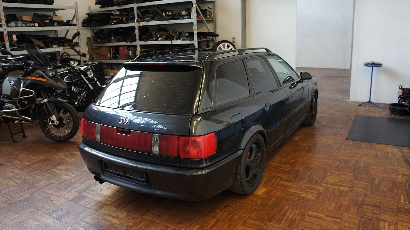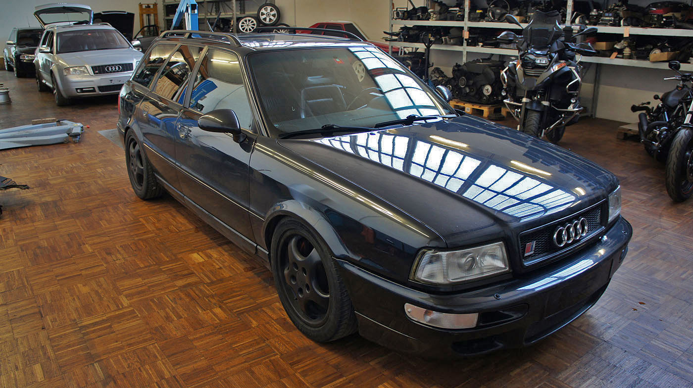 Audi RS2 Modell 1995 mit grossem Bremskraftverstärker, Carbon Decorleisten mit Beifahrerairbag, 3 Speichen Lenkrad Airbag, Recaro Lederausstattung schwarz, Tempomat, Motorsportlader KKK 26/27/29 mit 8er Abgasseite, H&R Gewindefahrwerk, Bremsluftschlitze anstelle Nebelscheinwerfer, Heckspoiler -> Fahrzeug hat hohe Laufleistung und wird zerlegt. Die Karosse wird für einen kompletten Neuaufbau verwendet.