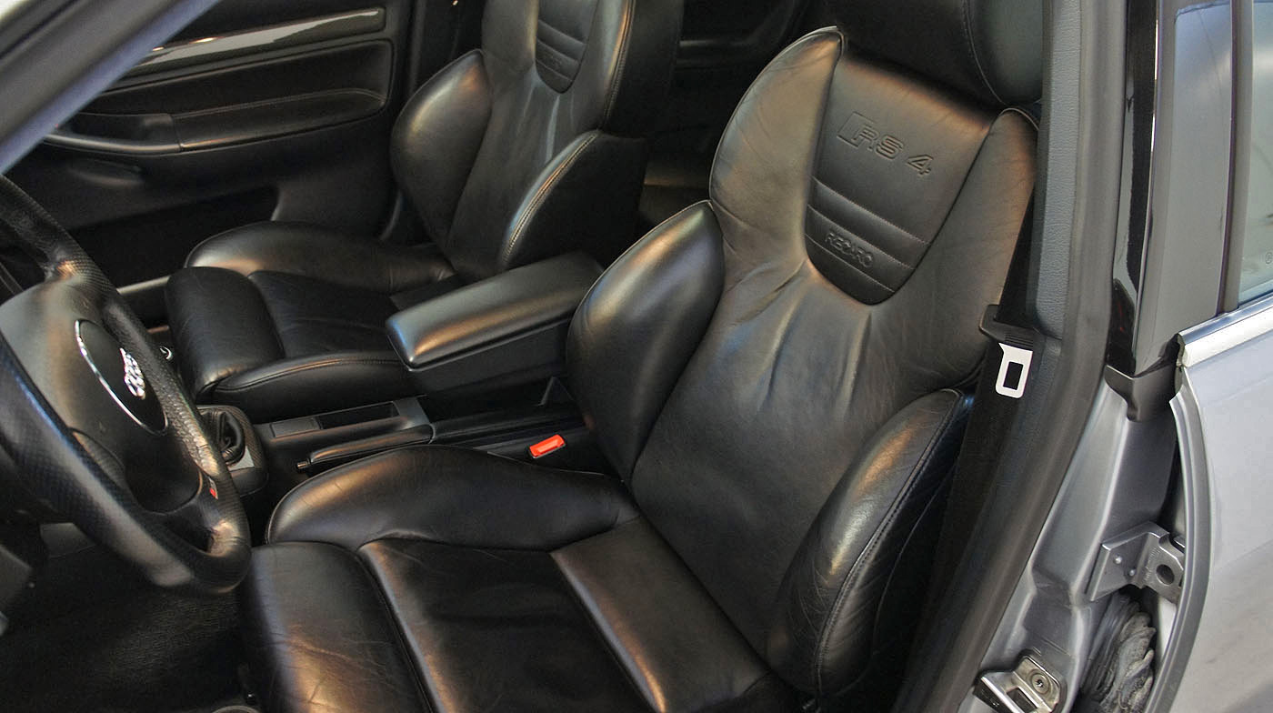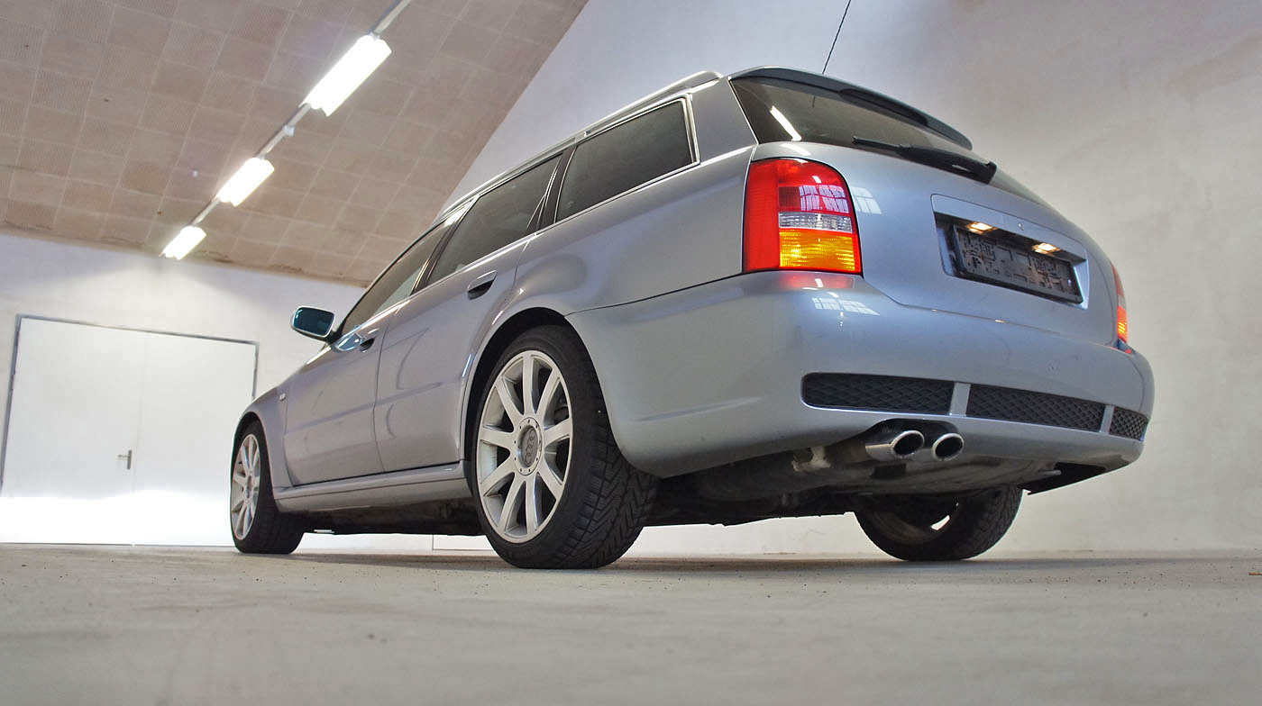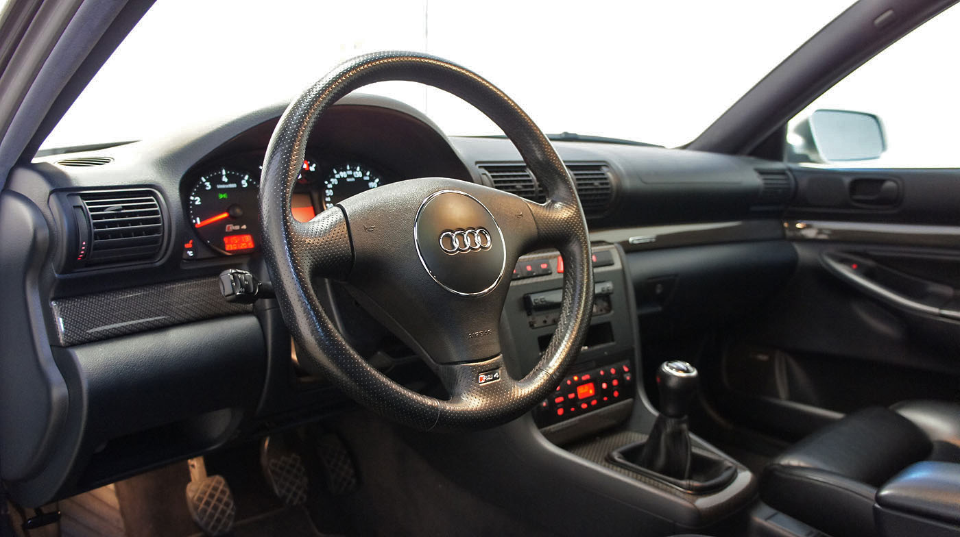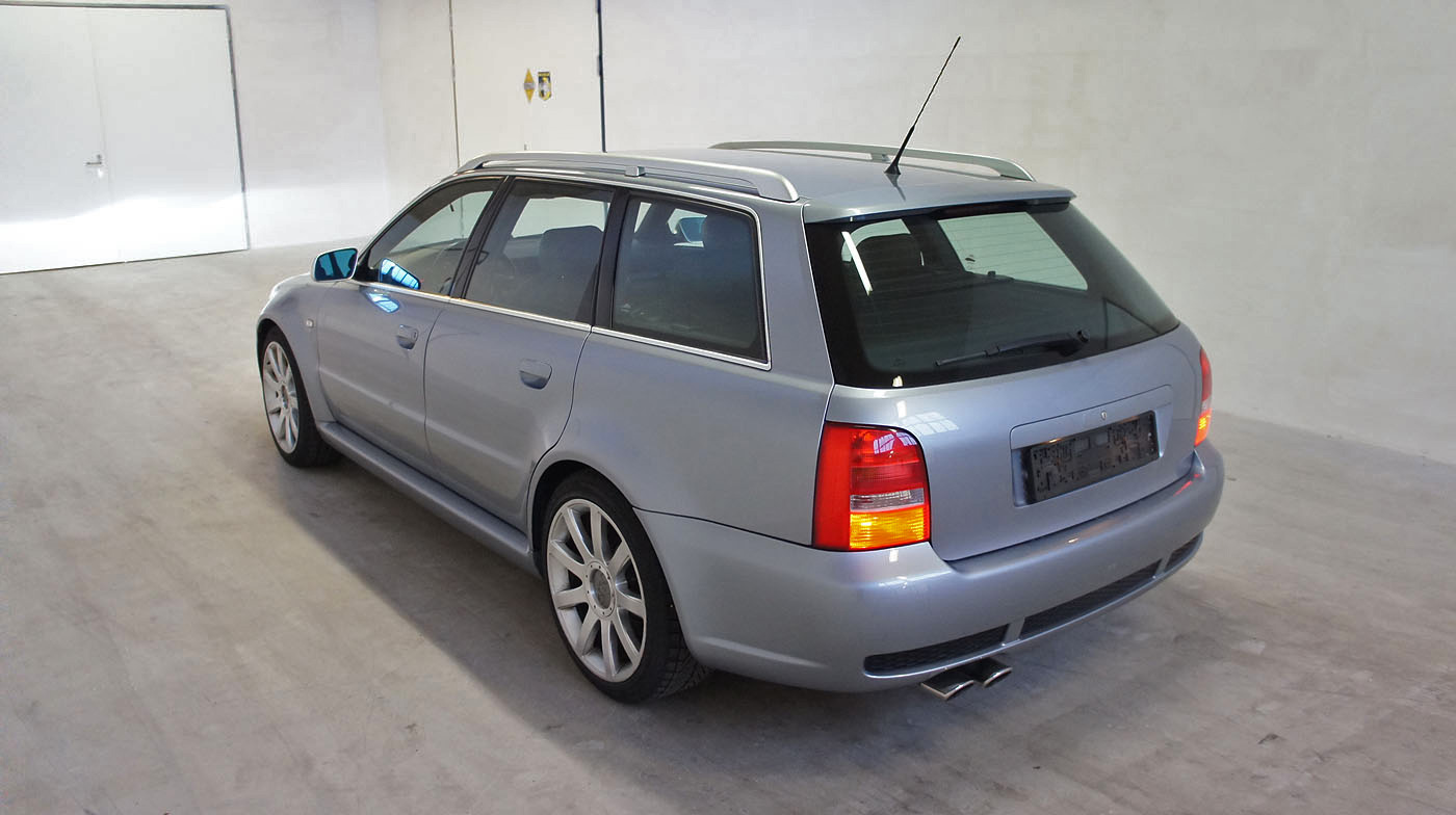Audi RS4 B5 Biturbo, grosse RS4 B7 Bremse mit Gutachten, Recaro Lederausstattung schwarz, Carbon Decorleisten, Glas-Schiebedach, Vorkats entfernt und Individualabstimmung durch RS-Werkstatt ca. 440, Tempomat, stärkere Benzinpumpe, Sportec Schaltwegverkürzung.