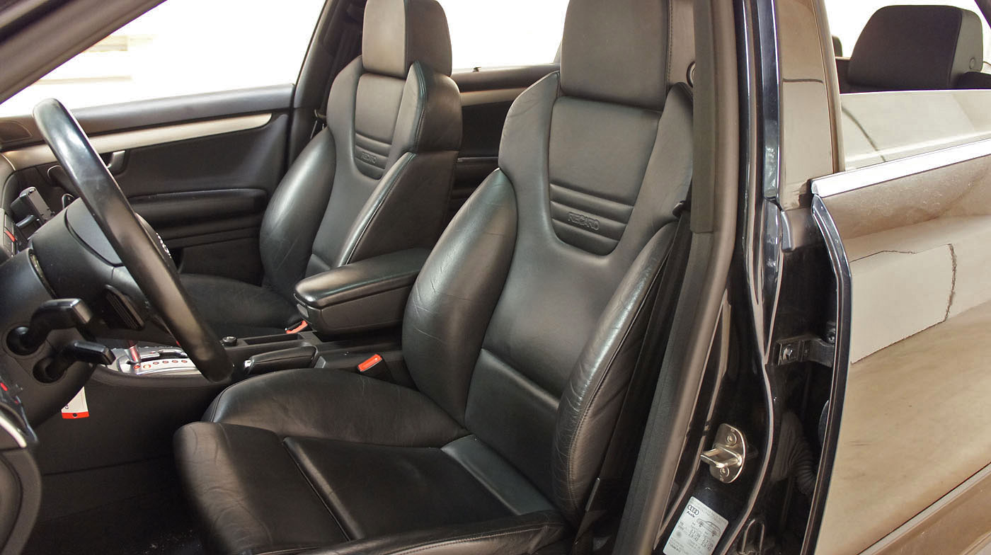 Audi S4 B6 V8, Recaro Lederaussatttung schwarz mit MAL und Memroy, Alu-Decorleisten, Türpappen hinten mit Sonnenrollos, Navi-Plus, autom. abblendarer Innenspiegel, Glas-Schiebedach, Parksensoren