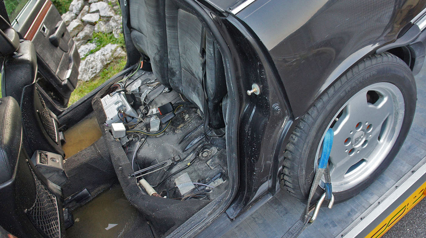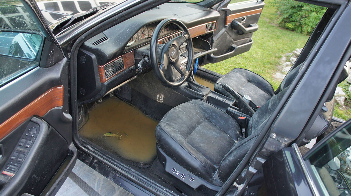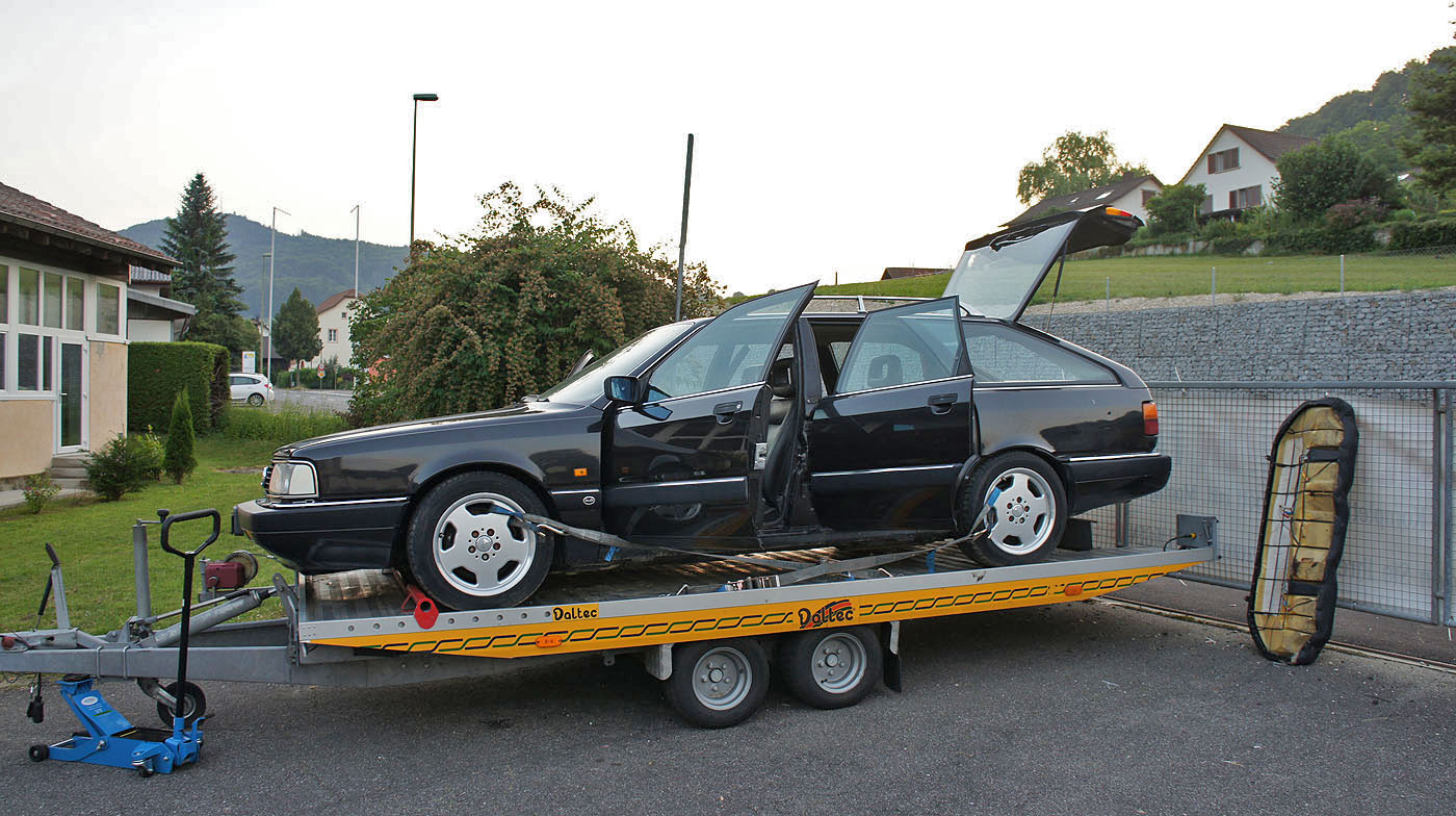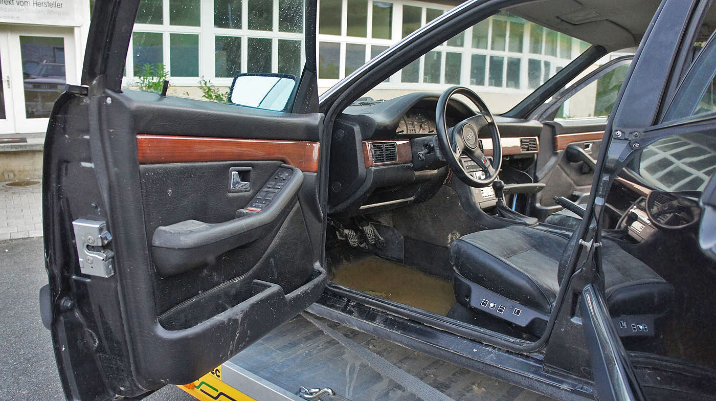 200 20V Avant mit Wasserschaden, Stand infolge Regenfall und Überschwemmung unter (Schmutz-)Wasser bis zu den Aussenspiegeln (Kombiinstrument blieb über Wasser). UFO Bremsenteile 3'000 km alt, Funktion Handbremse gut, schwarze Lederausstattung elektrisch verstellbare Vordersitze mit Memory, Klima, 16 Zoll RH-Räder (vo li Plattfuss), Tieferlegung H&R, Dachhimmel hat sich gelöst (Feuchtigkeit). Fahrzeug ist für Teile oder für Komplett-Restauration.