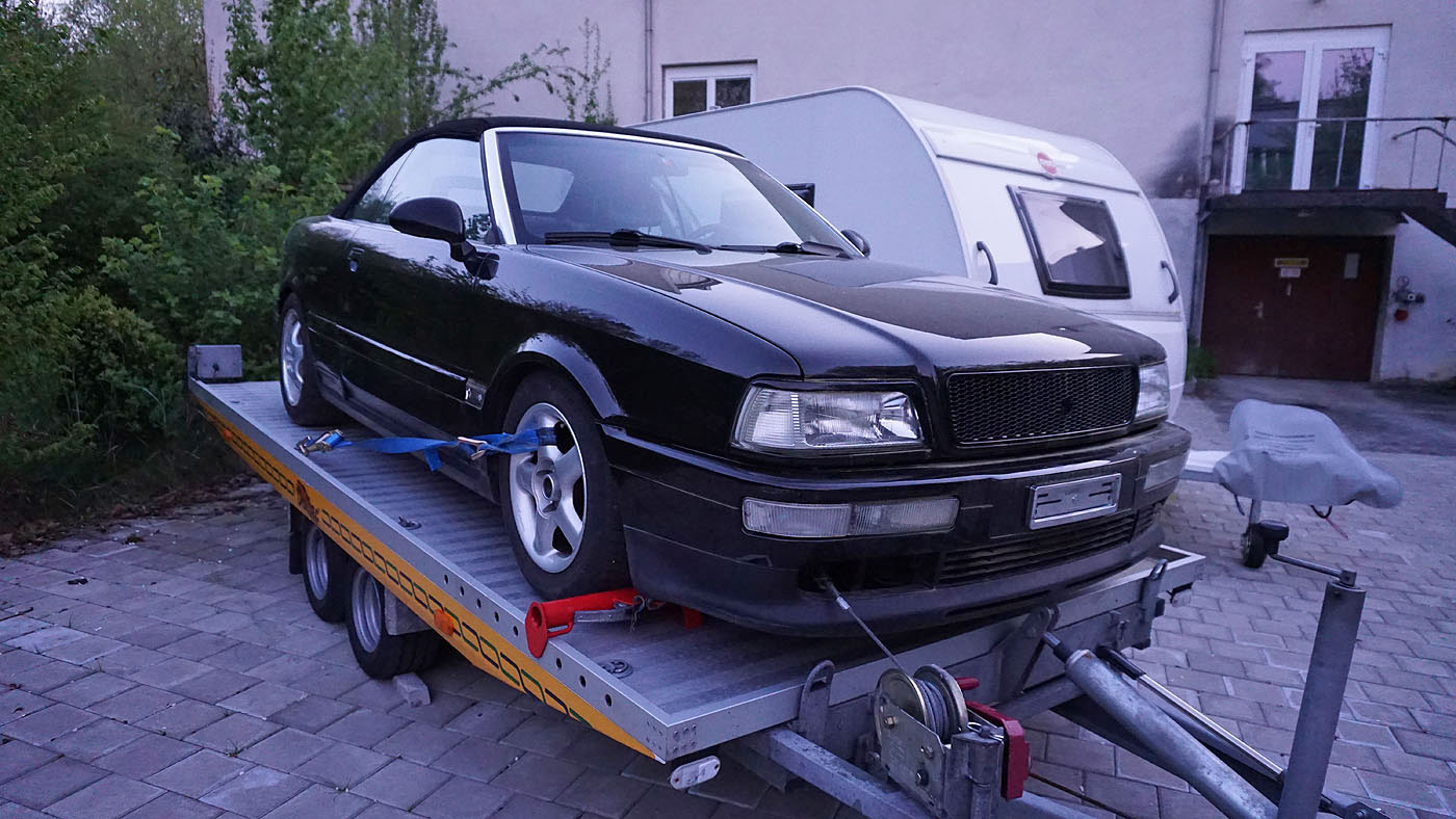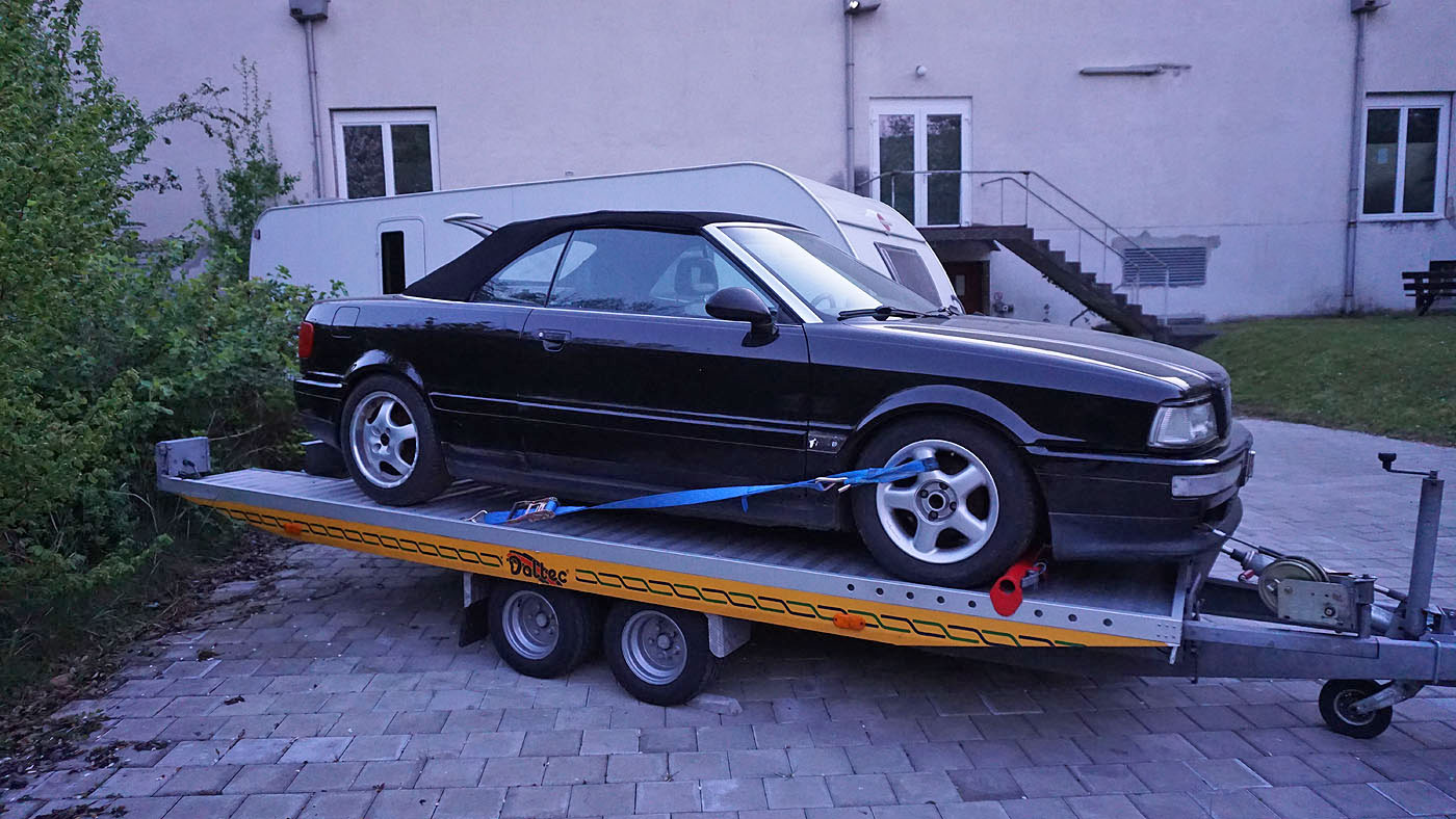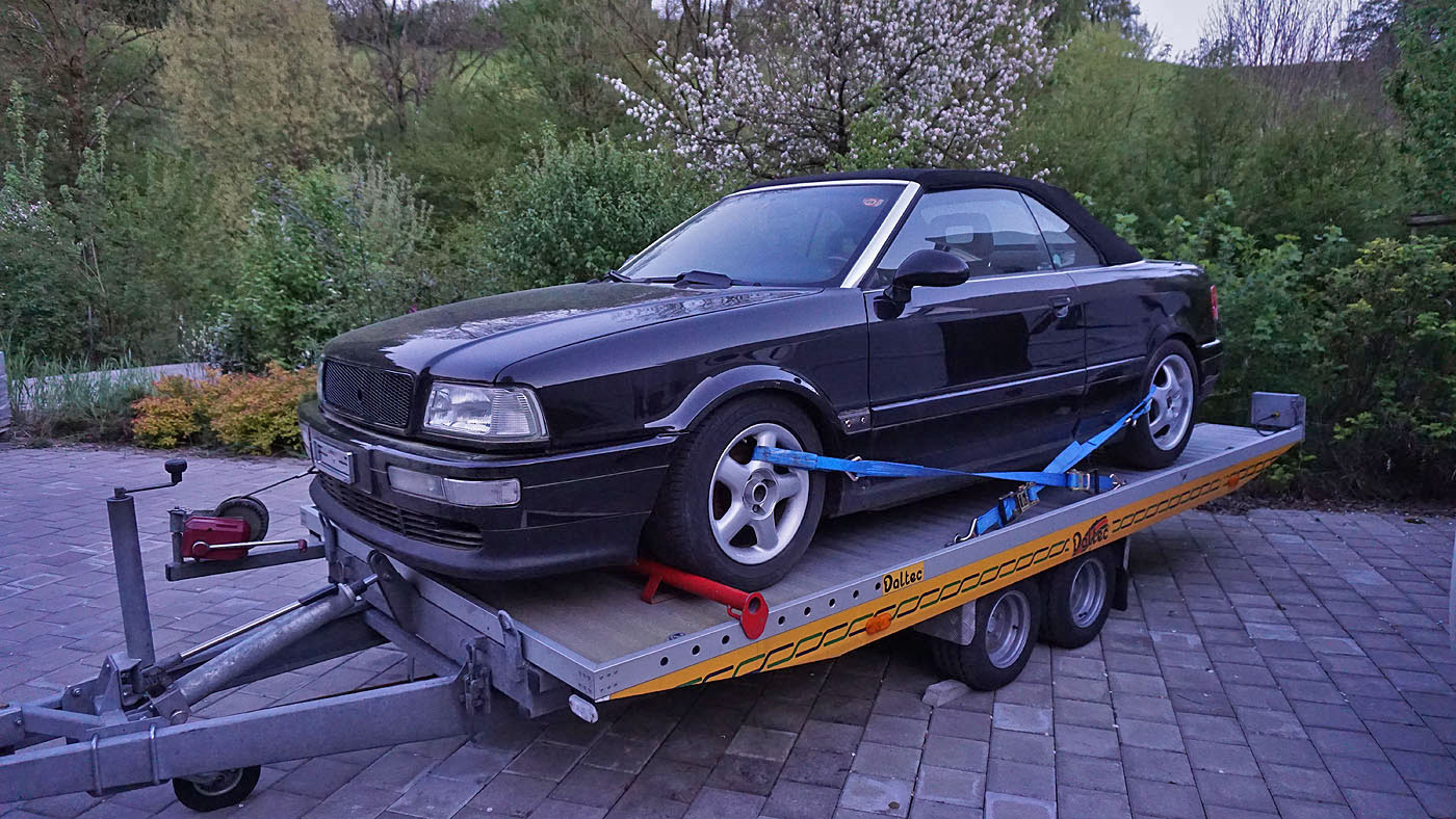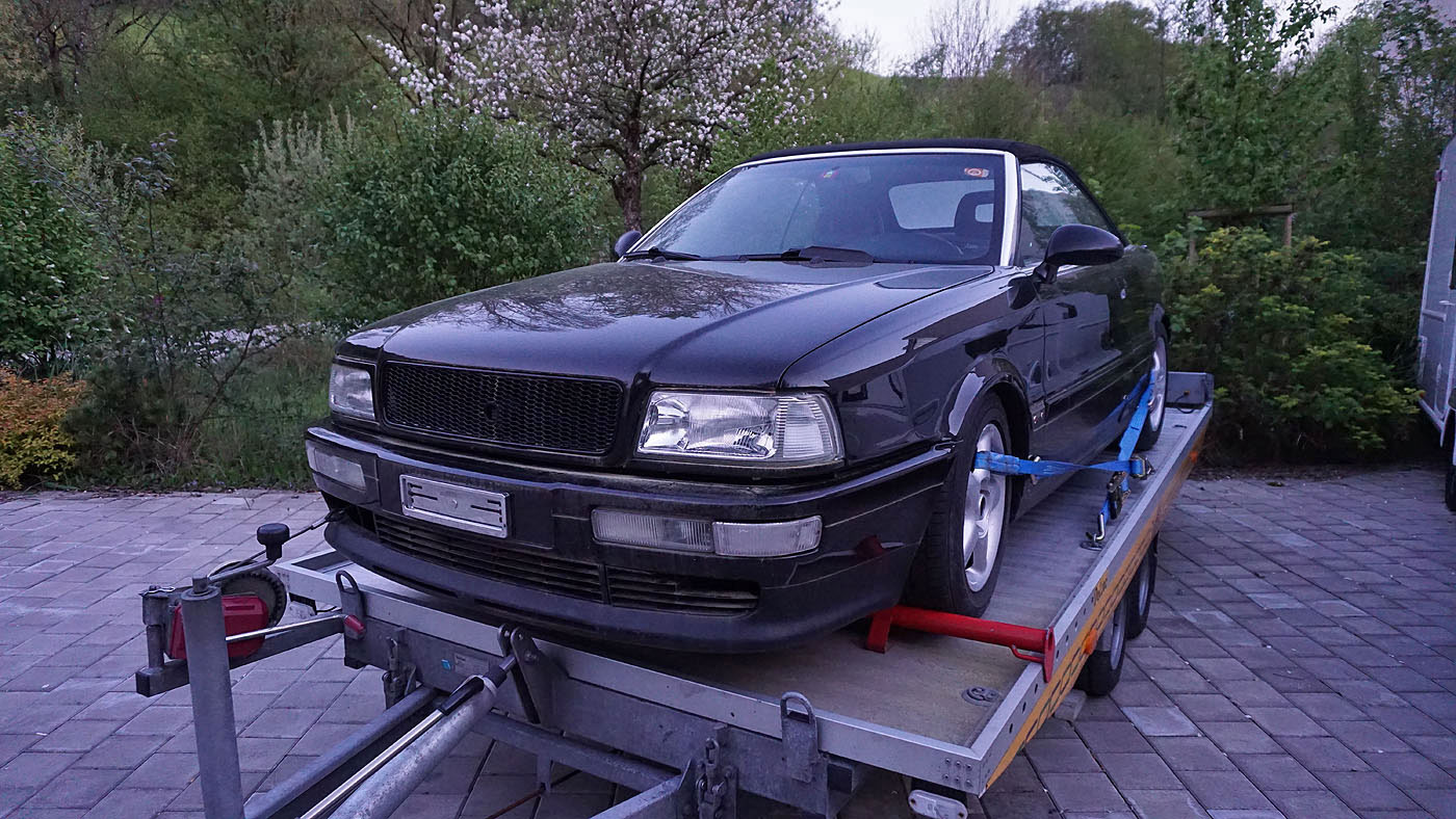 Audi Cabrio Typ89, V6 Handschalter, elektr. Verdeck in gutem Zustand, RS2 Aussenspiegel, Metall Spezial-Kühlergrill, "böser Blick", schwarze Lederausstattung in gutem Zustand. Kupplung / Druckplatte defekt.