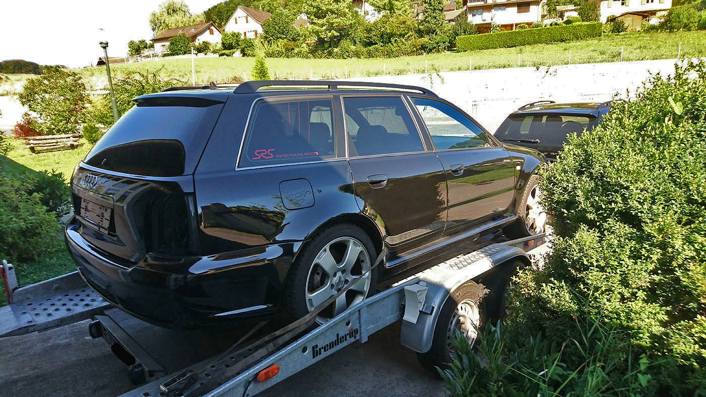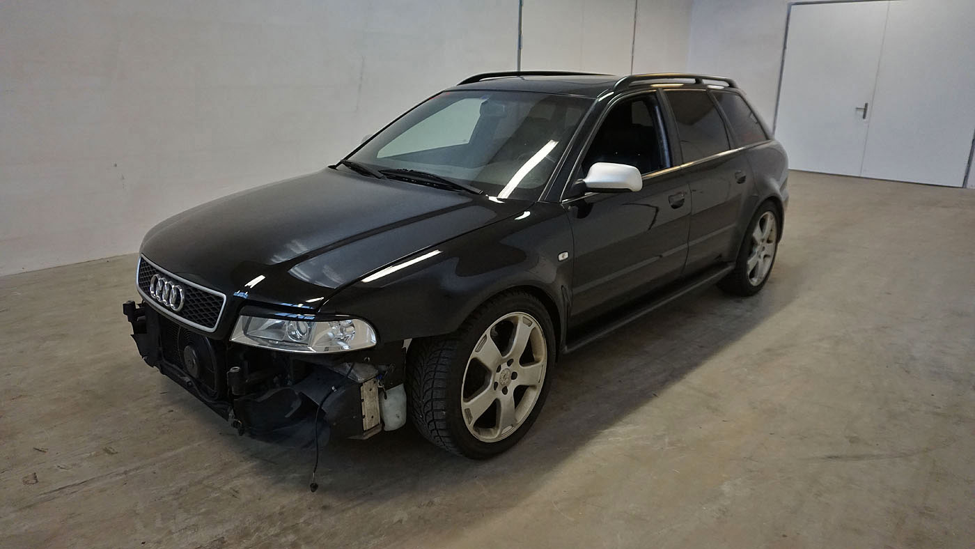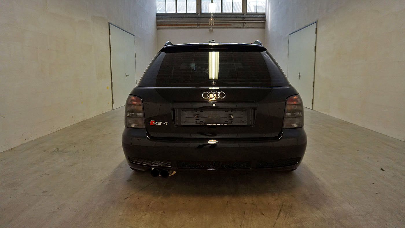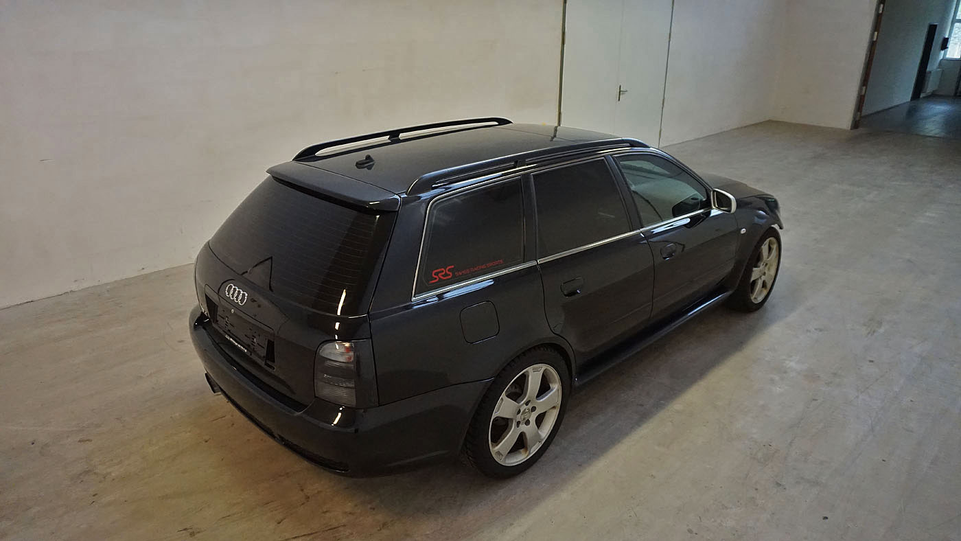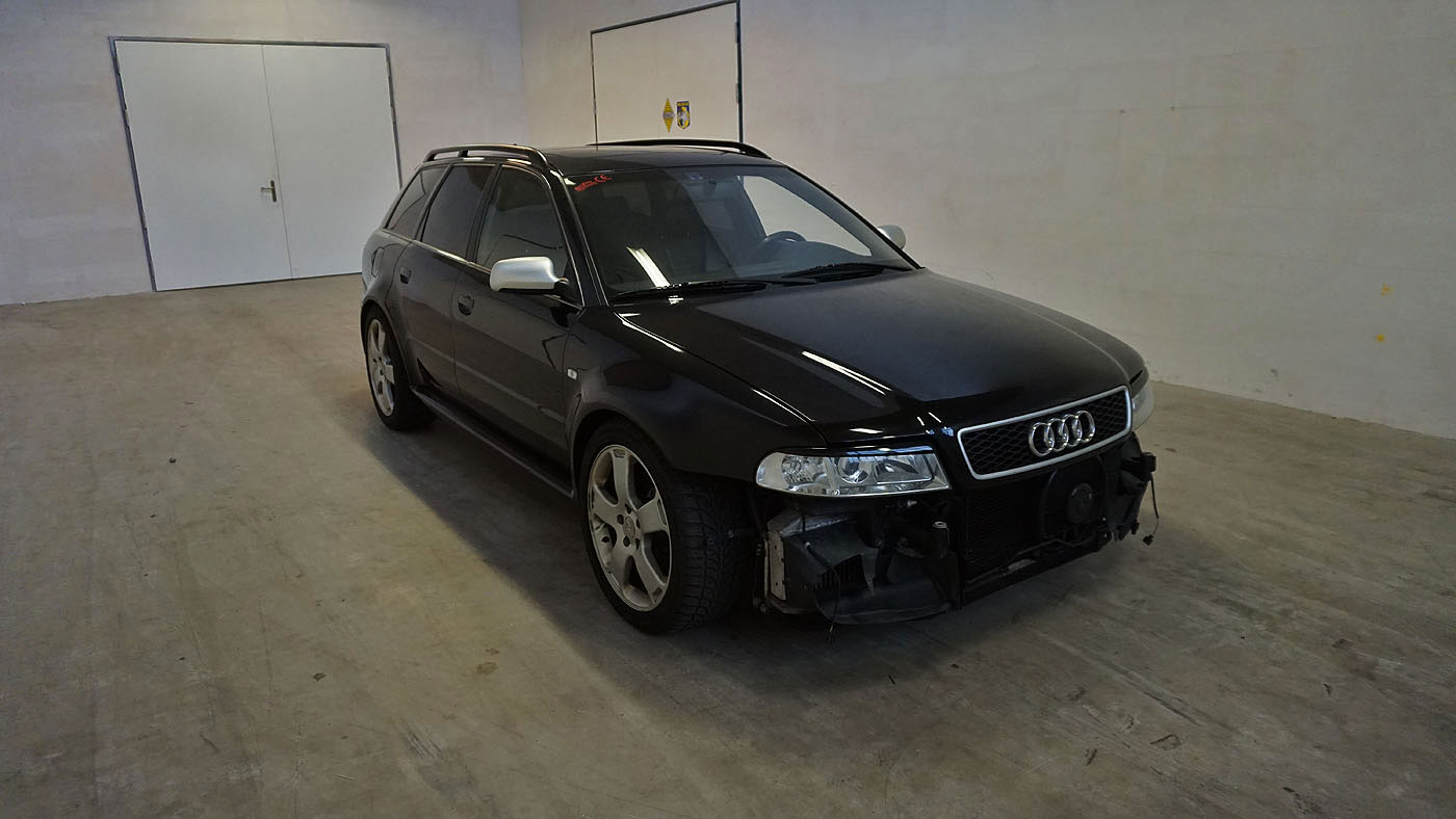 Audi RS4 B5, Recaro Leder schwarz, Multifunktionslenkrad, Decorleisten schwarz Klavierlack, autom. abblendbarer Rückspiegel innen, grosses Navi, Glas-Schiebedach, schwarze Dachrelinge und schwarz eloxierte Zierleisten aussen, Gepäckraum-Trennnetz, beleuchtete Audi-Logo in Türpappen unten, Sportec-Endschalldämpfer, dunkle Rückleuchten, Winterräder, Distanzscheiben mit Gutachten. Es fehlt die Stossstange vorne infolge kleinem Frontschaden. Spiegelglas Fahrerseite defekt. Servicegepflegtes Fahrzeug mit Scheckheft.