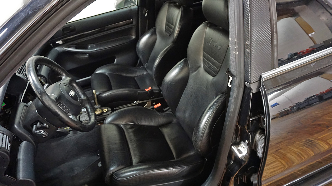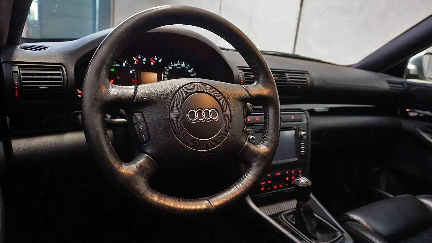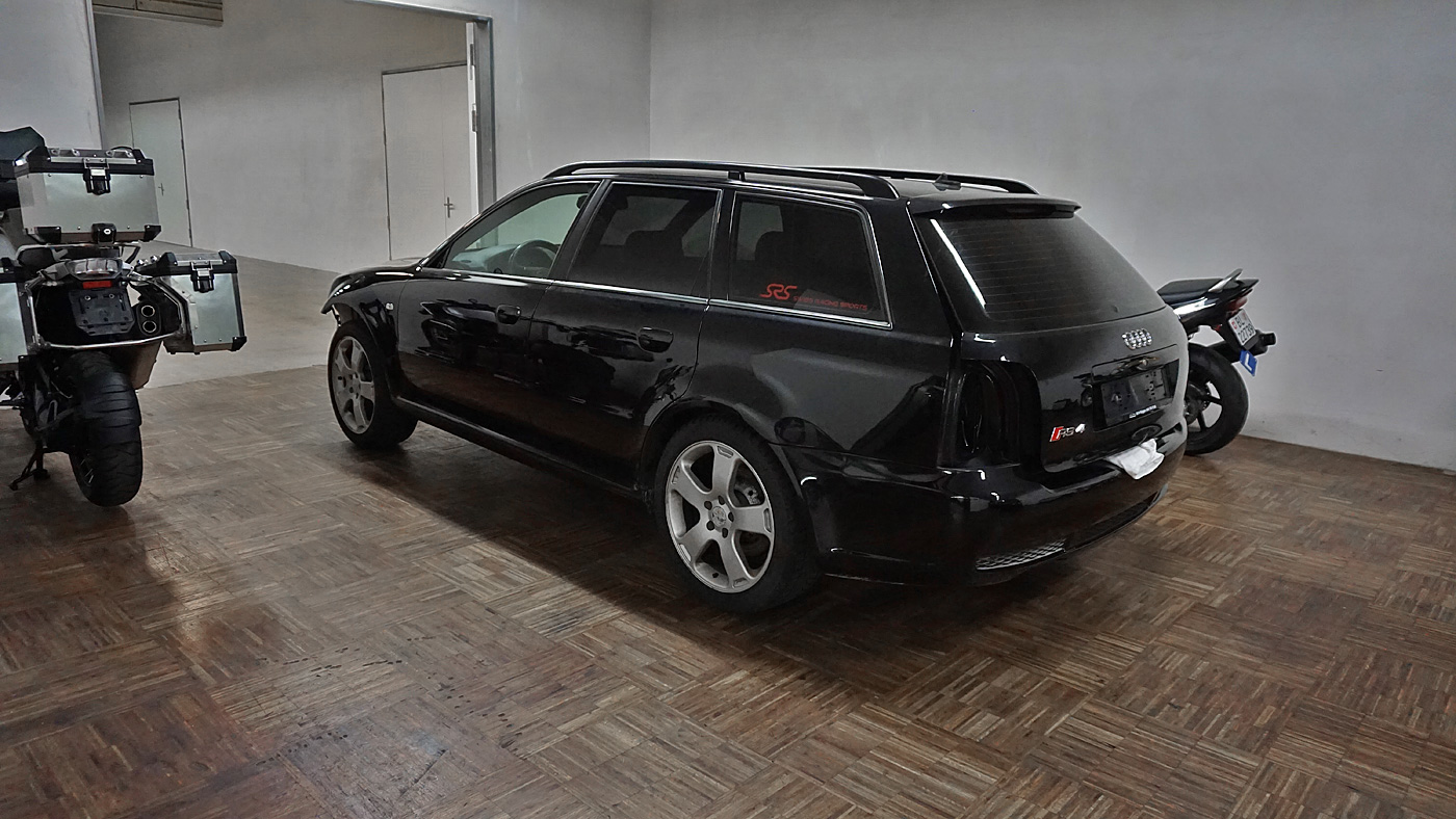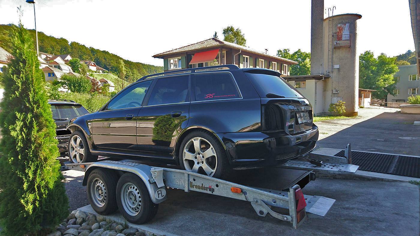 Audi RS4 B5, Recaro Leder schwarz, Multifunktionslenkrad, Decorleisten schwarz Klavierlack, autom. abblendbarer Rückspiegel innen, grosses Navi, Glas-Schiebedach, schwarze Dachrelinge und schwarz eloxierte Zierleisten aussen, Gepäckraum-Trennnetz, beleuchtete Audi-Logo in Türpappen unten, Sportec-Endschalldämpfer, dunkle Rückleuchten, Winterräder, Distanzscheiben mit Gutachten. Es fehlt die Stossstange vorne infolge kleinem Frontschaden. Spiegelglas Fahrerseite defekt. Servicegepflegtes Fahrzeug mit Scheckheft.