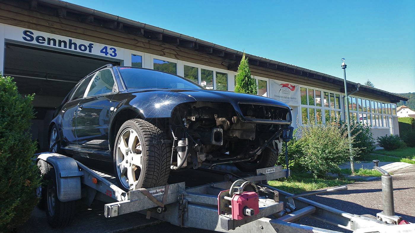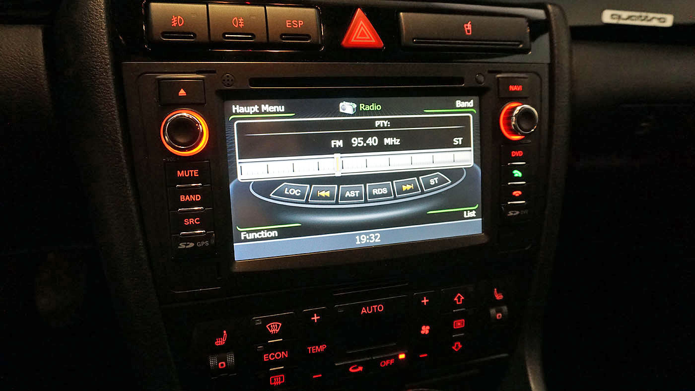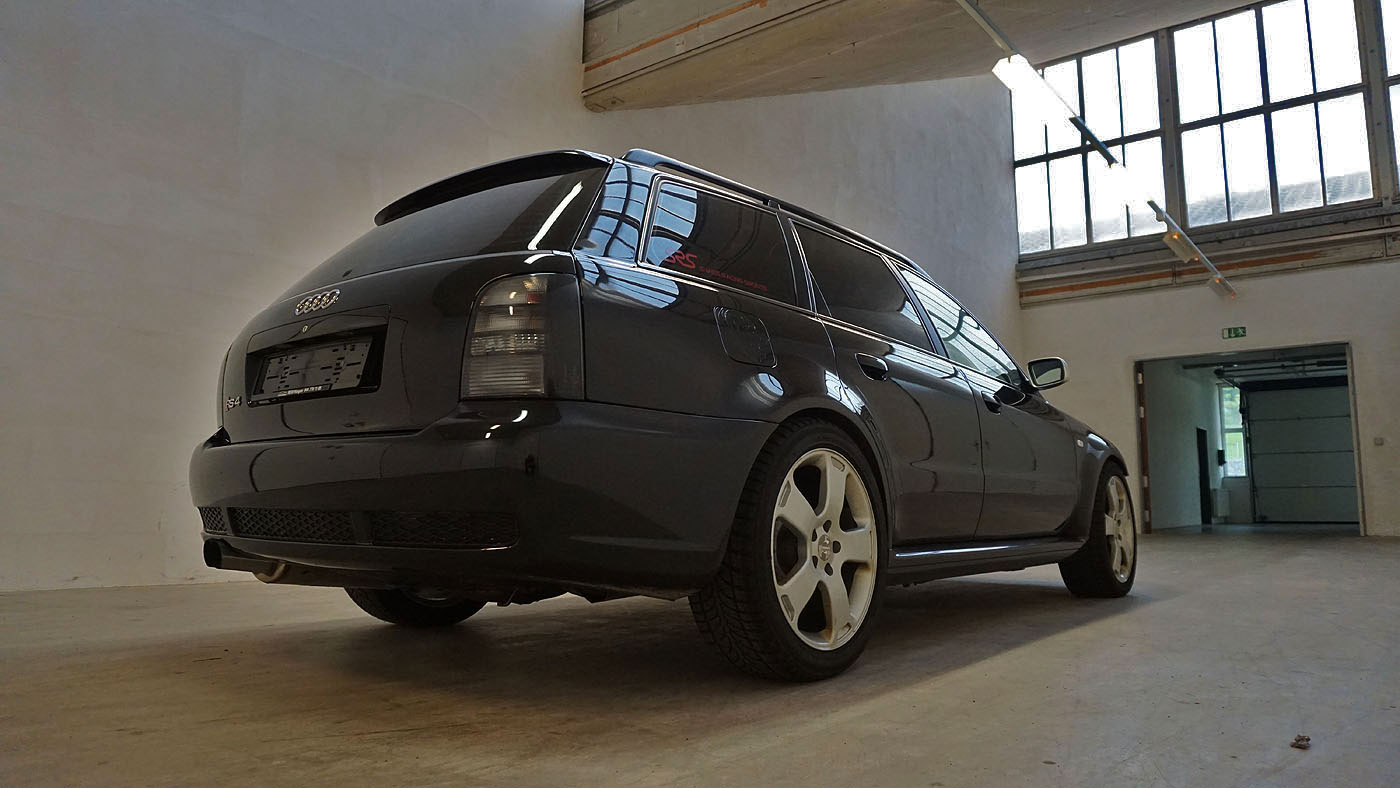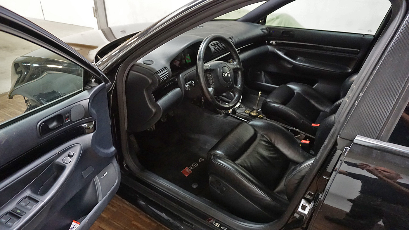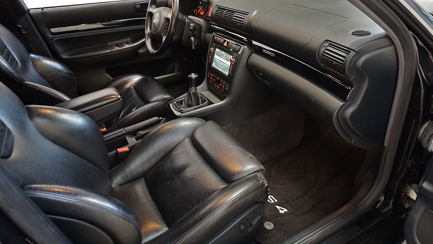 Audi RS4 B5, Recaro Leder schwarz, Multifunktionslenkrad, Decorleisten schwarz Klavierlack, autom. abblendbarer Rückspiegel innen, grosses Navi, Glas-Schiebedach, schwarze Dachrelinge und schwarz eloxierte Zierleisten aussen, Gepäckraum-Trennnetz, beleuchtete Audi-Logo in Türpappen unten, Sportec-Endschalldämpfer, dunkle Rückleuchten, Winterräder, Distanzscheiben mit Gutachten. Es fehlt die Stossstange vorne infolge kleinem Frontschaden. Spiegelglas Fahrerseite defekt. Servicegepflegtes Fahrzeug mit Scheckheft.