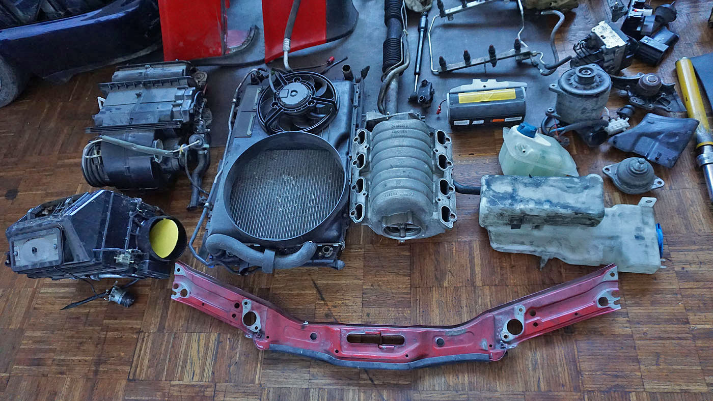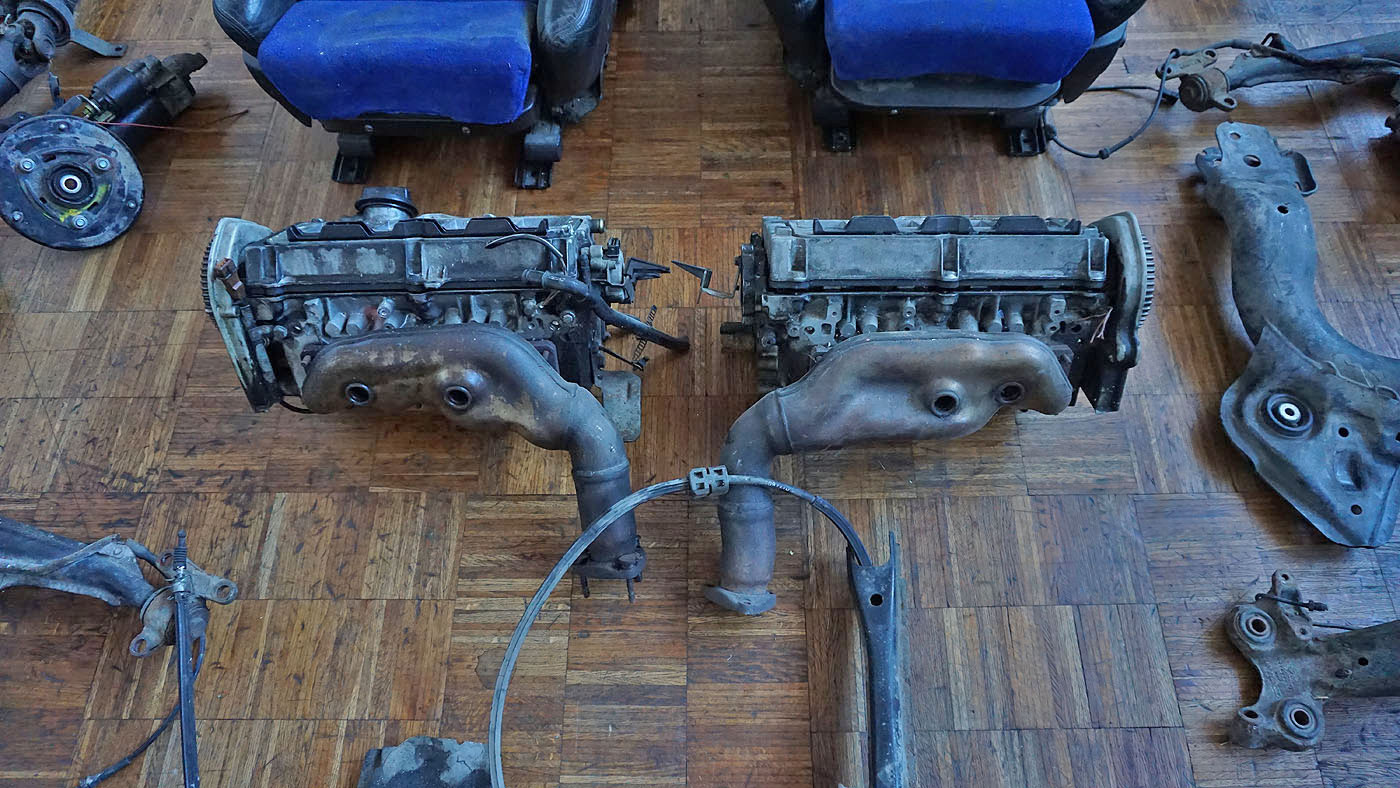 - beide Zylinderköpfe mit Abgaskrümmern und Ventildeckeln (evtl. Ventile