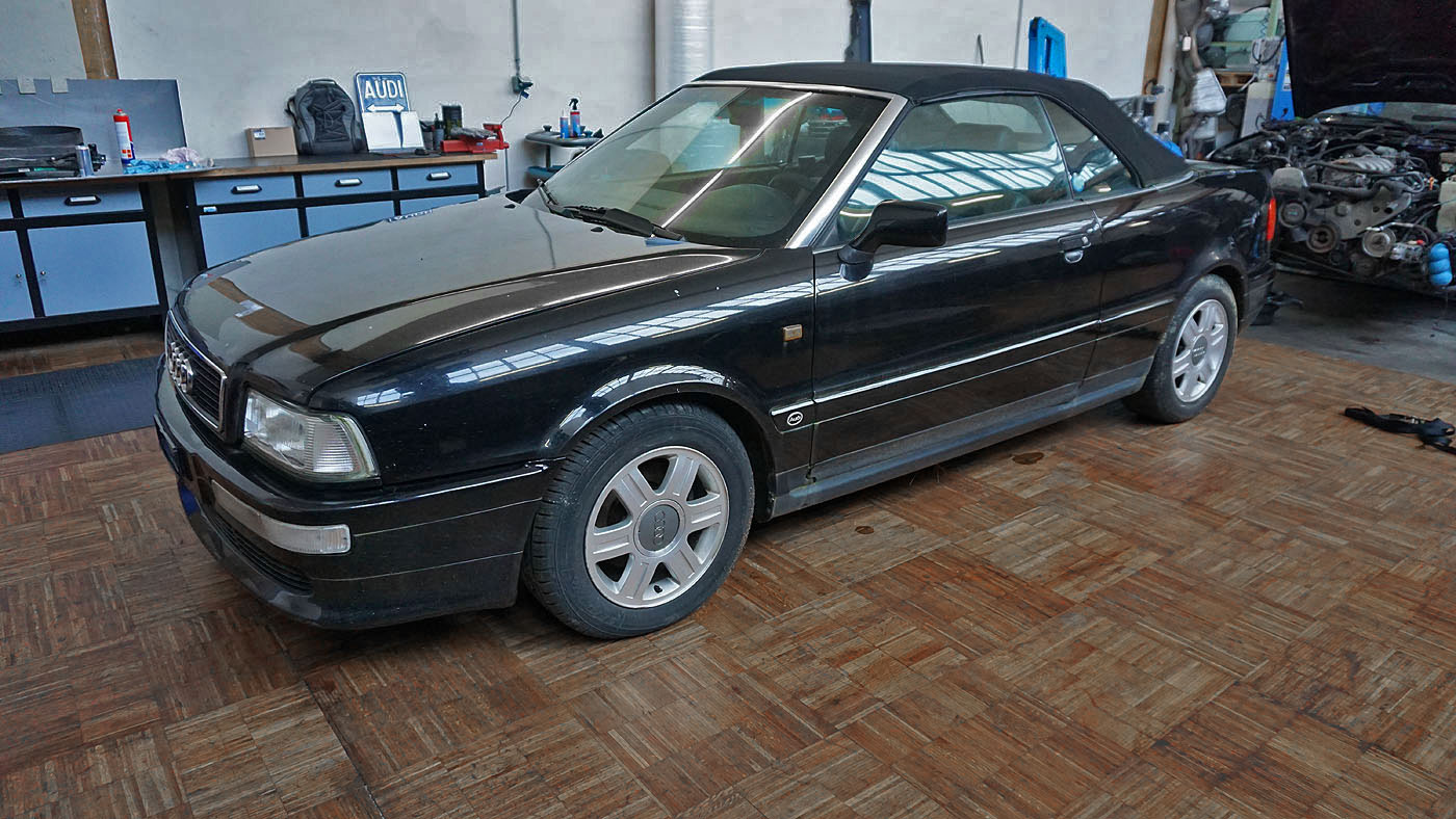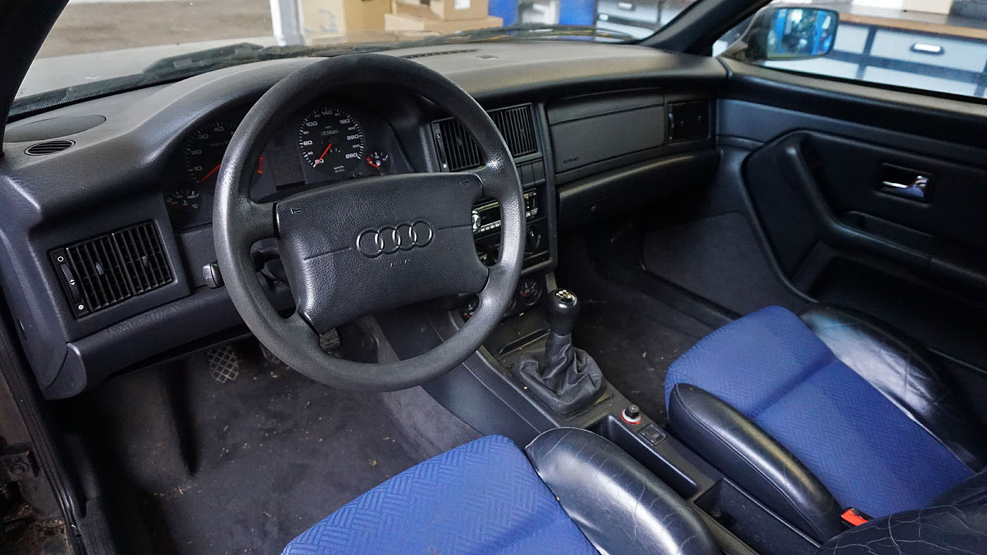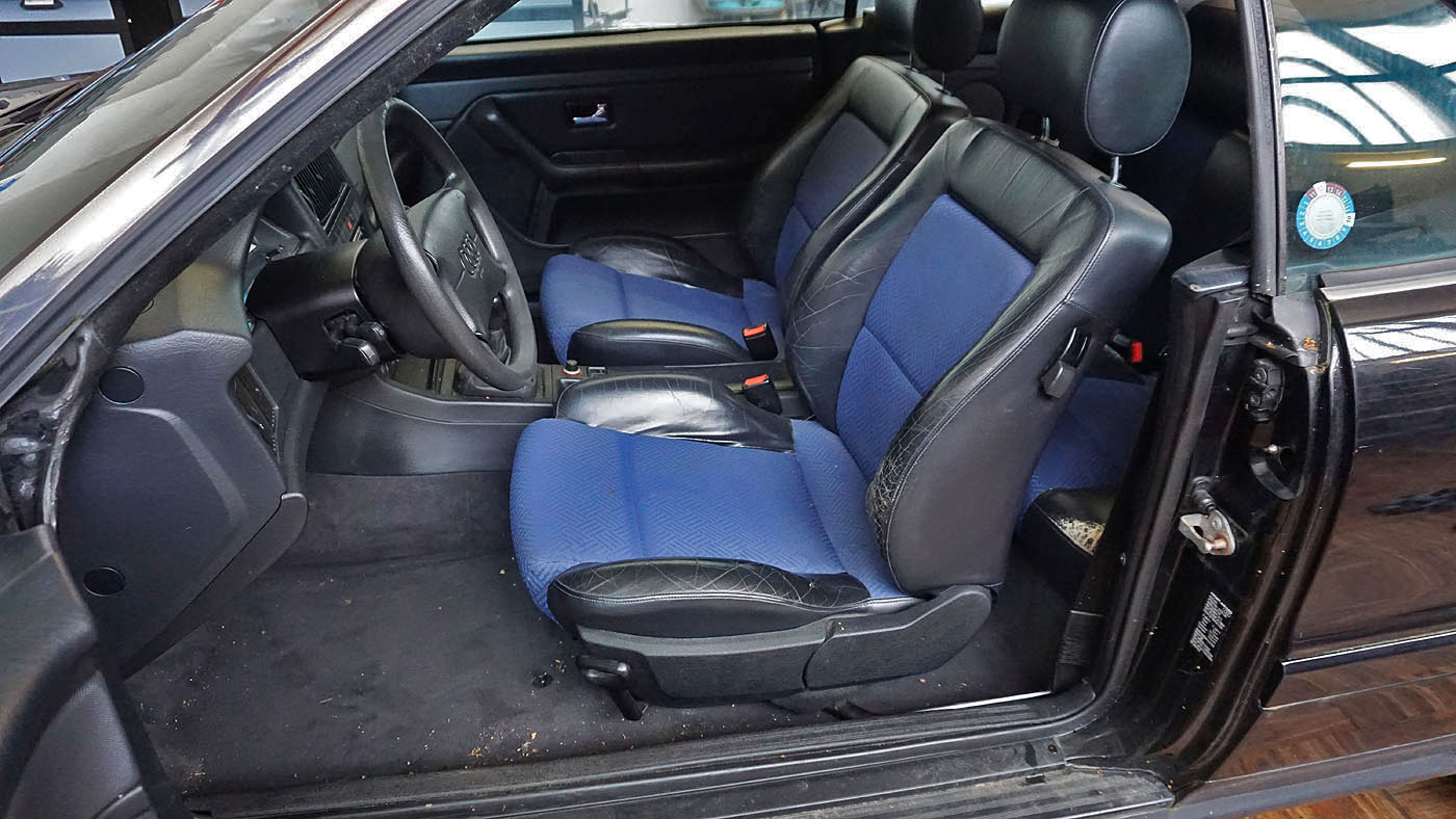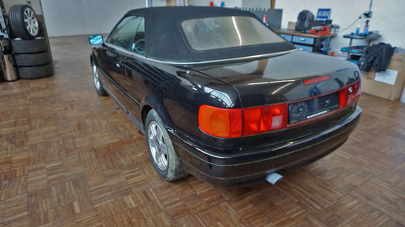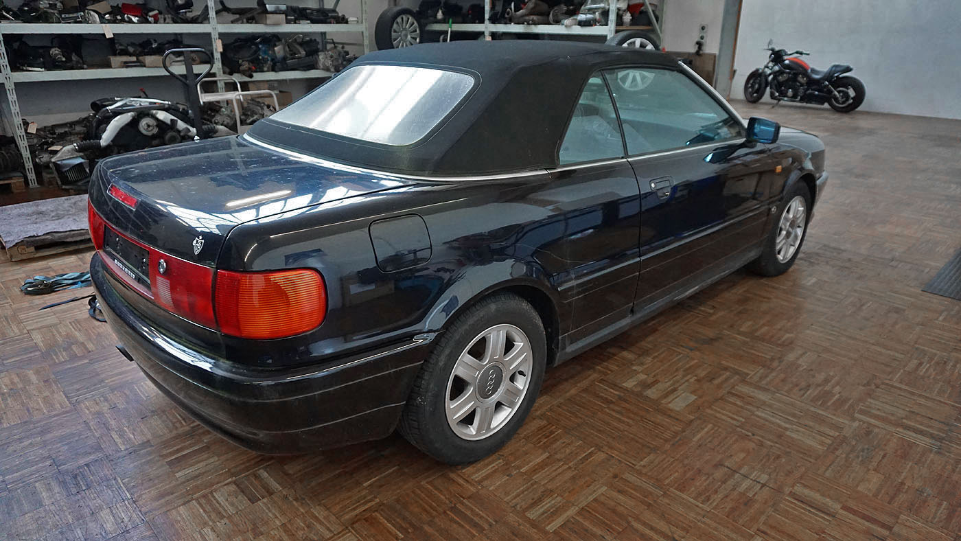 Audi Cabrio Typ89 Facelift mit "V6" Stossstange, Heckklappe mit Bremslicht, Modell 1995 Armaturenbrett mit Doppelairbag, hochgezogene Türpappen