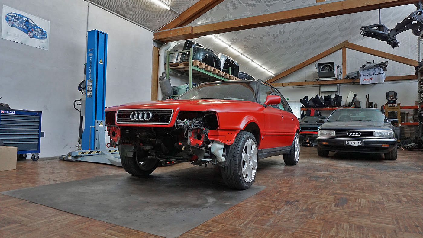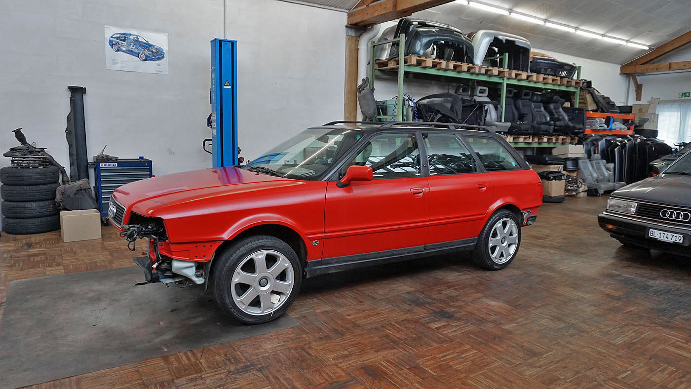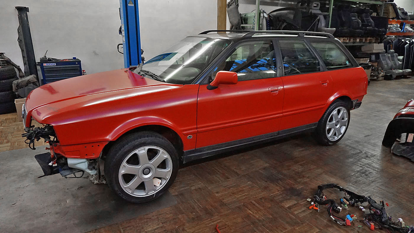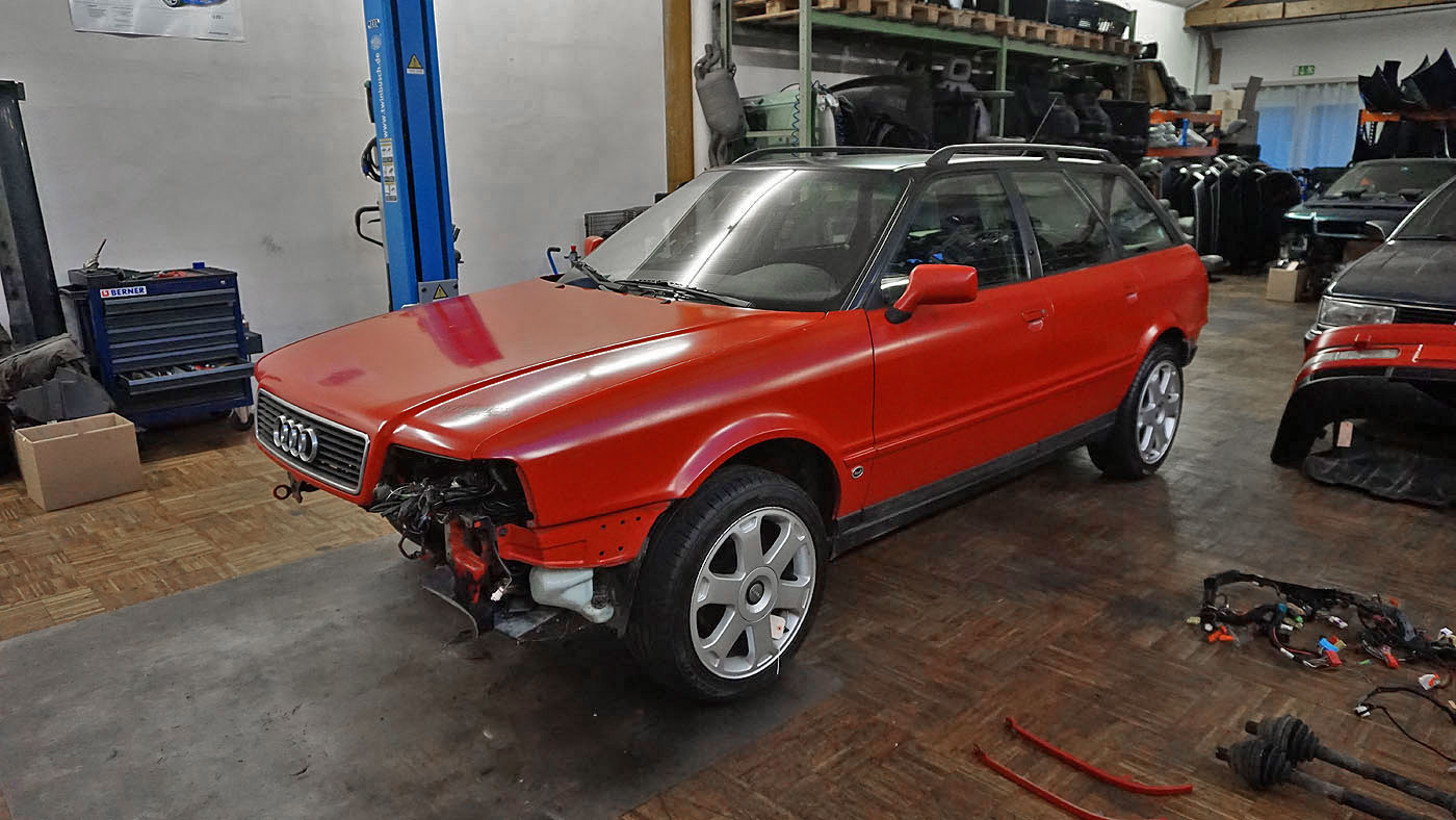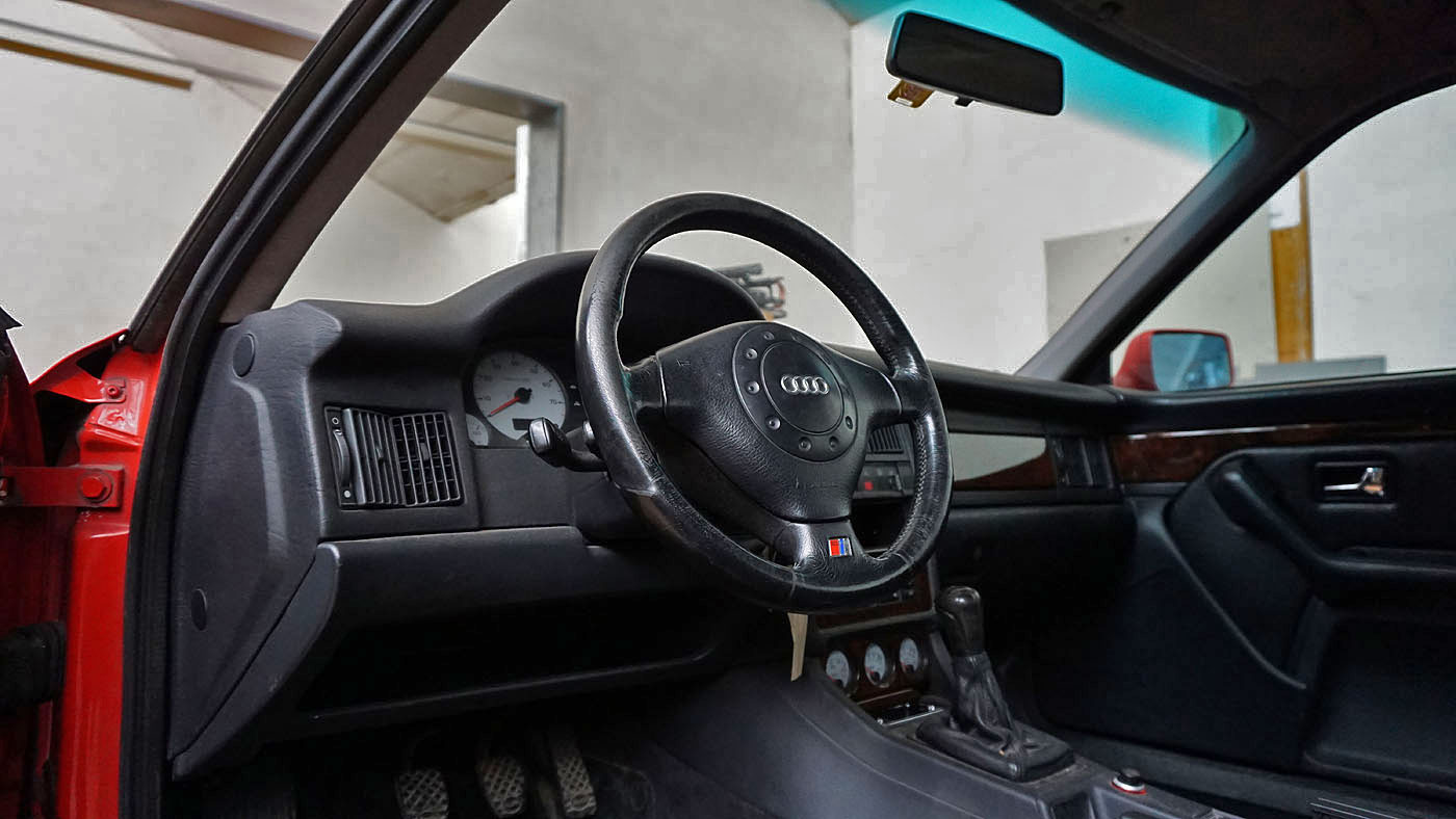 Audi S2 Avant, Modell 1995 mit dicker Lenksäule, Motor Zylinderkopfdichtung (RS2) gewechselt, Wurzelholz-Decor, Lederausstattung schwarz, Anhängerkupplung, Steuergerät mit Chiptuning, TFSI-Zündung