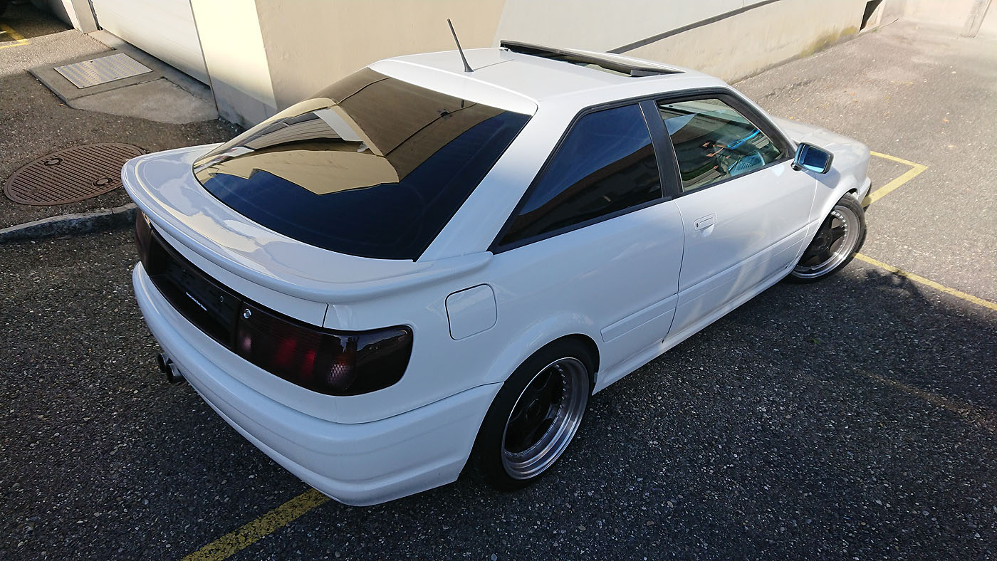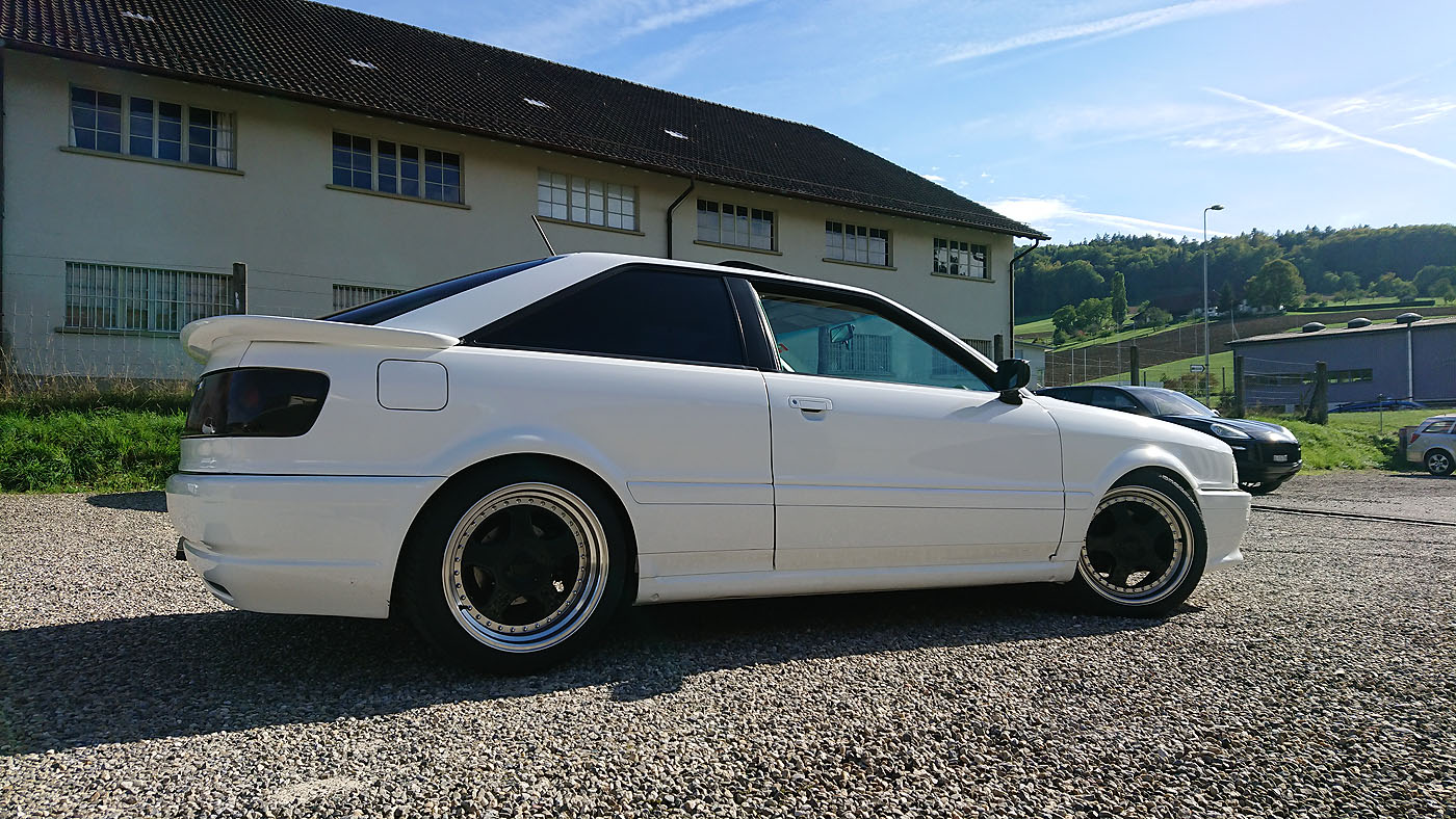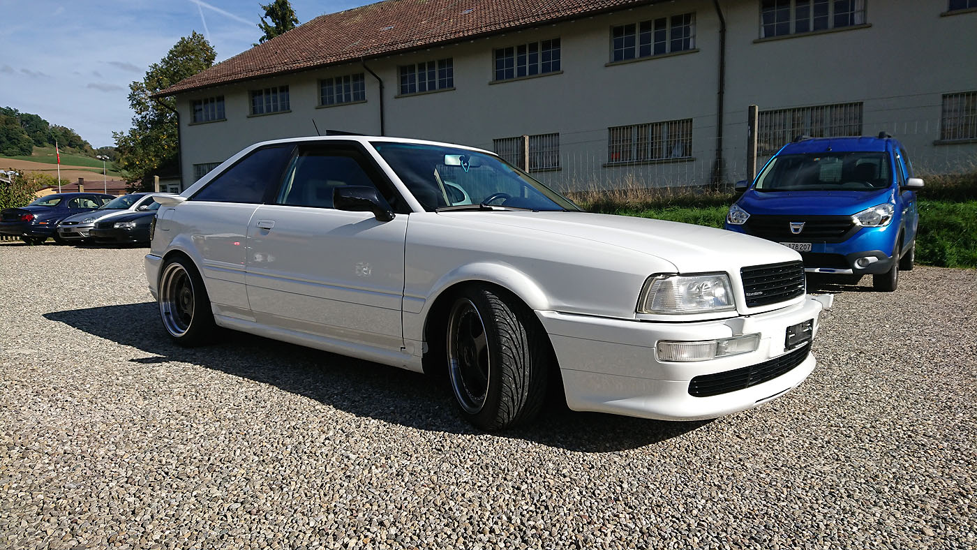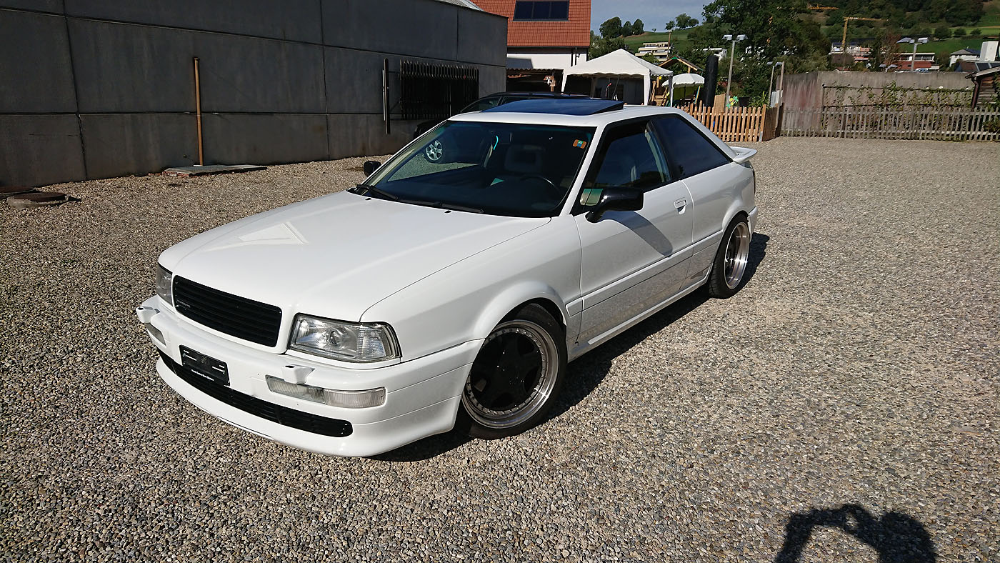 Audi S2 Coupé ABY Modell 1995 mit Carbondekor und Doppelairbag, Glas-Schiebedach mit Vorwählautomatik, Lederausstattung. Tuning: RS2 Step mit RS2 Turbolader und Einspritzdüsen, Wagner Ladeluftkühler und Wagner Abgaskrümmer, BN-Pipes Abgasanlage, KW Gewindefahrwerk, digitale Ladedruckanzeige, MTM Motorsteuergerät, verstärkte Turboschläuche GTM, spezielle Stossstange hinten Eigenbau, Linsenscheinwerfer auf Xenon umgebaut, Keskin Räder vo 8,5x17, hi 10x17, Treser Rückleuchten, Porsche Bremse, Boleros in Speziallackierung