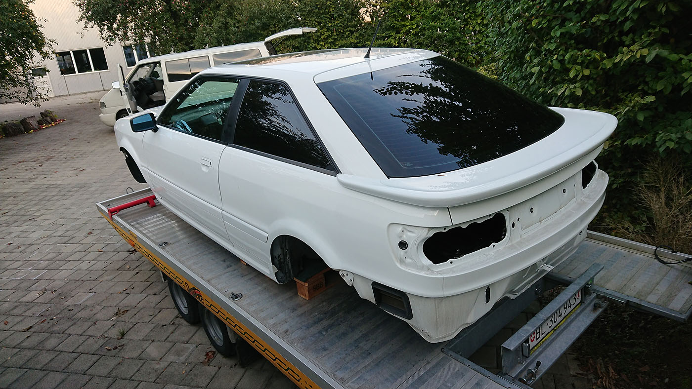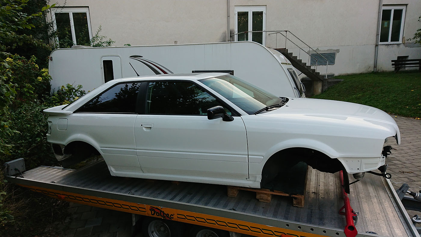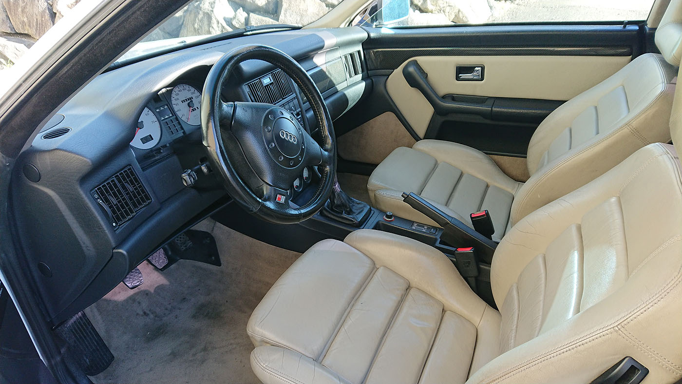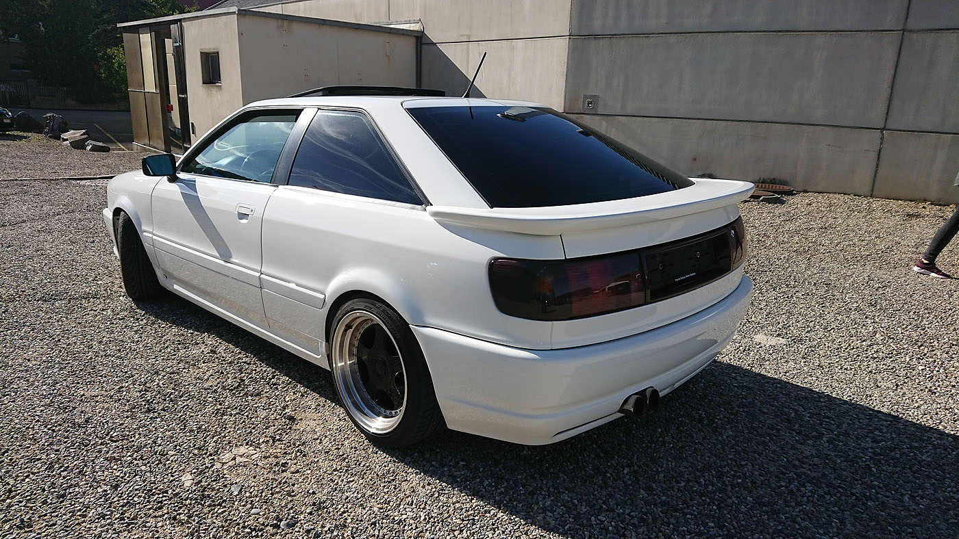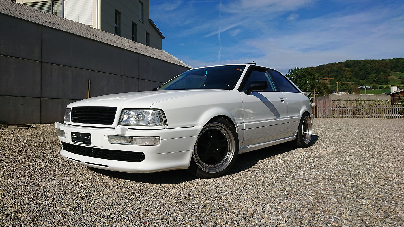 Audi S2 Coupé ABY Modell 1995 mit Carbondekor und Doppelairbag, Glas-Schiebedach mit Vorwählautomatik, Lederausstattung. Tuning: RS2 Step mit RS2 Turbolader und Einspritzdüsen, Wagner Ladeluftkühler und Wagner Abgaskrümmer, BN-Pipes Abgasanlage, KW Gewindefahrwerk, digitale Ladedruckanzeige, MTM Motorsteuergerät, verstärkte Turboschläuche GTM, spezielle Stossstange hinten Eigenbau, Linsenscheinwerfer auf Xenon umgebaut, Keskin Räder vo 8,5x17, hi 10x17, Treser Rückleuchten, Porsche Bremse, Boleros in Speziallackierung