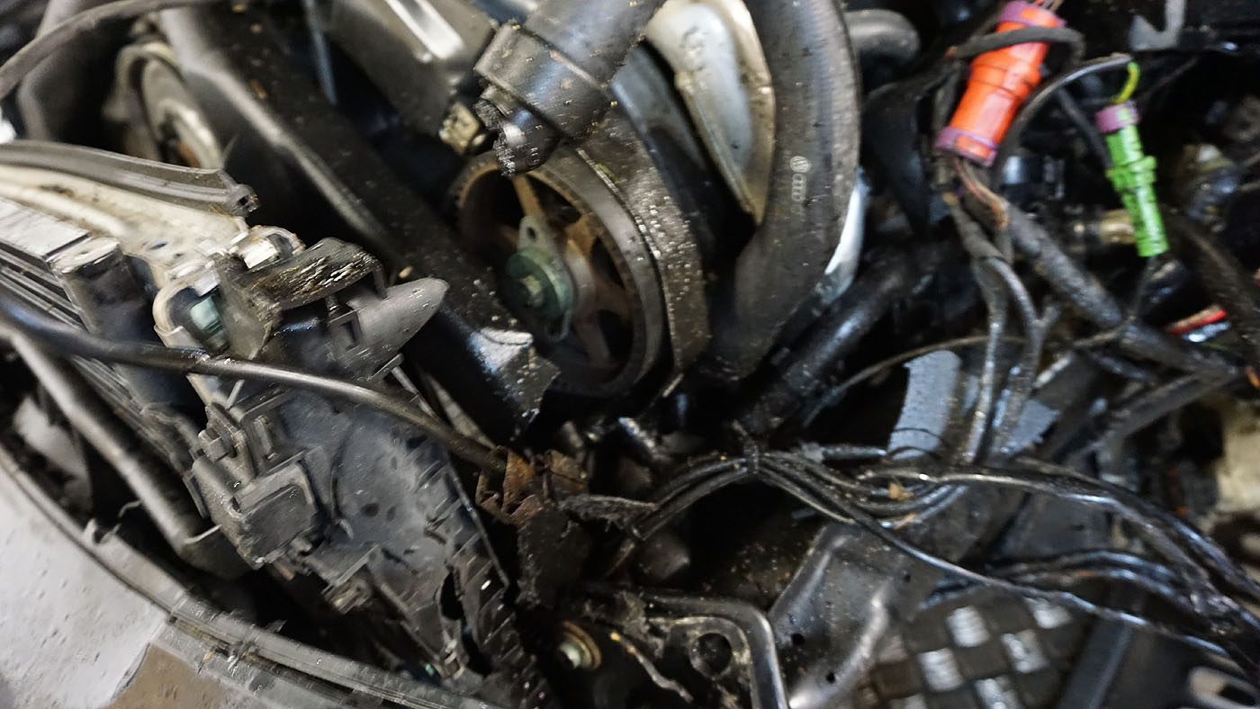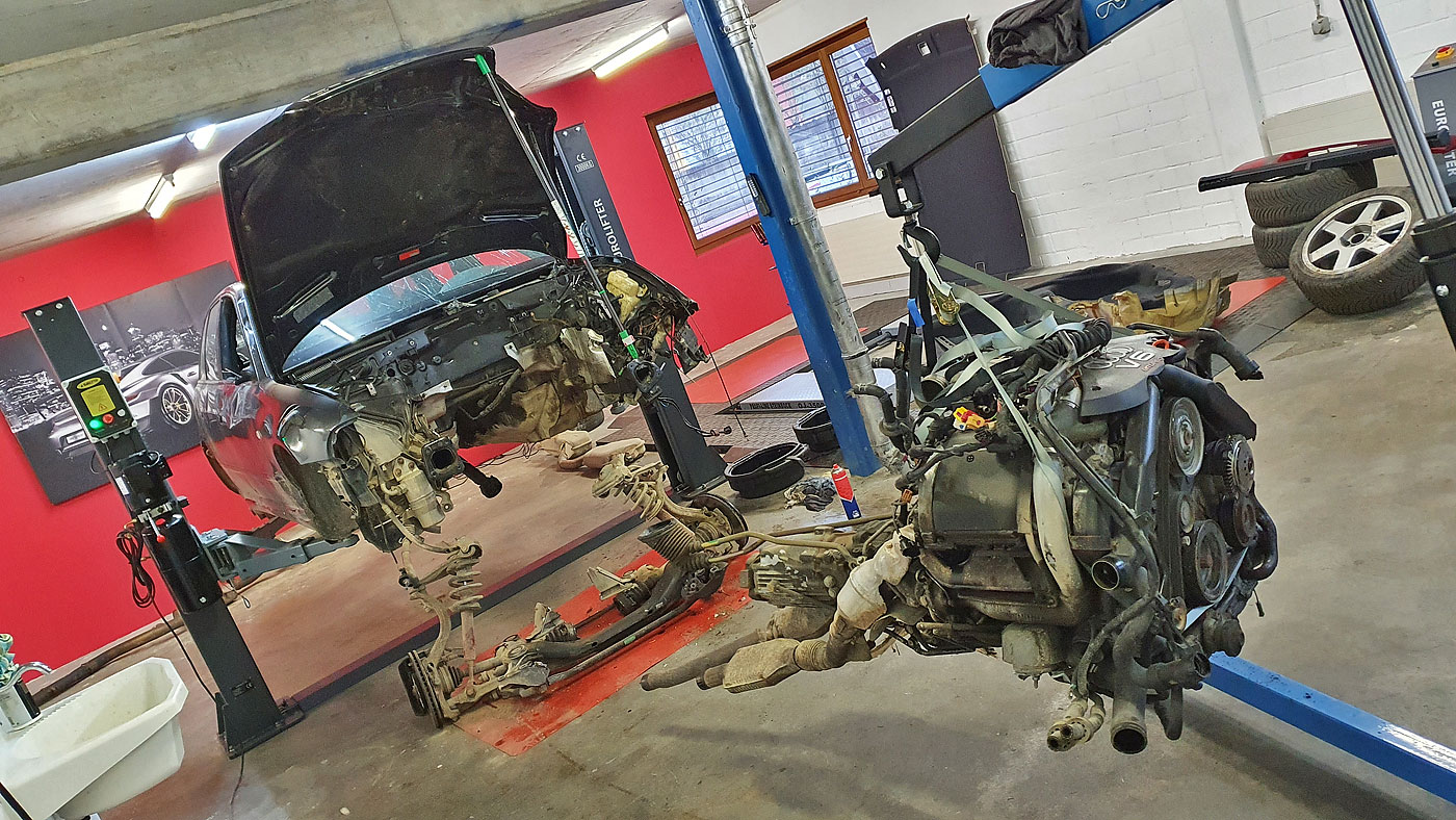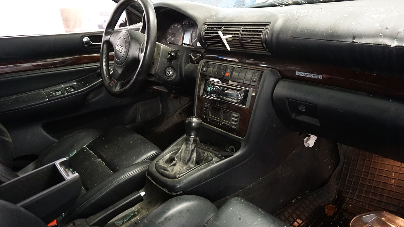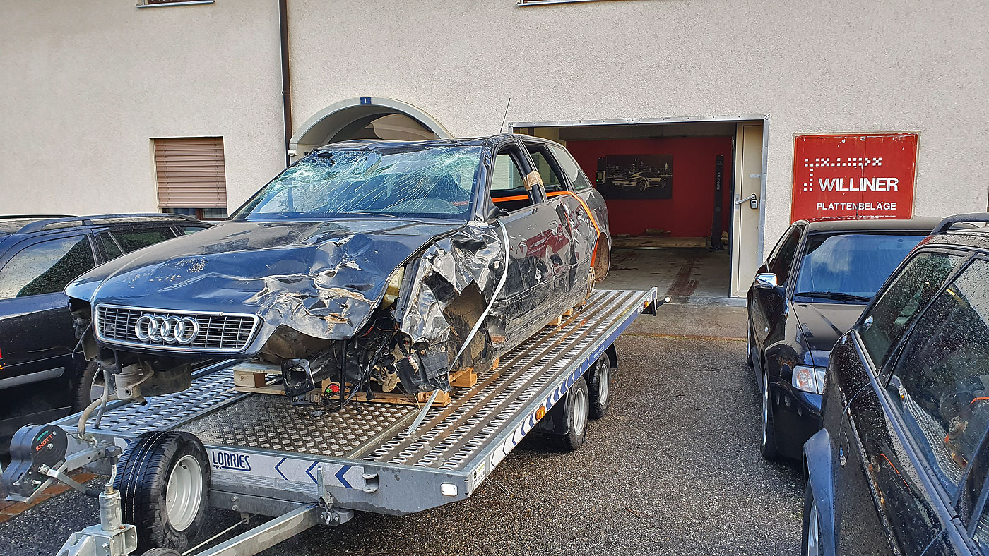 Neuzugang Audi S4 Biturbo B5 Avant: Motor AGB Vorfaclift, Lederausstattung, Heckstossstange mit Parksensoren. Motor lief noch, Zahnriemen drauf, div. Plastikteile defekt (Ansaug-/Druckrohre) linke Seite.
