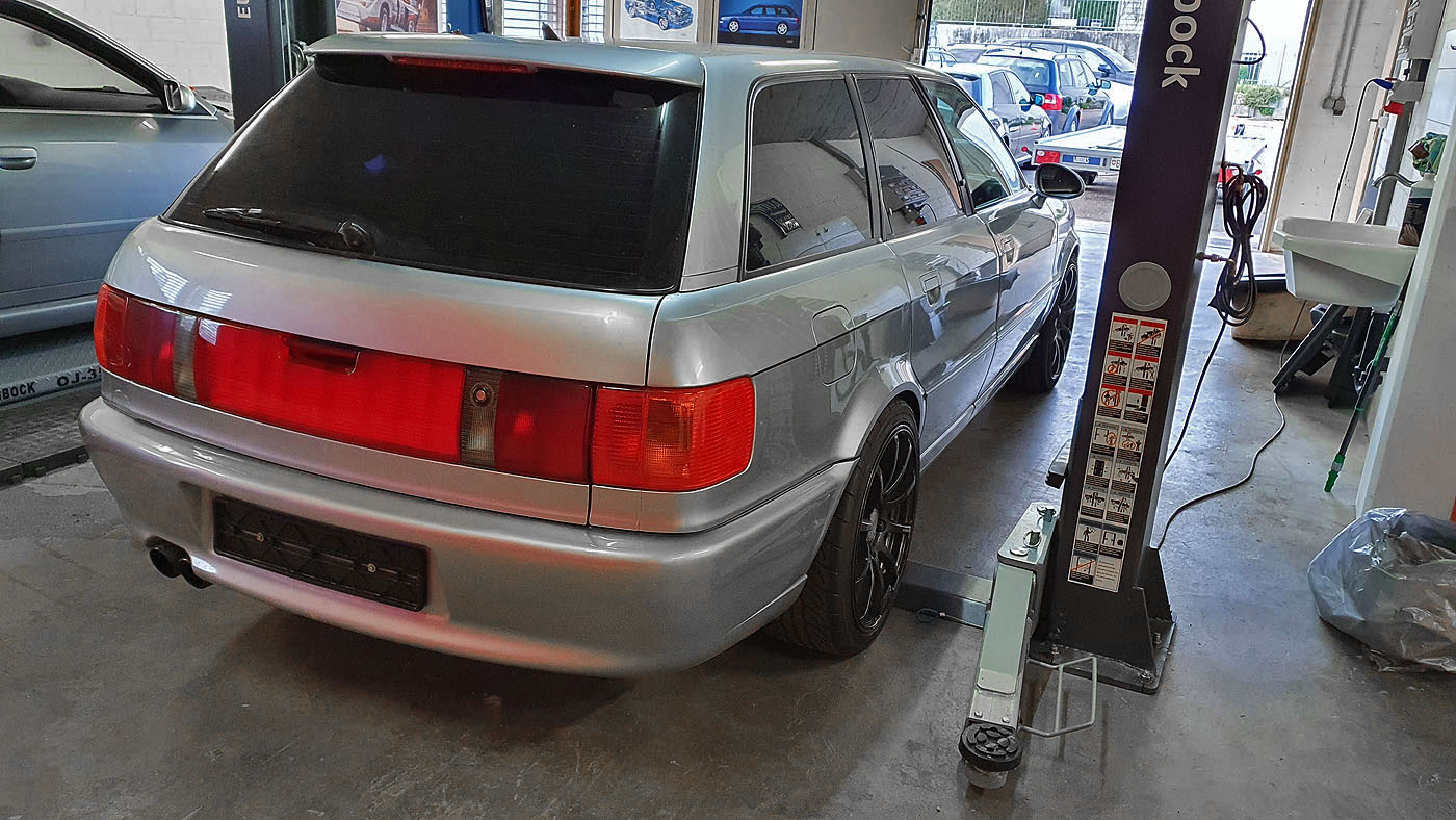 Neuzugang Audi RS2: Nach langem überlegen haben wir diesen RS2 gekauft, da ihn der Kunde/Verkäufer verkaufen wollte. Auf ausdrücklichen Wunsch des Verkäufers gibt dieser RS2 Teile für andere Audis, er wird zerlegt, wobei die top Karosse für einen Neuaufbau erworben werden kann. 160 tkm gelaufen, sehr schöner Zustand rundum, neue Scheinwerfer, neue Spaltabdeckungen, neues Lenkrad 3 Speichen, Sitze top, Stangen top, Technik top. Carbon Dekorleisten, grosse Bremse, Lehmann Motorsteuergerät RS2 350 PS, Stahlflex Bremsleitungen, H&R Sportfahrwerk neuwertig, Edelstahl Abgasanlage BN-Pipes, Fussmatten mit RS2 Emblem, Heckspoiler mit 3. Bremslicht. Advan Racing RS Felgen in 8,5x18 Zoll, Originalräder 2 Sätze in schwarz, Motorsport Hinterachs Stabilisator 22mm, Ladedruckanzeige Spezialanfertigung in Durchlichttechnik RS2-weiss. Optimierungsset für Turboschlauch Drosselklappe, Separat neuer Kühlergrill, neue Gitter für Stange vorne, diverse neue RS2 Emblems, RS2 Modellauto, RS2 Prospekte, Schlüssel Rohlinge und weiteres.