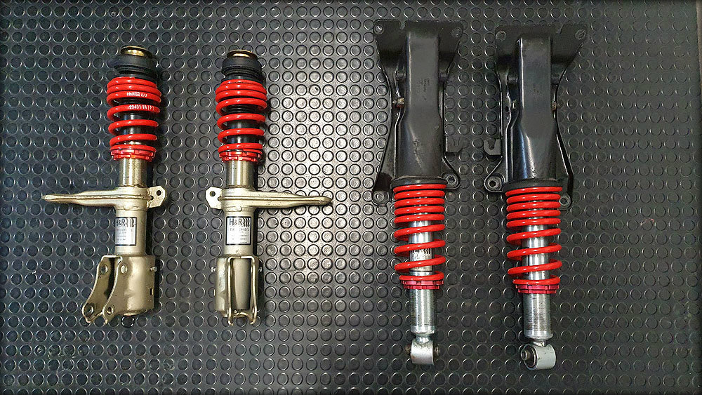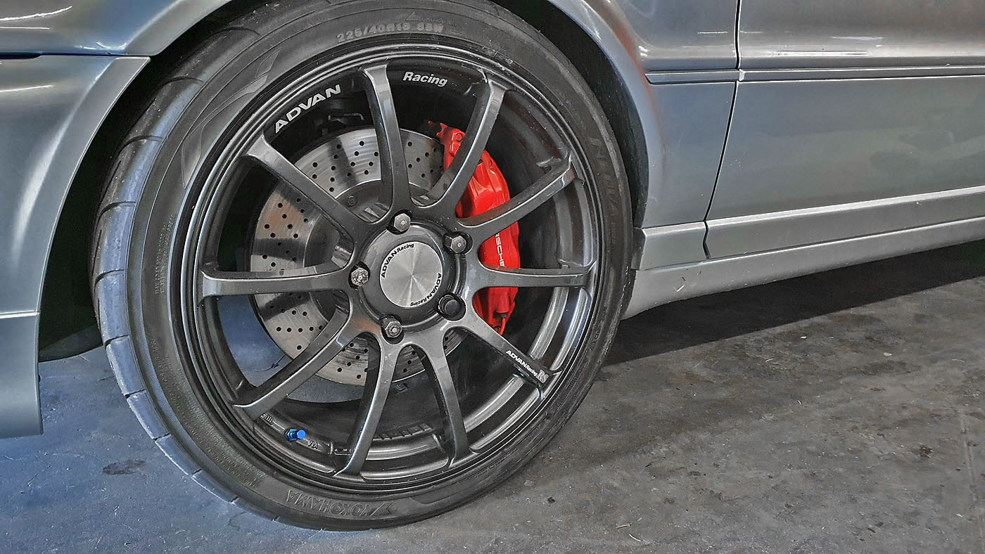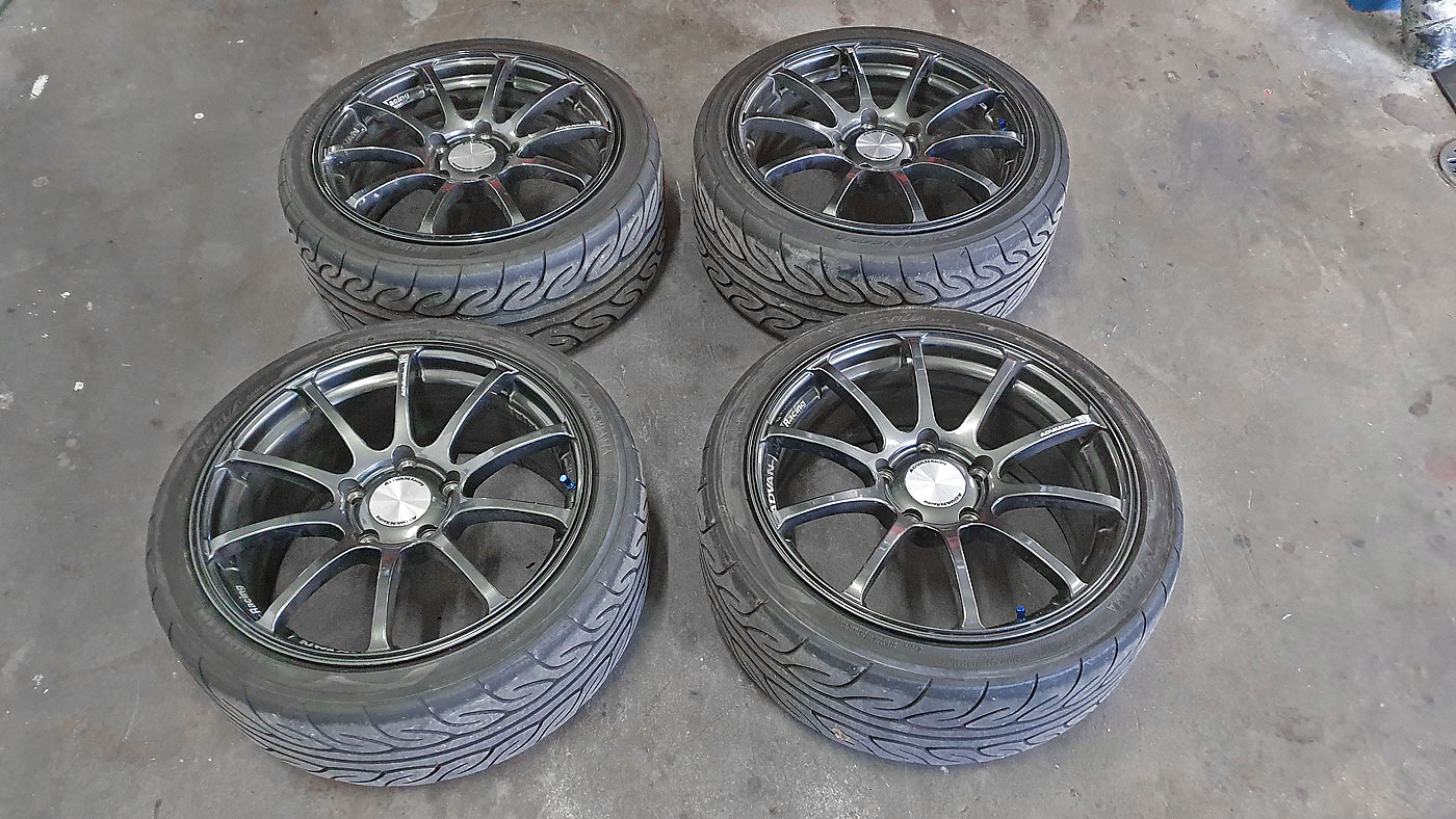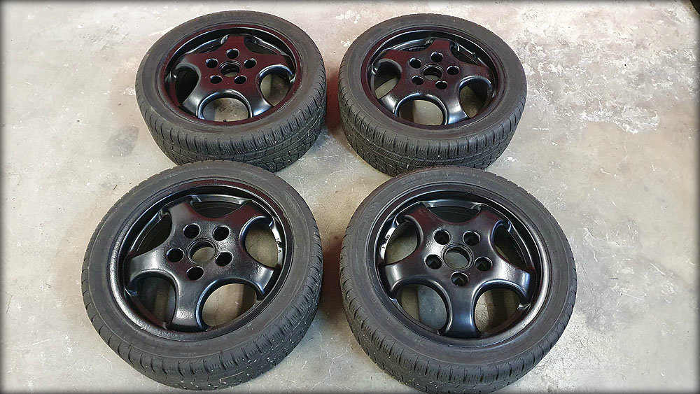 spoiler with 3rd brake light. Original wheels 2 sets in black.
