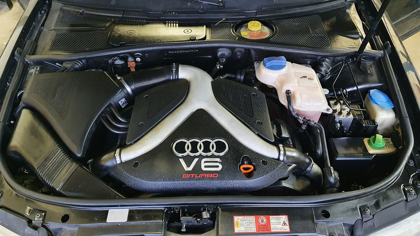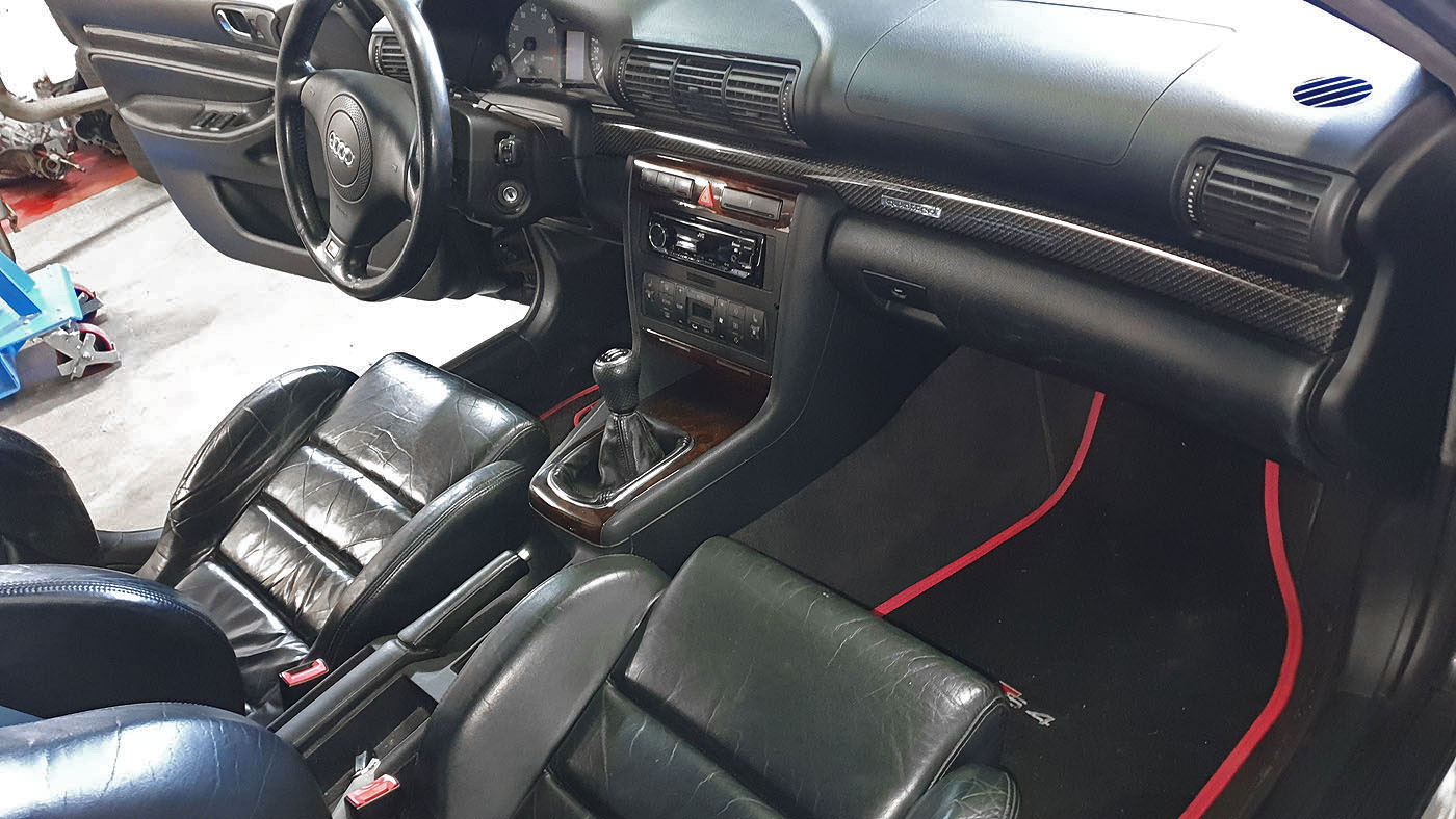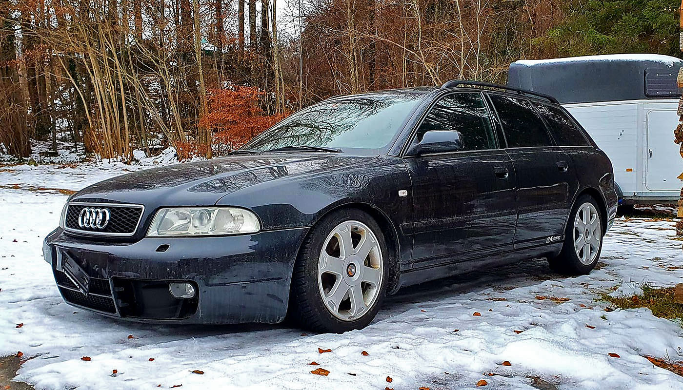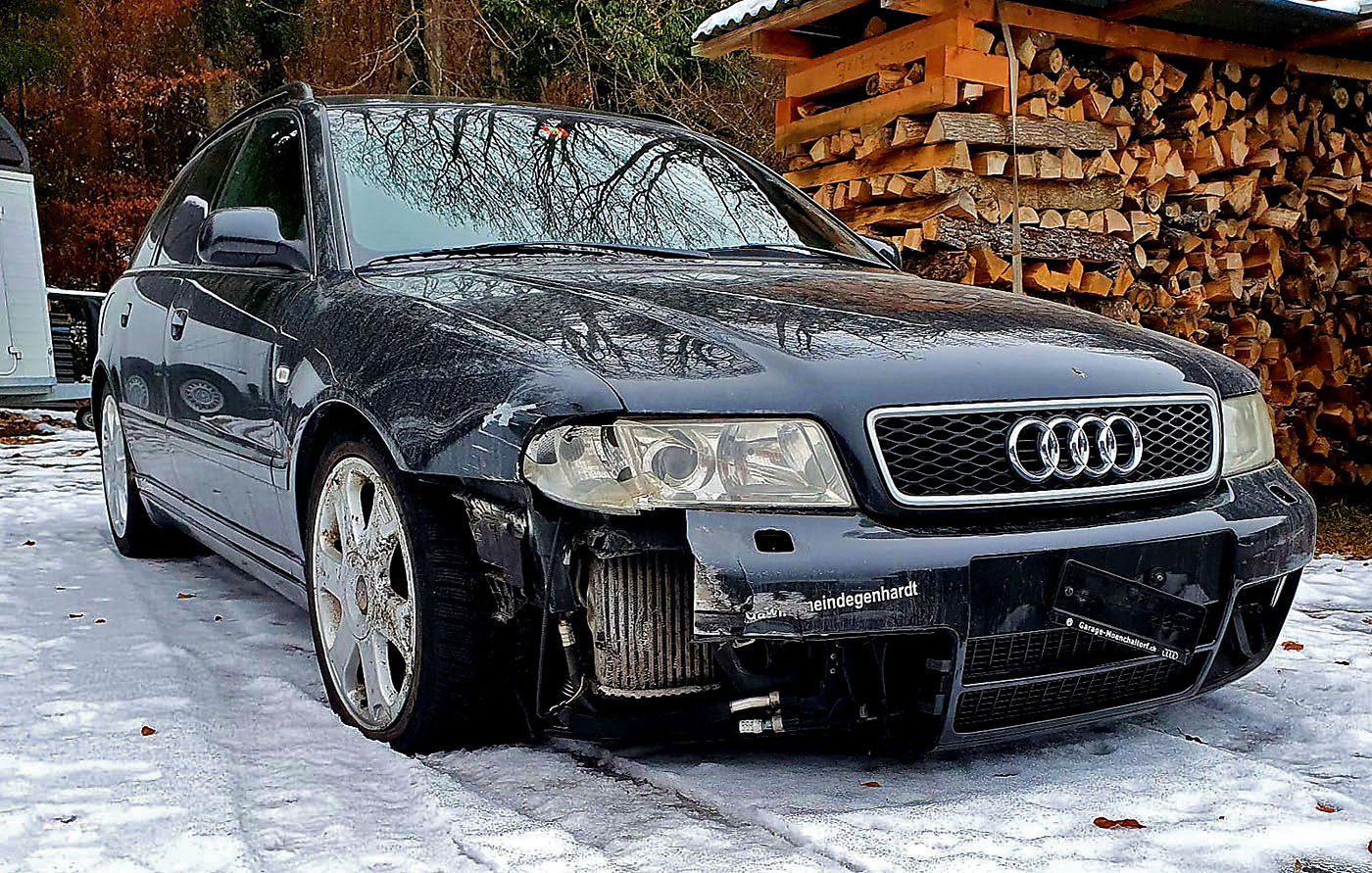 Neuzugang Audi S4 B5 Biturbo Facelift Motor AGB, Ledersitze Vordersitze elektrisch verstellbar, Carbon Dekorleisten Türen und Armaturenbrett, Kombiinstrument ohne Pixelfehler, H&R Tieferlegung, ABT Motorsteuergerät mit Eignungserklärung, Eisenmall Endschalldämpfer mit Gutachten, RS4 Kühlergrill, Fussmatten vo/hi mit S4 Schrift. Neuwertig daran sind: Luftmassenmesser, Zündspulen, Zündstufen, Abgastemperatursensor 1 verbaut, einer neu in OVP, Schubumkehrventile, N75, Y-Turboschlauch. Unfall vorne rechts Stange / Ladeluftkühler, Scheinwerfer recht^s defekt, aber Beleuchtung inkl. Xenon noch gut.