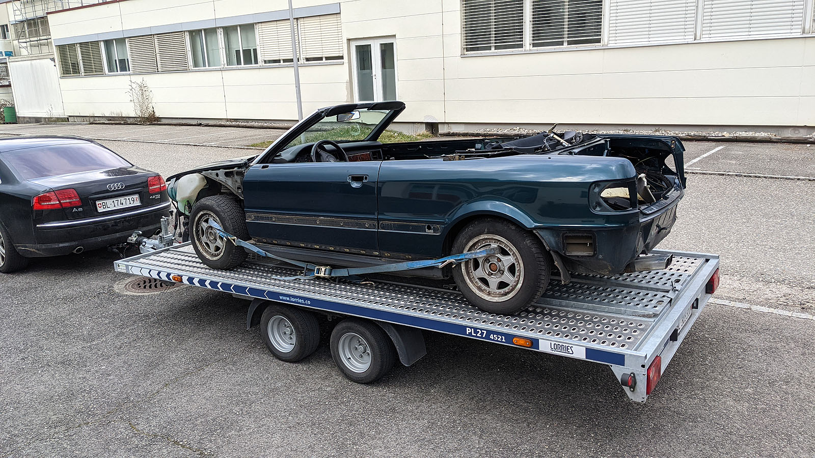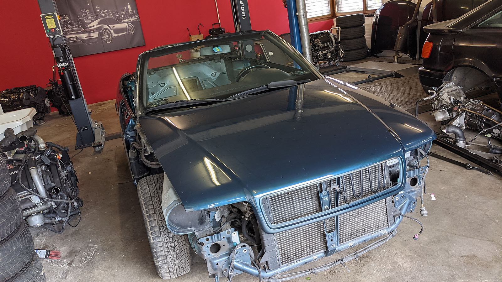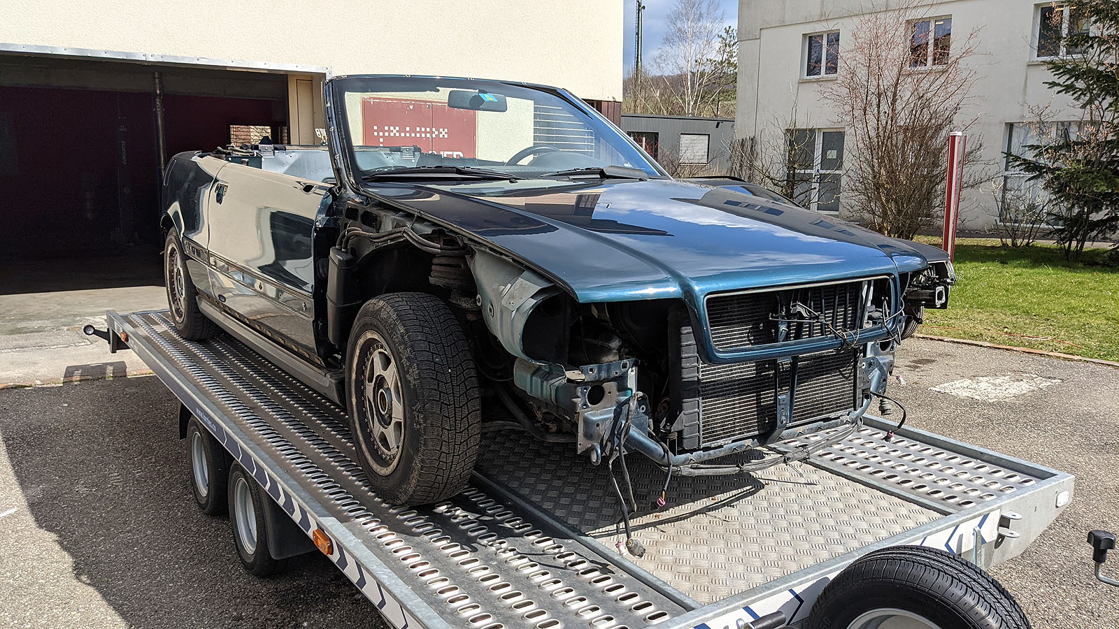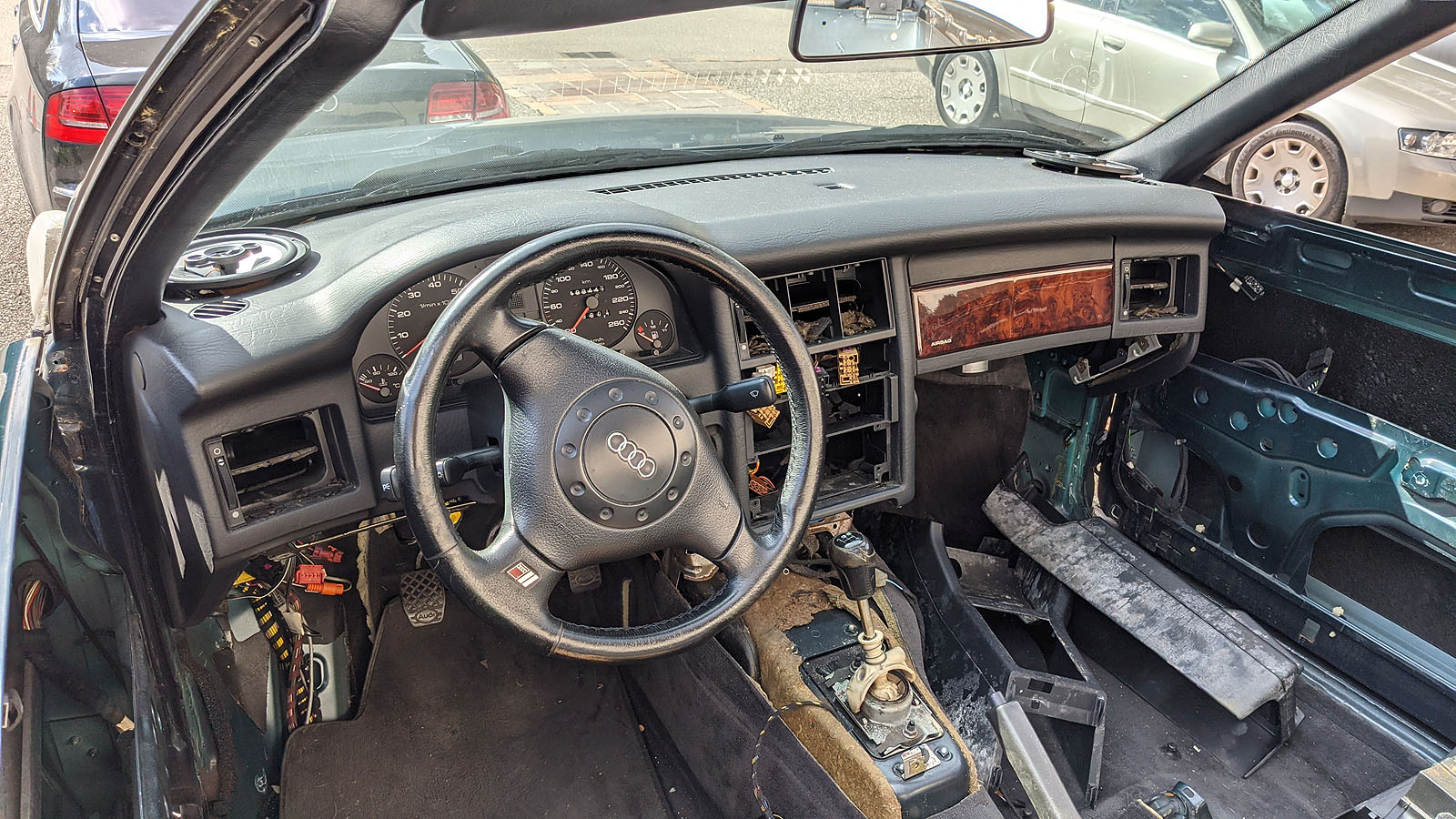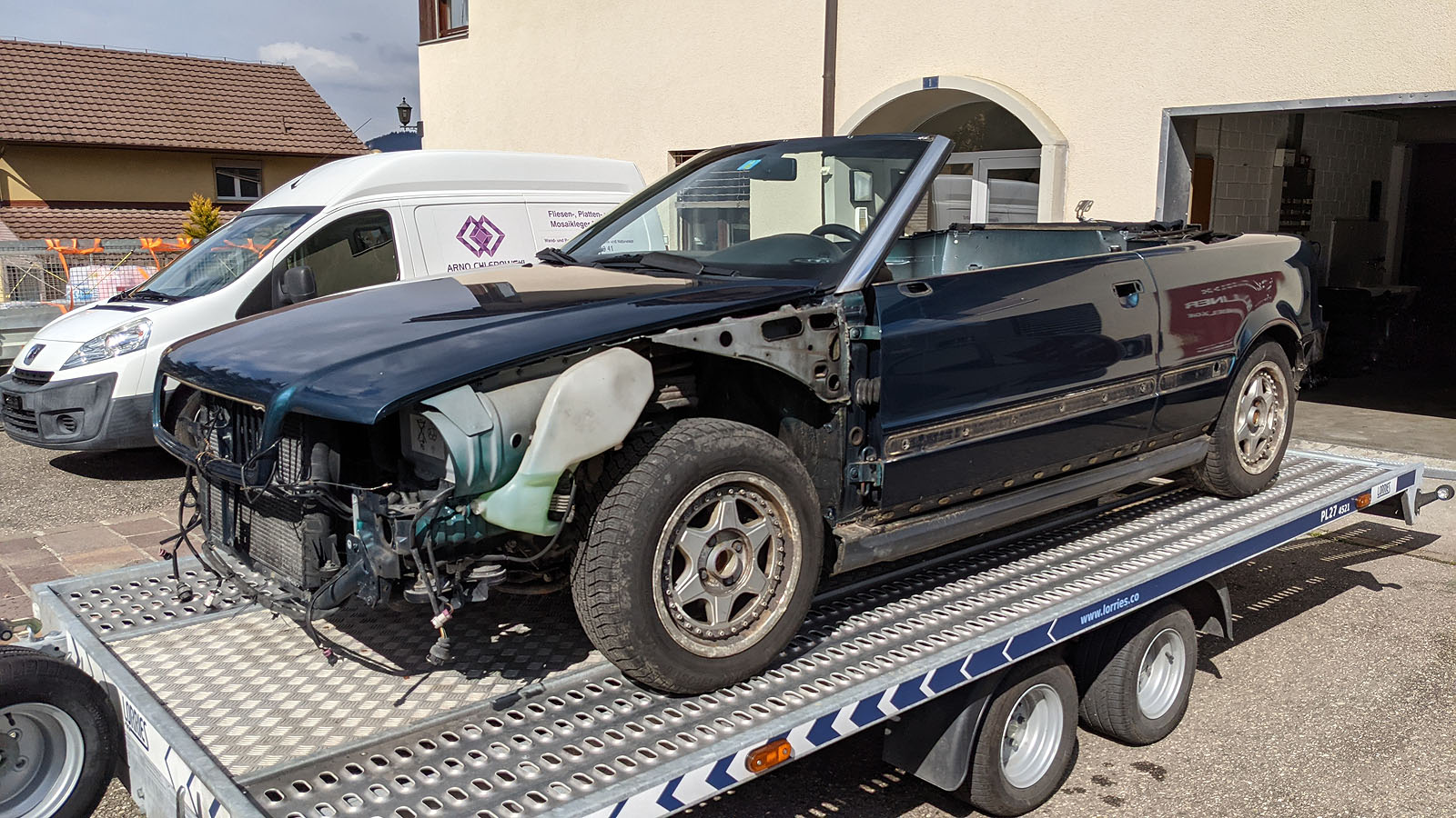 Audi Cabrio Typ 89 2.8l V6, 1995 3 Spreichen Lenkrad, dicke Lenksäule, Girling 60, 5 Gang Getriebe Handschalter, Remus ESD, gute Technik Motor Getriebe unter 200 tkm, 1995 Armaturenbrett mit Beifahrerairbag.