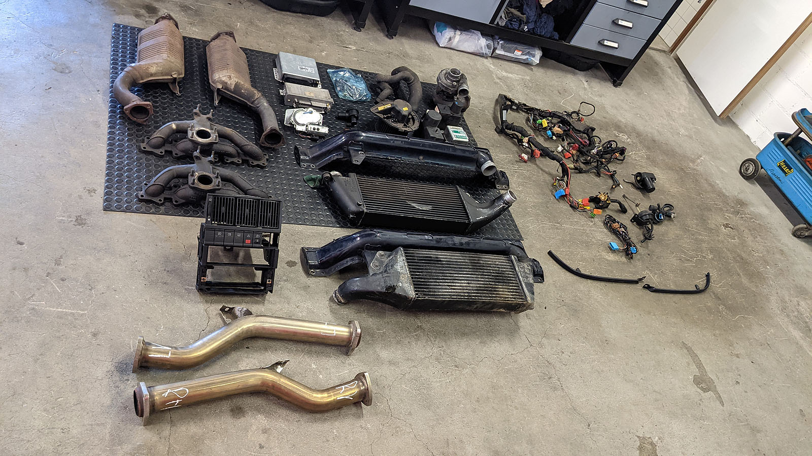 Neuzugang Audi S2 Avant: Modell 1994 mit Fahrerairbag, Wurzelholz Dekorleisten, Tempomat, Klimaanlage, Schiebedach. Sportfahrwerk Bilstein Dämpfer mit H&R Federn, ProLine Alufelgen, verbaut RS2 Turbolader und RS2 Abgaskrümmer, Steuergerät RS2 Step mit 3 Bar Sensor, BN-Pipes Abgasanlage, Movi'it 993 Biturbo Bremsanlage Vorderachse, Anhängerkupplung. Separat Teile dazu: Zentralelelektrikkabelbaum mit Teile für Tempomat, Ladeluftkühler RS2, S2 ABY Motorsteurgerät "A" ungeöffnet, Kat Ersatzrohre, S2 Turbolader, S2 Krümmer, S2 Düsen etc.
