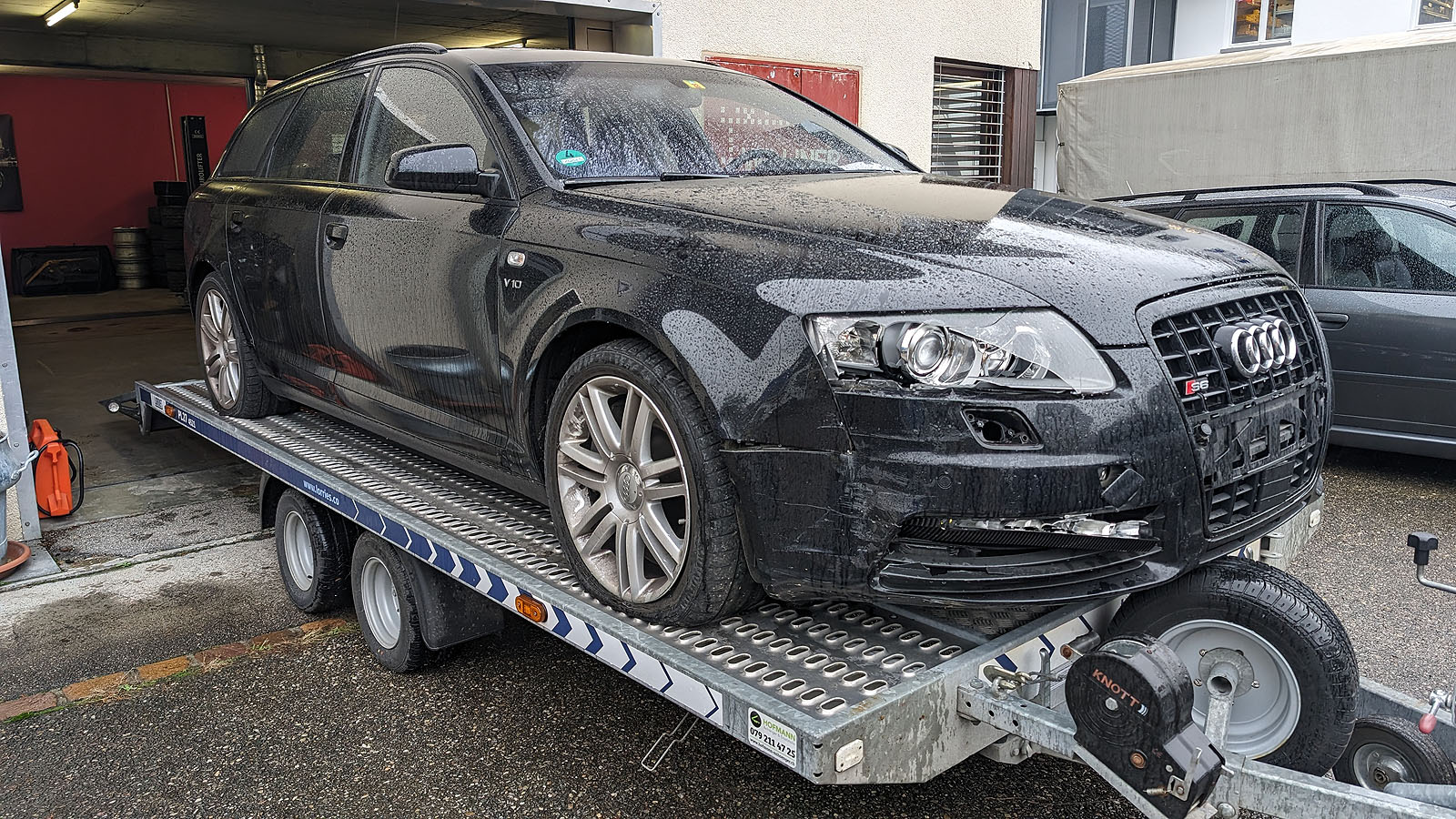 Audi S6 C6 Avant 5.2l V10 Automat, Erstzulassung Mai 2007, Recaro Leder schwarz mit Memory, Carbon-Dekor, Bose-Soundsystem, schwarzer Dachhimmel mit Glasschiebedach, Standheizung, Anhängerkupplung. Schaden vorne rechts. Motor/Getriebe gut, Serviceheft.