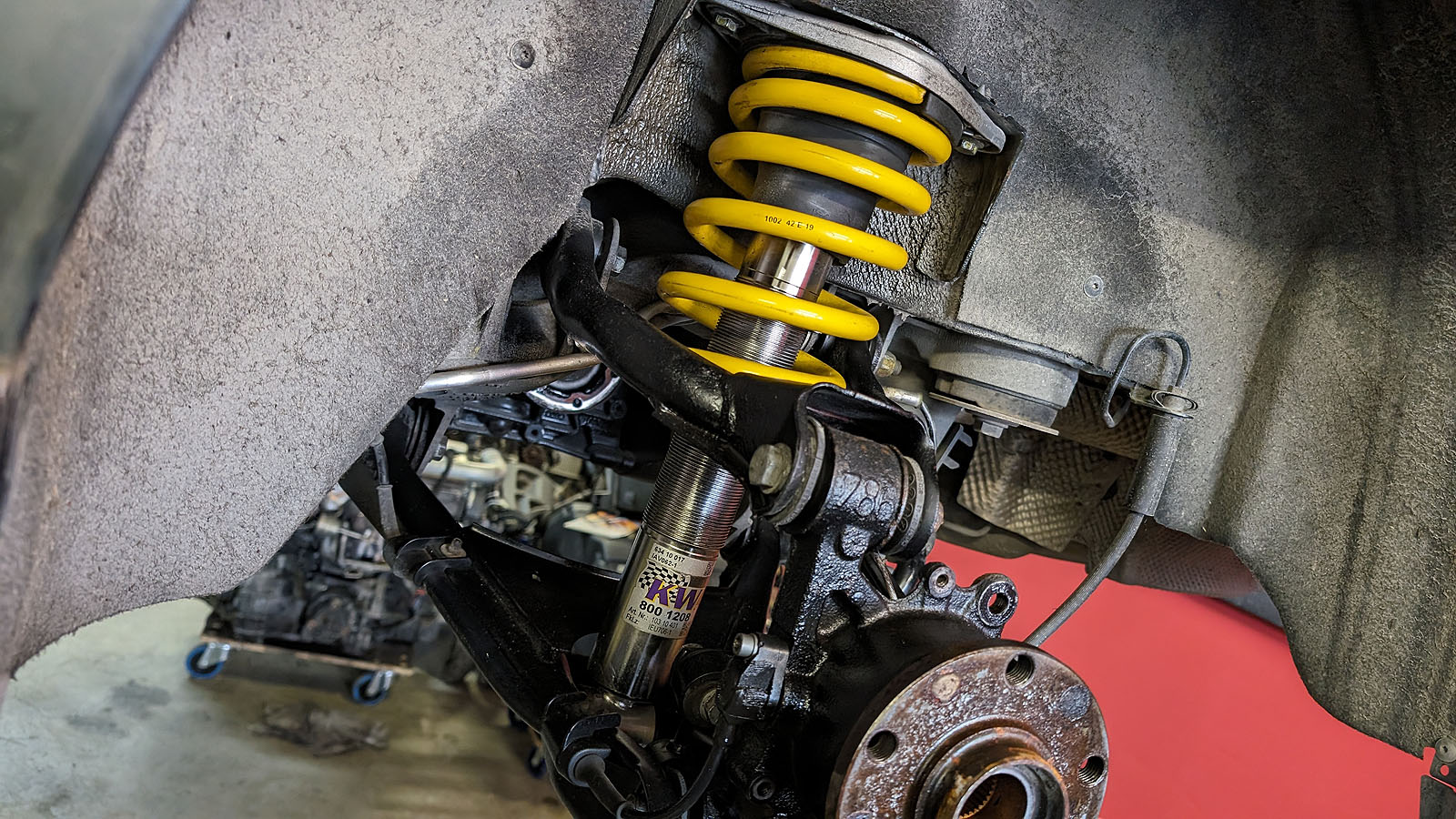 Montiert ist ein neuwertiges KW Gewindefahrwerk.