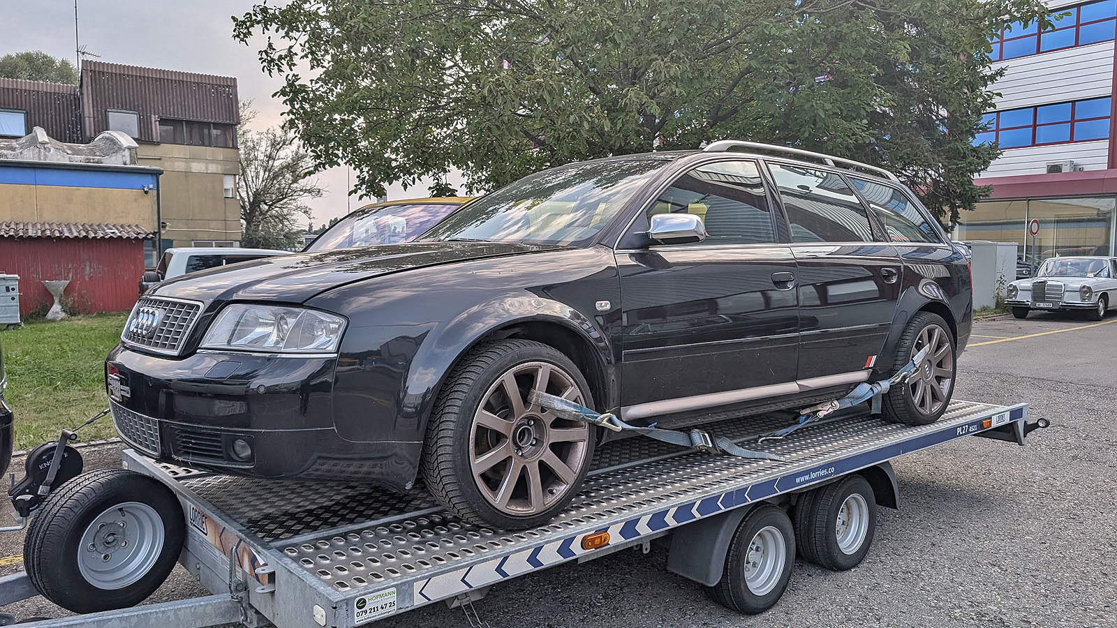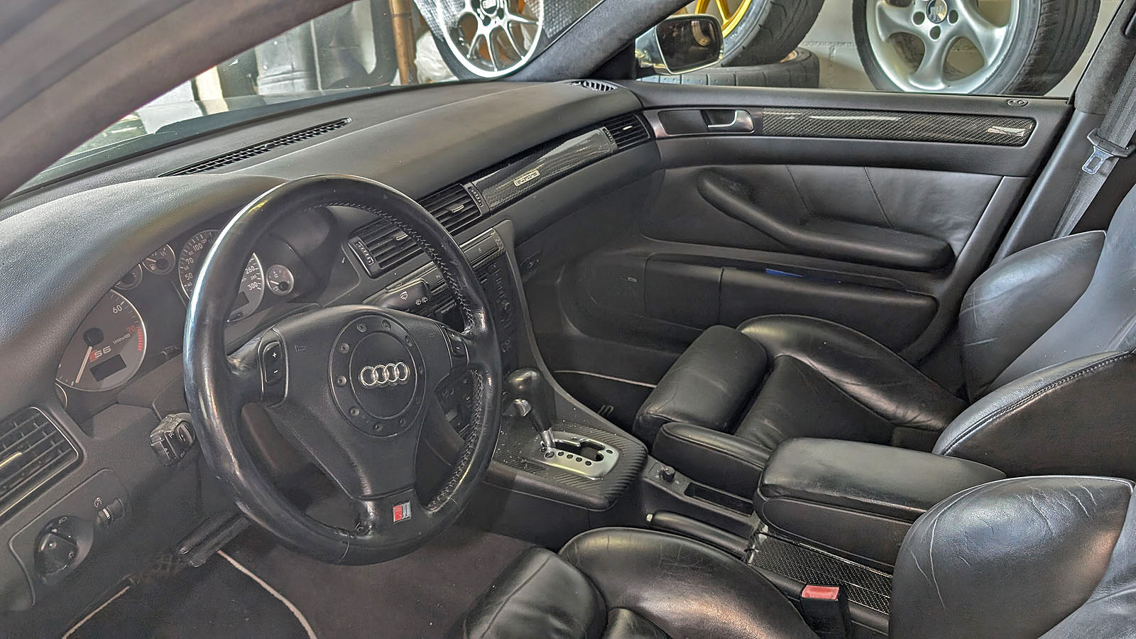 Audi S6 C5 Avant, Automatenschaden, Motor läuft gut, Getriebe ausgebaut, schwarze Recaro Ausstattung, Sonnenrollos Türen hinten und Heckklappe, Dachhimmel Alcantara schwarz guter Zustand, Solar Schiebedach, Carbon Dekorausstattung, Anhängerkupplung, S-Line Felgen in 8,5x18 ET 30