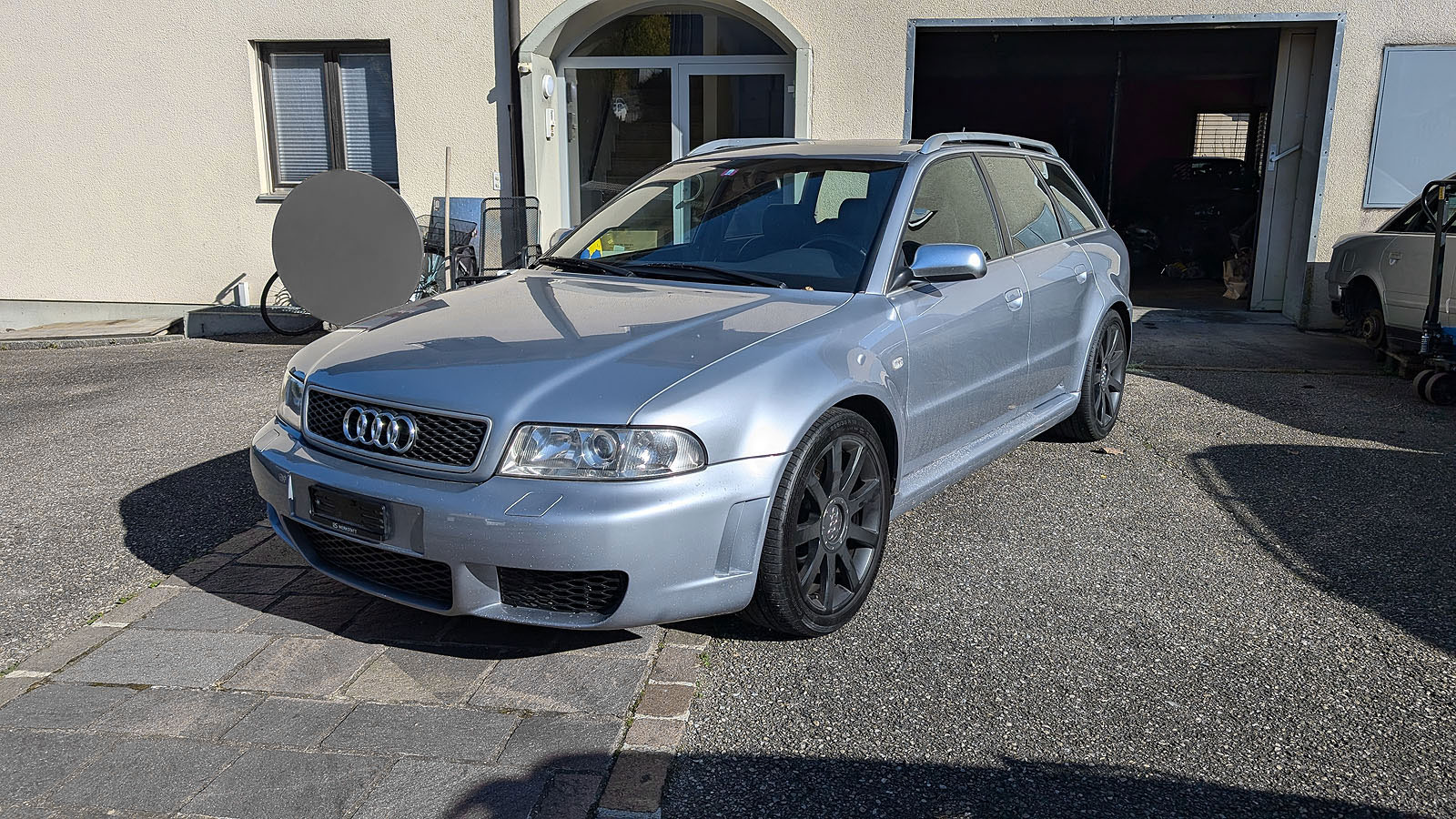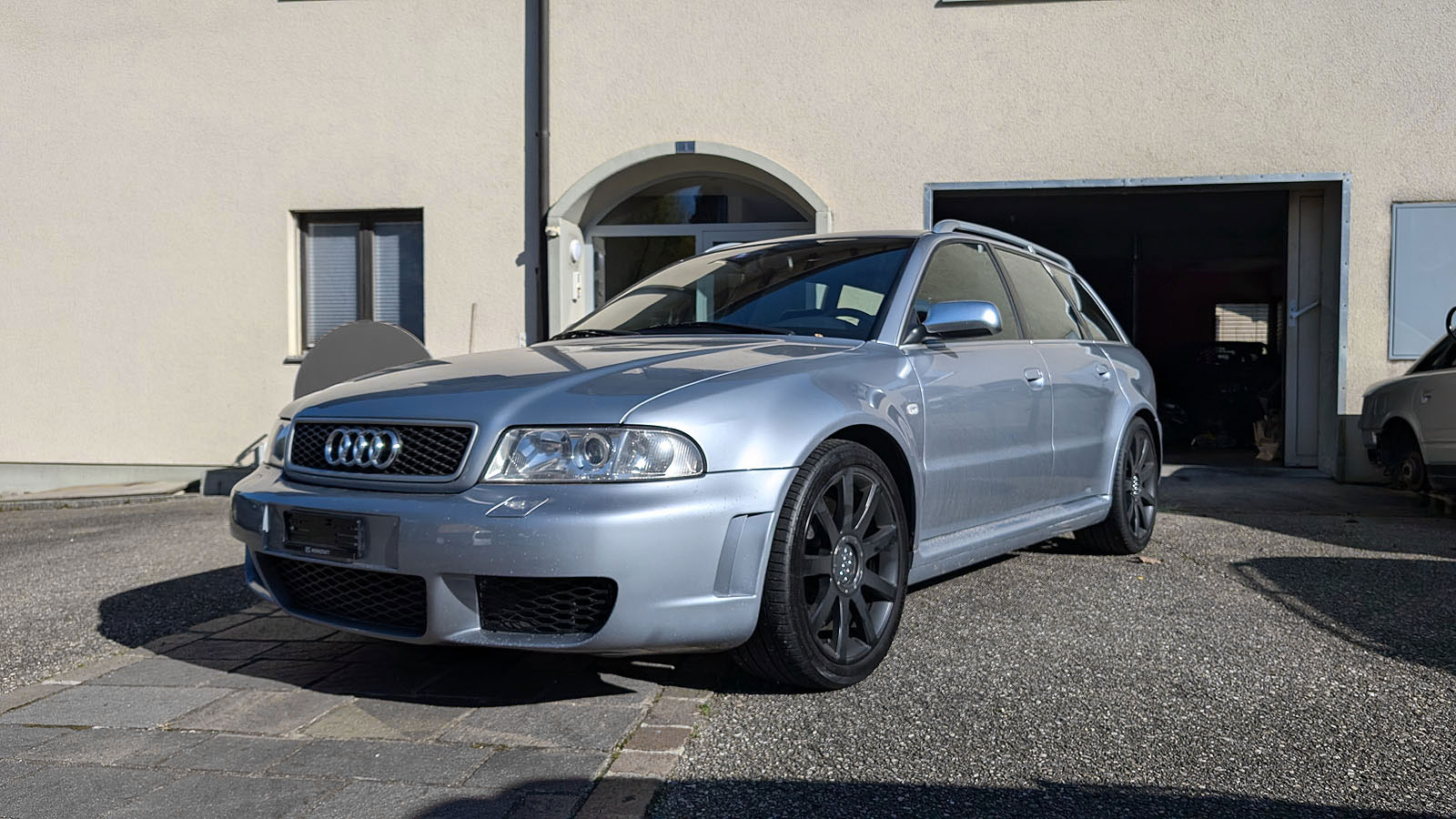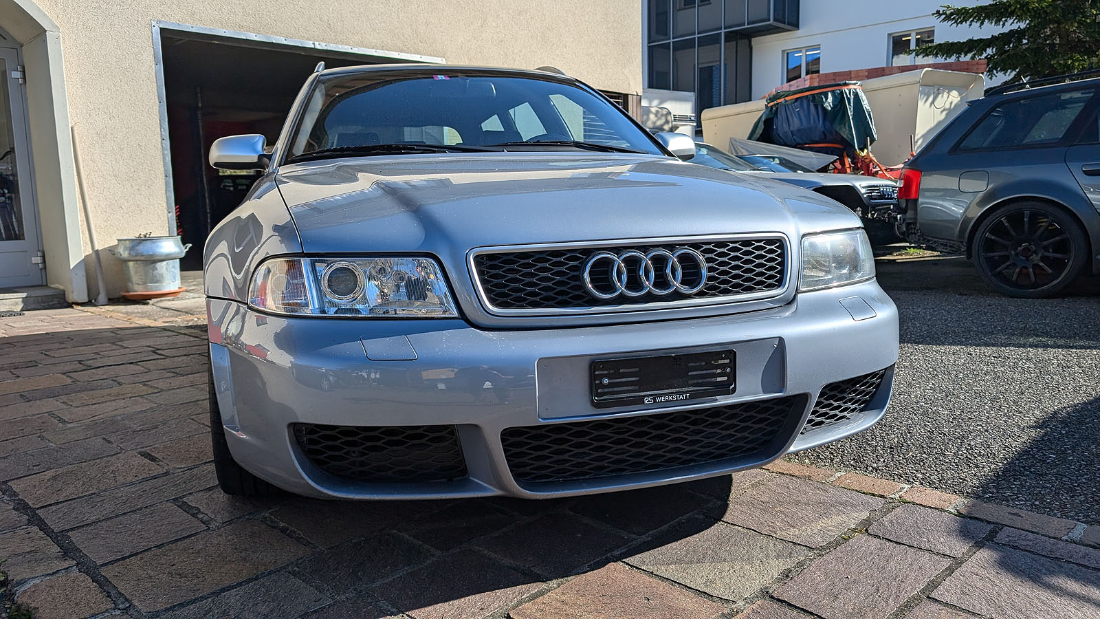 Zustand/Besonderes: Der RS4 ist technisch in gutem Zustand. Bei den originalen Abgasrohren wurden zur thermischen Optimierung die Vorkats entfernt. Für eine kühlere Ladeluft sorgen die Wagner Ladeluftkühler sowie die Wagner Nebellampengitter in Originaloptik.