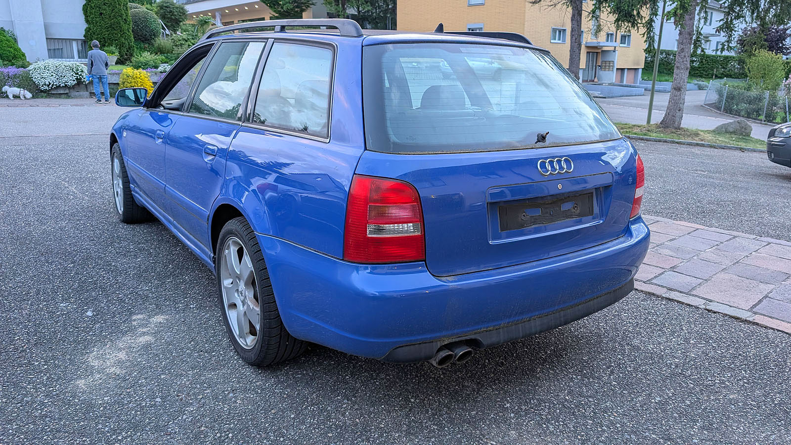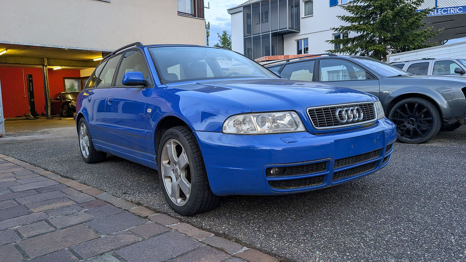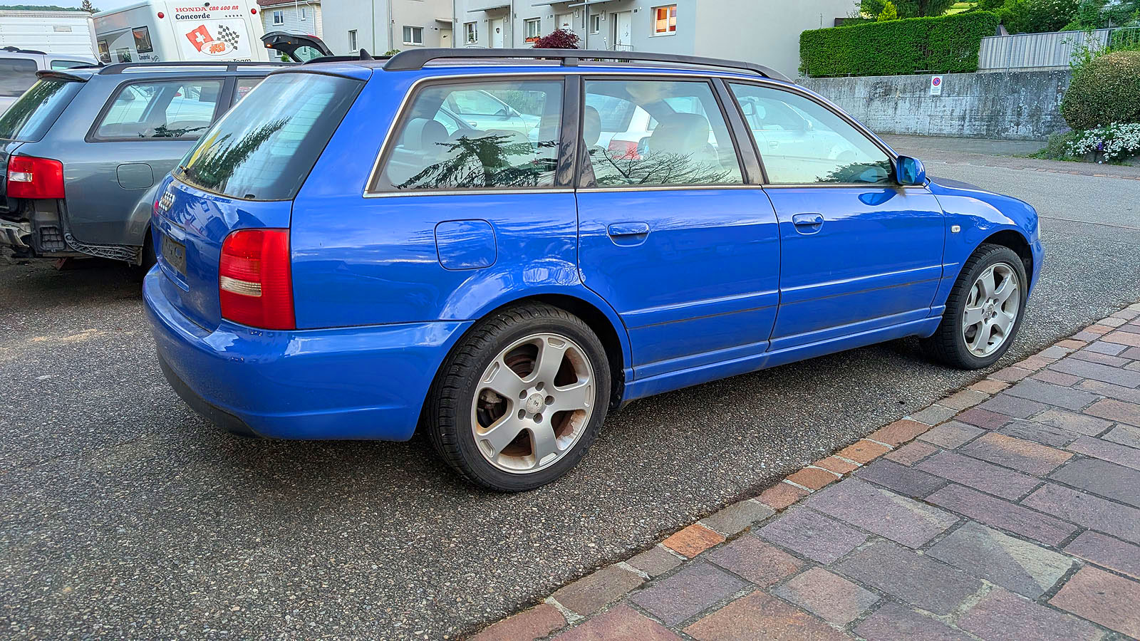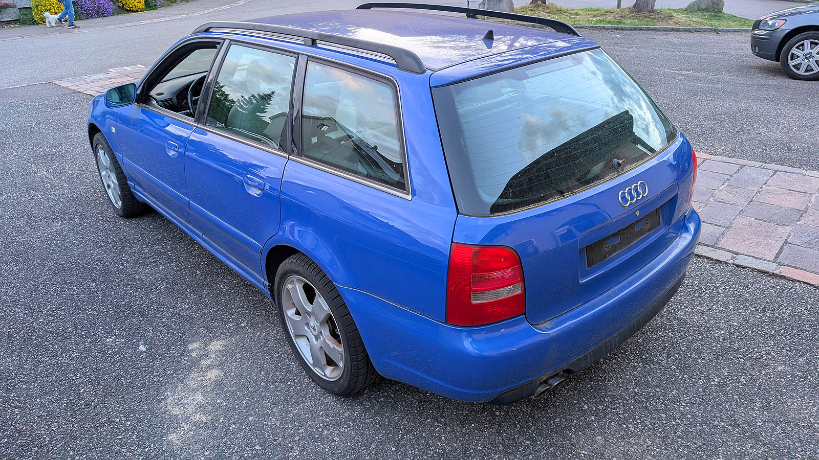 Audi S4 B5 Avant Facelift, Jg. 2000, Motor AGB, ohne Schiebedach, Getriebe wurde ausgebaut und fehlt, Recaro Lederausstattung weiss in gutem Zustand (darf gereinigt werden), Kats Flexrohre zu ersetzen, Dachhimmel hängt, Anhängerkupplung Werksausführung (Haken fehlt), Bremssättel vorne neuwertig, stand 2-3 Jahre im Freien, daher etwas "angemost", Motor läuft gut, Serviceheft 220 tkm.