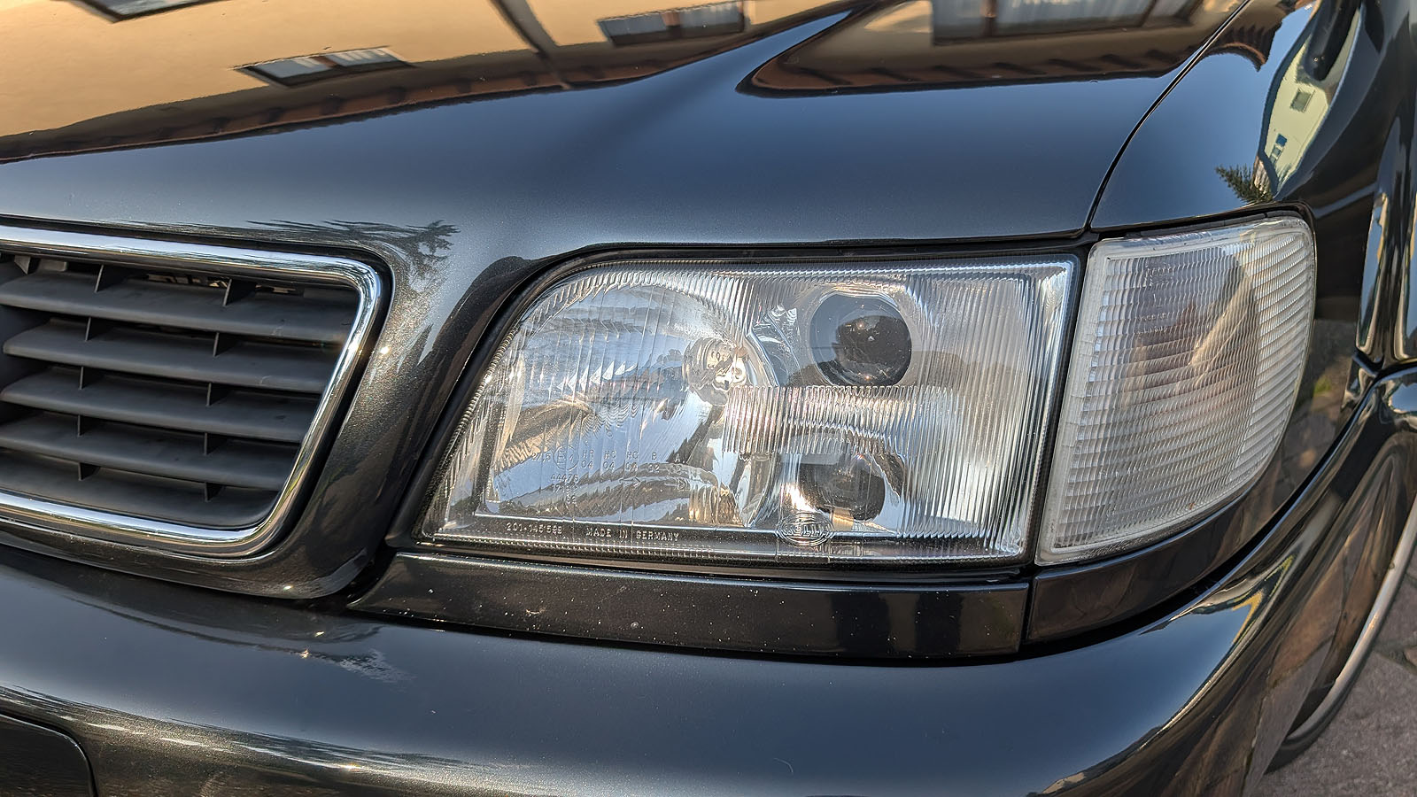 Optisch schön, sehr wenige klein Dellen, eine Unschönheit Seitenwand hinten, Heckleuchtenband schön, Scheinwerfer ebenso (schaut so aus als wären alle Halter intakt).