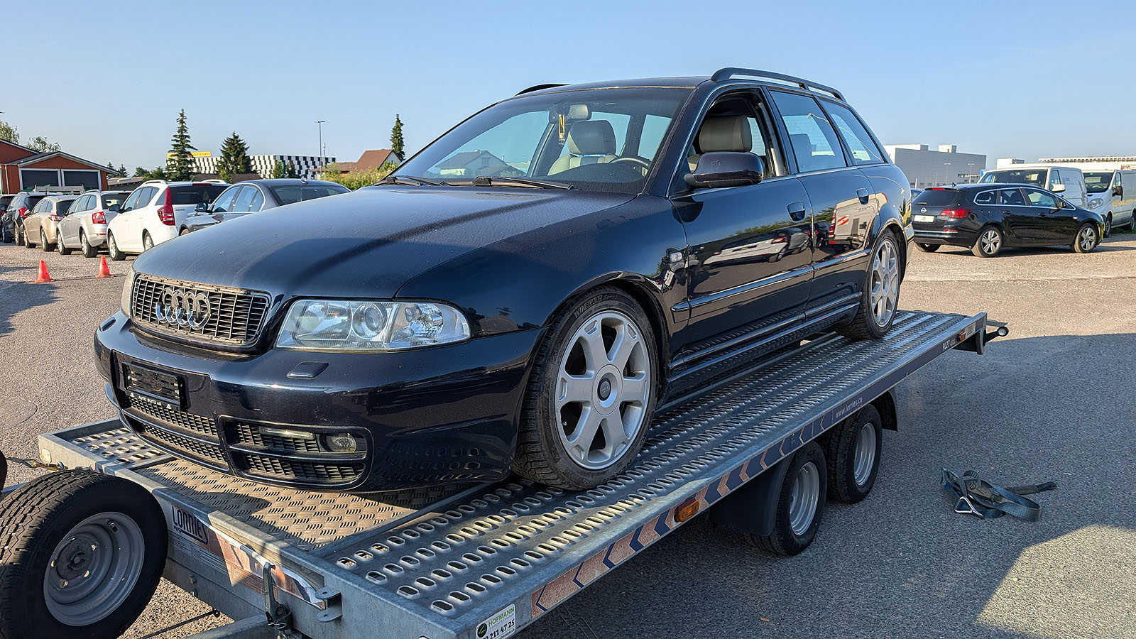Audi S4 B5 Avant Facelift AGB, Recaros hell, Carbon Dekorleisten, Innenrückspiegel aut. abblendbar, Aussenspiegel aut. abblendbar, Schiebedach, MultiMedia-Garät DIN1, ABT Leistungssteigerung 231 KW eingetragen, KW Sportfahrwerk. Optisch ordentlicher Zustand, Motor dreht sauber, aber startet nicht.