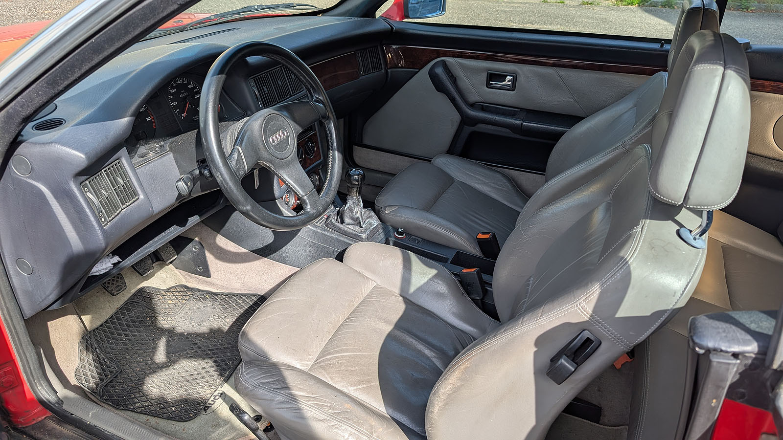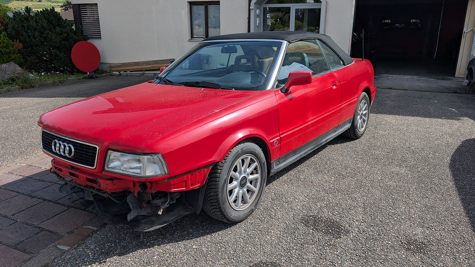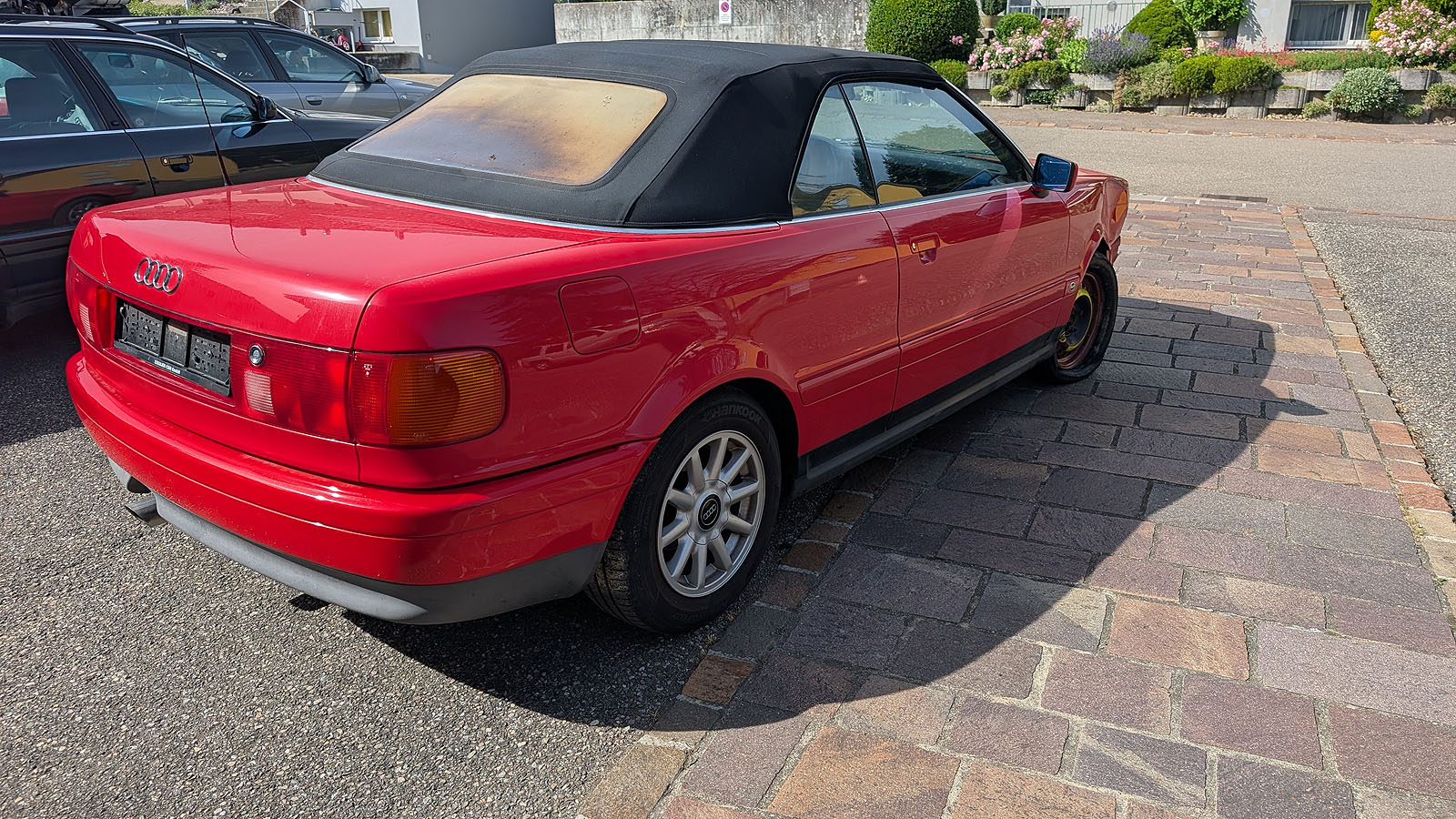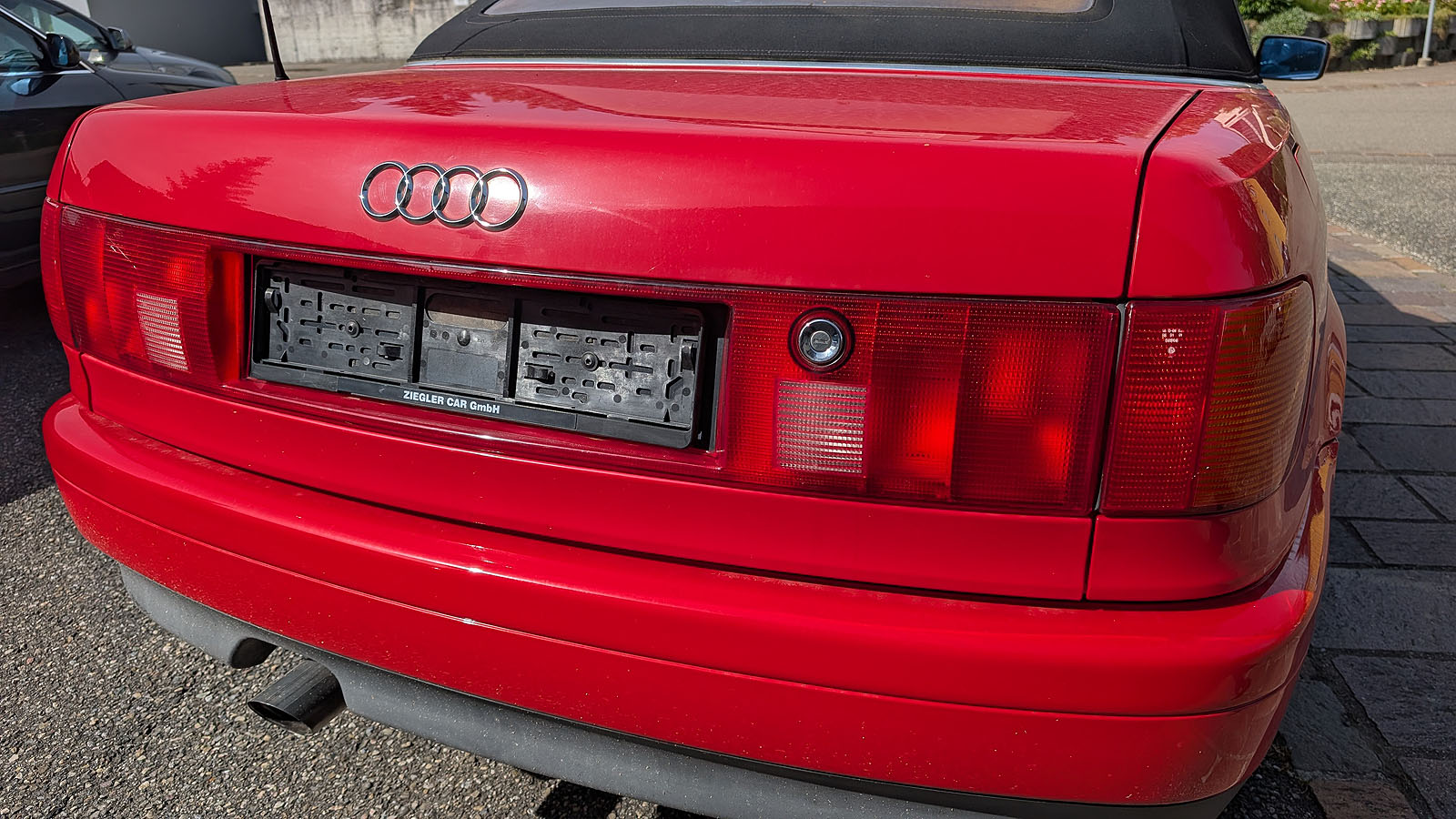 Audi Cabriolet Typ89 2.3l, Lederausstattung grau, Dekorleisten Wurzelholz, Sitzheizung, Zusatzinstrumente, 3 Speichen Audi Sport Lenkrad, geringe Laufleistung, Heckblende top Zustand, kleiner Unfall vorne rechts.
