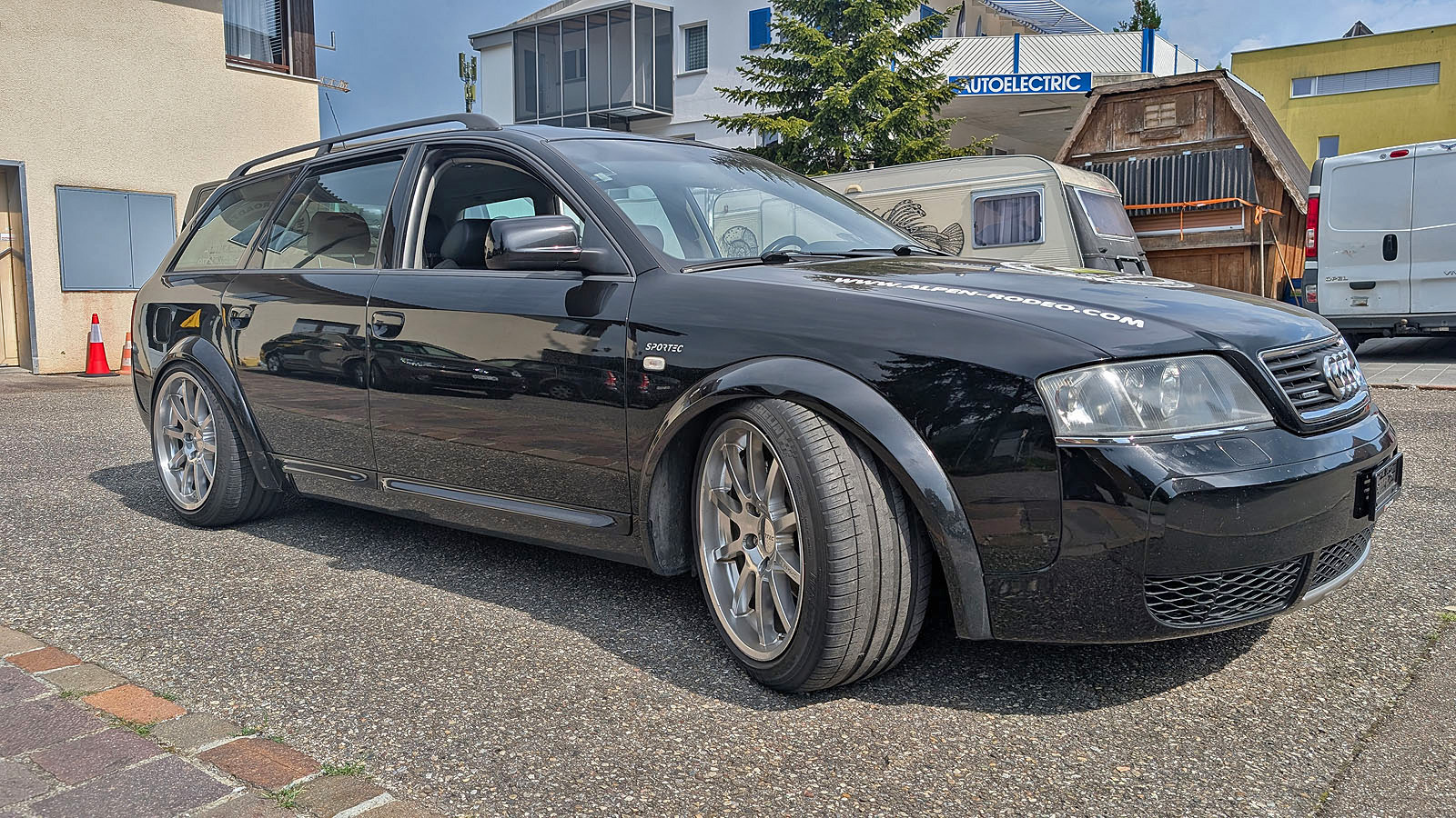 Verbaut sind diverse RS4 B5 Druckrohre, RS4 B5 Ladeluftkühler, SPORTEC Brembo/Porsche Bremse (eingetragen), RS4 B5 Bremse Hinterachse, SPORTEC 10x19 Zoll Felgen (eingetragen), ABT Abgasanlage (Gutachten vorhanden). Der Allroad könnte ein ABT AS6 sein. ABT Stossstage hinten, ABT Kühlergrill war ursprünglich montiert. Alle Karrosserieteile des Allroads in Wagenfarbe lackiert, inkl. Dach.