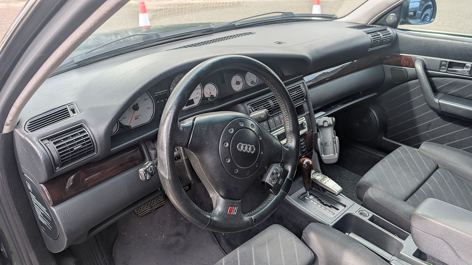 Audi S6 C4 V8 Automat, 256 tkm, Jaquard Satin schwarz, AHK, Musikanlage, Glas Schiebedach, Tempomat, Klima, 4fach elektr. Fensterheber, elektrische Vordersitze, HP2, nur kleinere Gebrauchsspuren, fahrbereit.